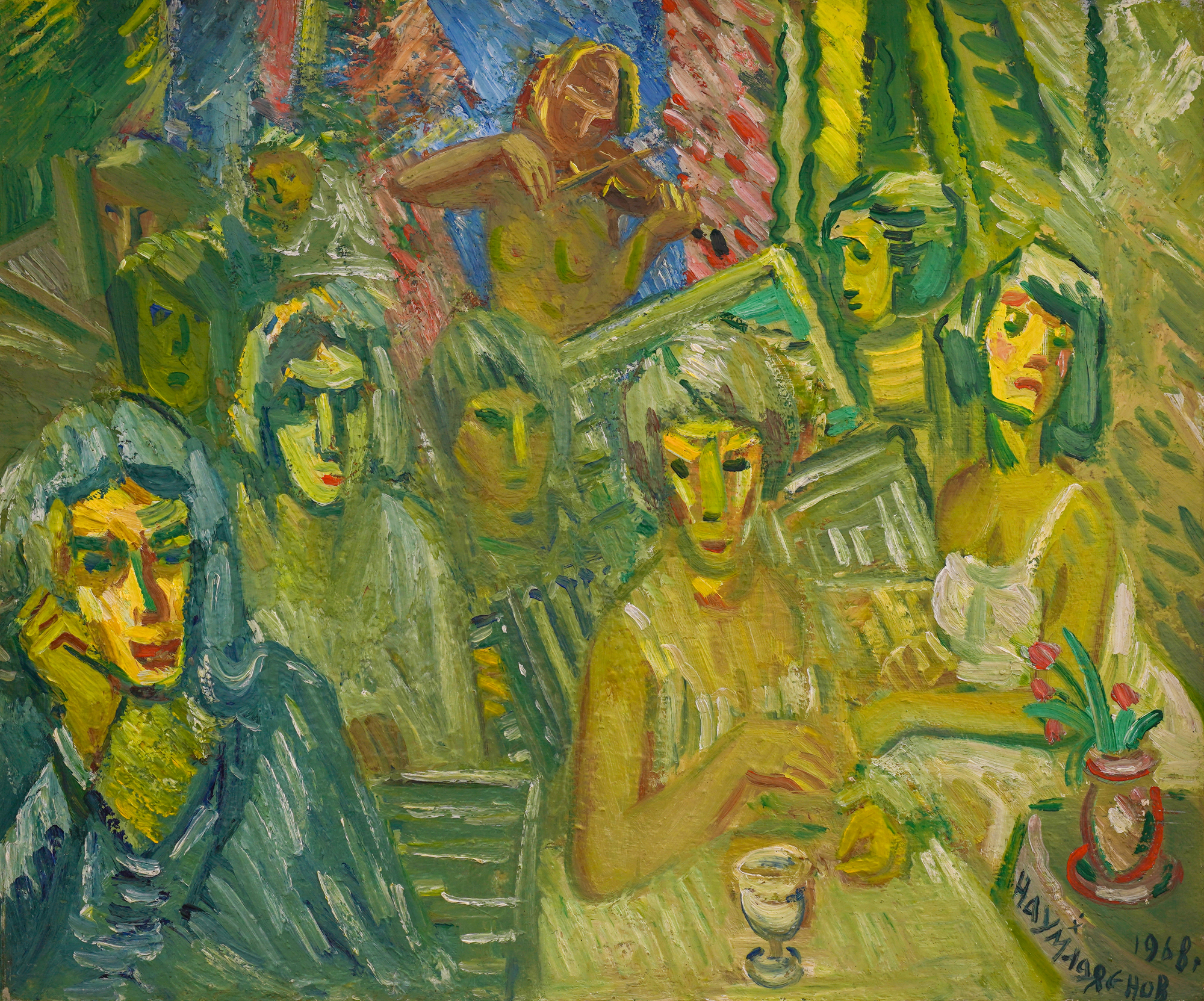 signed and titled on the back, in black, "Naum Hadjimladenov, Concert in Samokov"