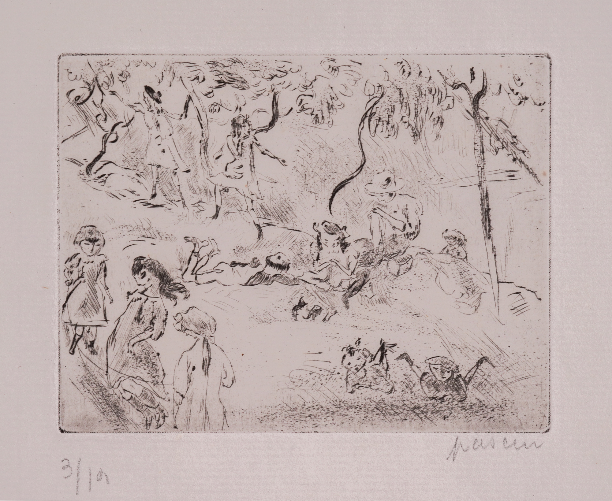 signed bottom right, in pencil, "pascin", numbered bottom left, in pencil, "3/19"