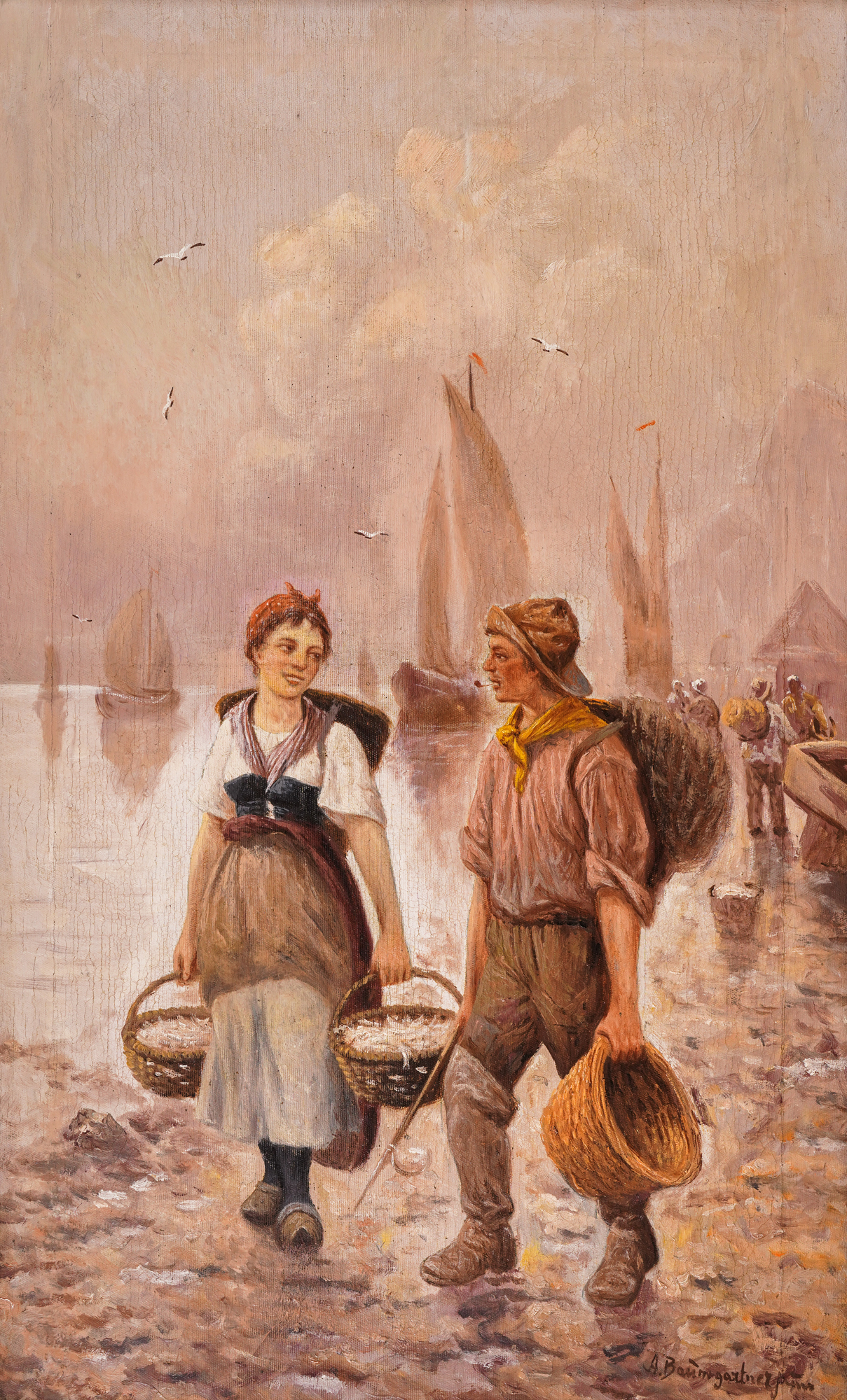 signed bottom right, in brown. "signed lower right, in brown, "A. Baumgartner"