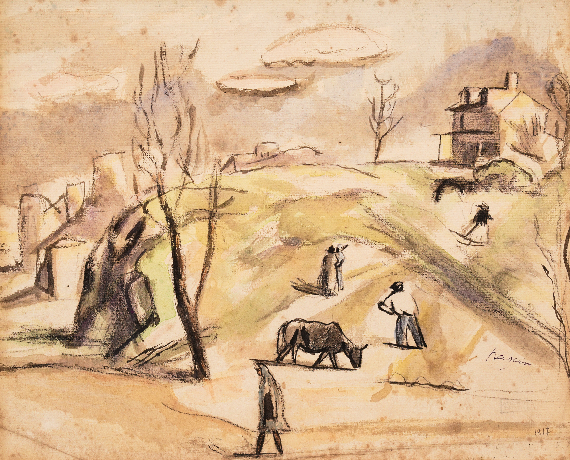 signed bottom right, in ink, "Pascin"; dated bottom right, in pencil, "1917"; stamp from the artist's studio bottom right, "atelier pascin"