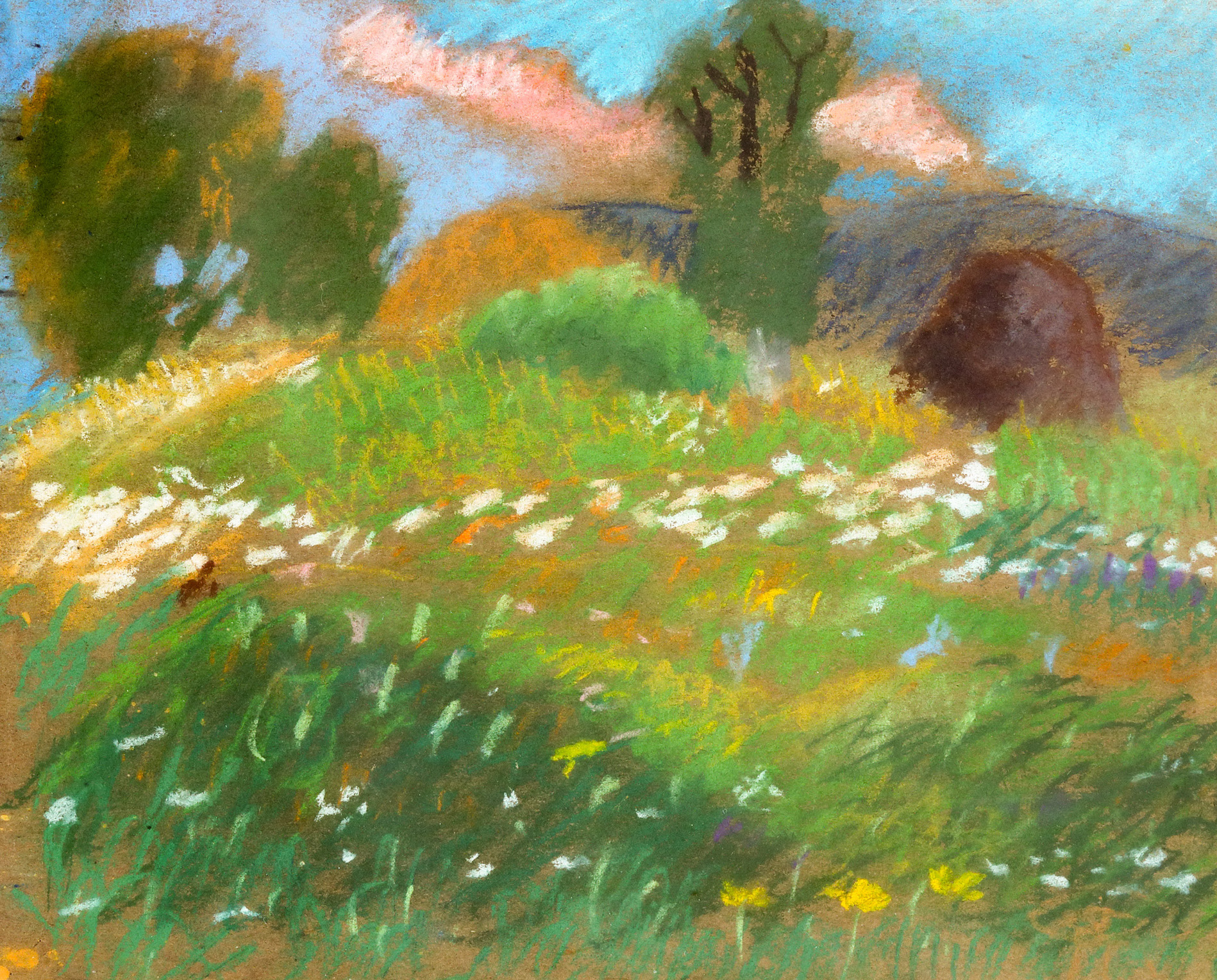 semnat dreapta jos, în monogramă, cu roz, "PR"