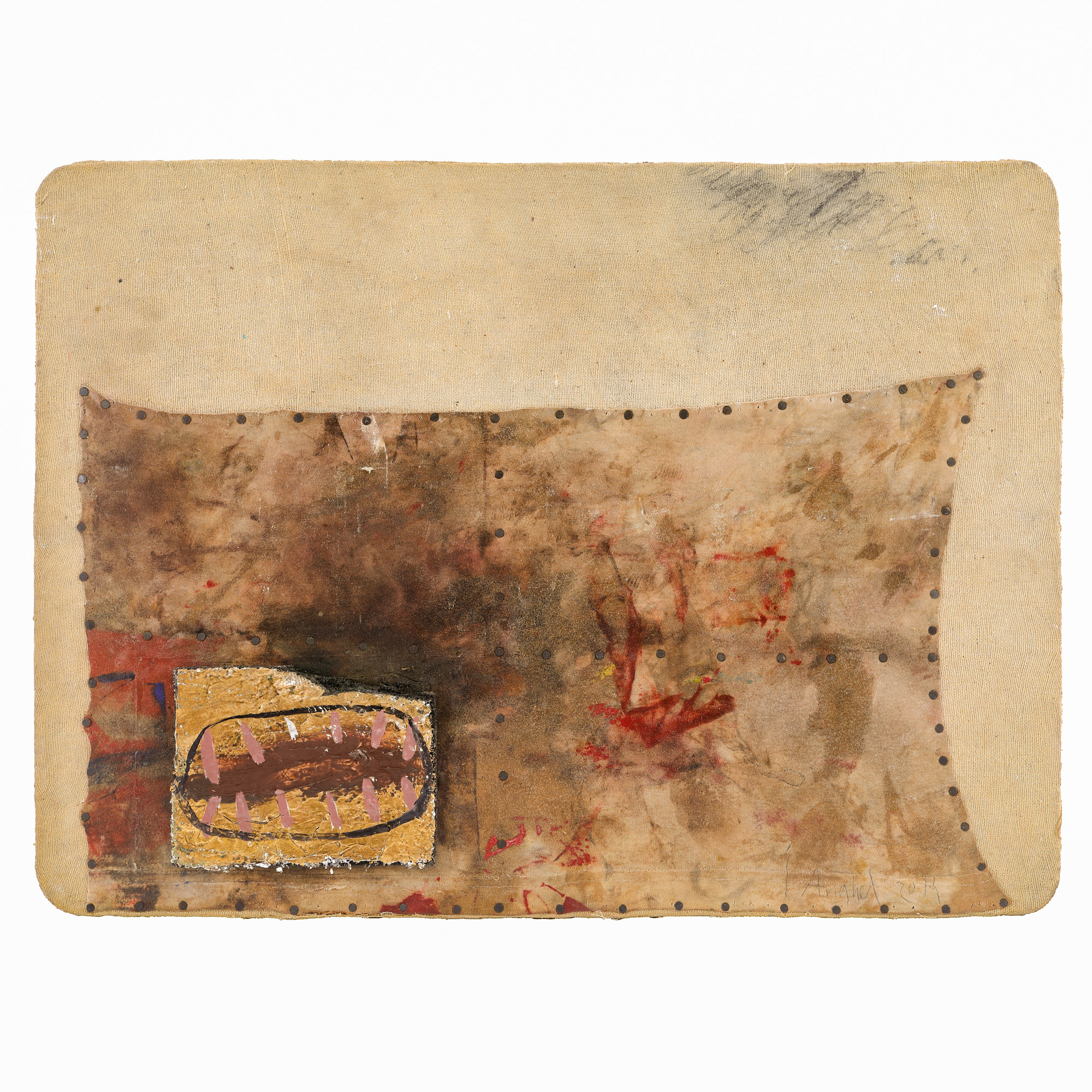 ulei, foiță de aur, colaj pe pânză lipită pe placaj