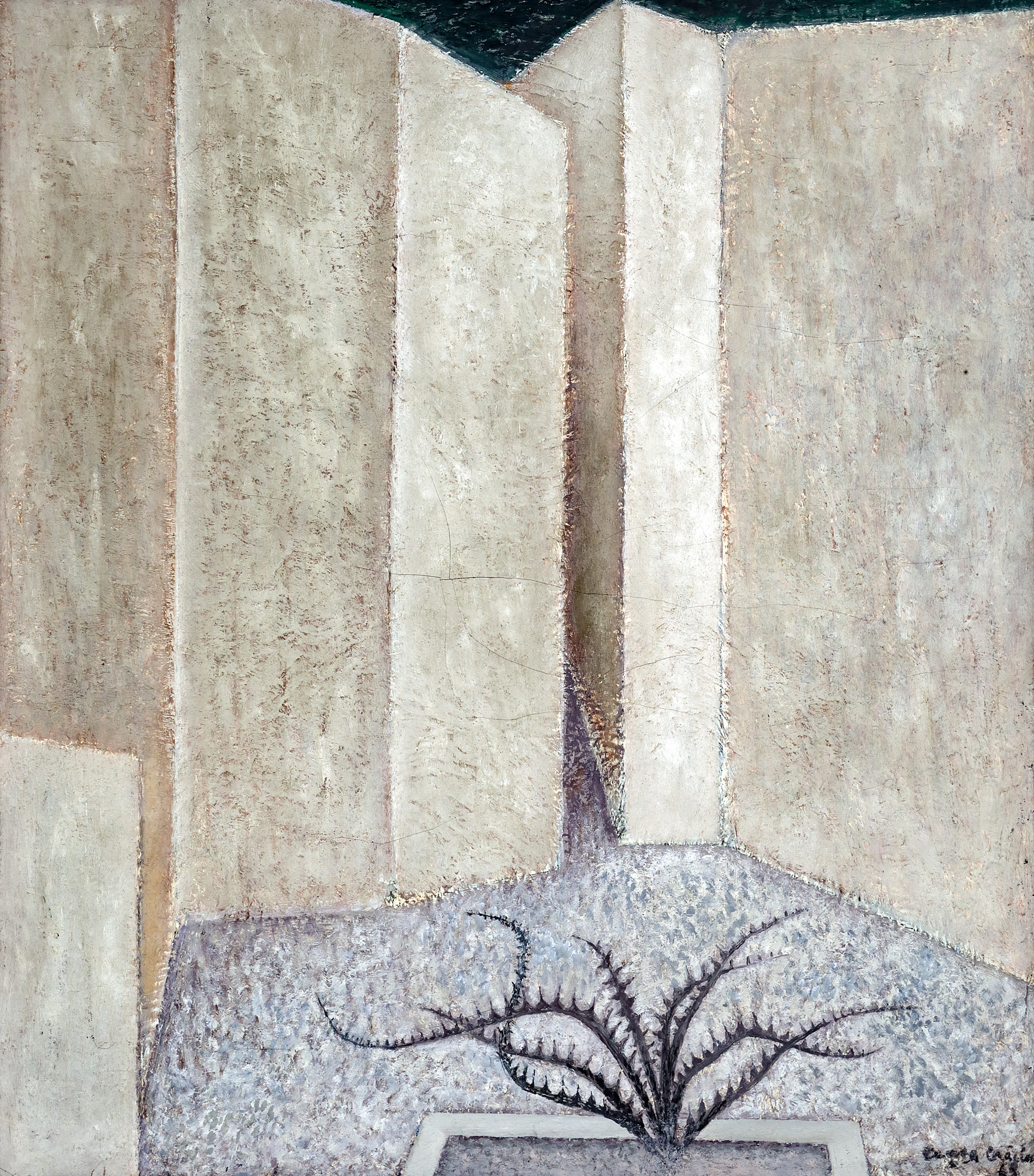 semnat și datat dreapta jos, cu negru, "Eugen Crăciun, (19)68"; semnat, datat și intitulat pe verso, cu negru, "Eugen Crăciun, Spațiu restrâns, 1968"