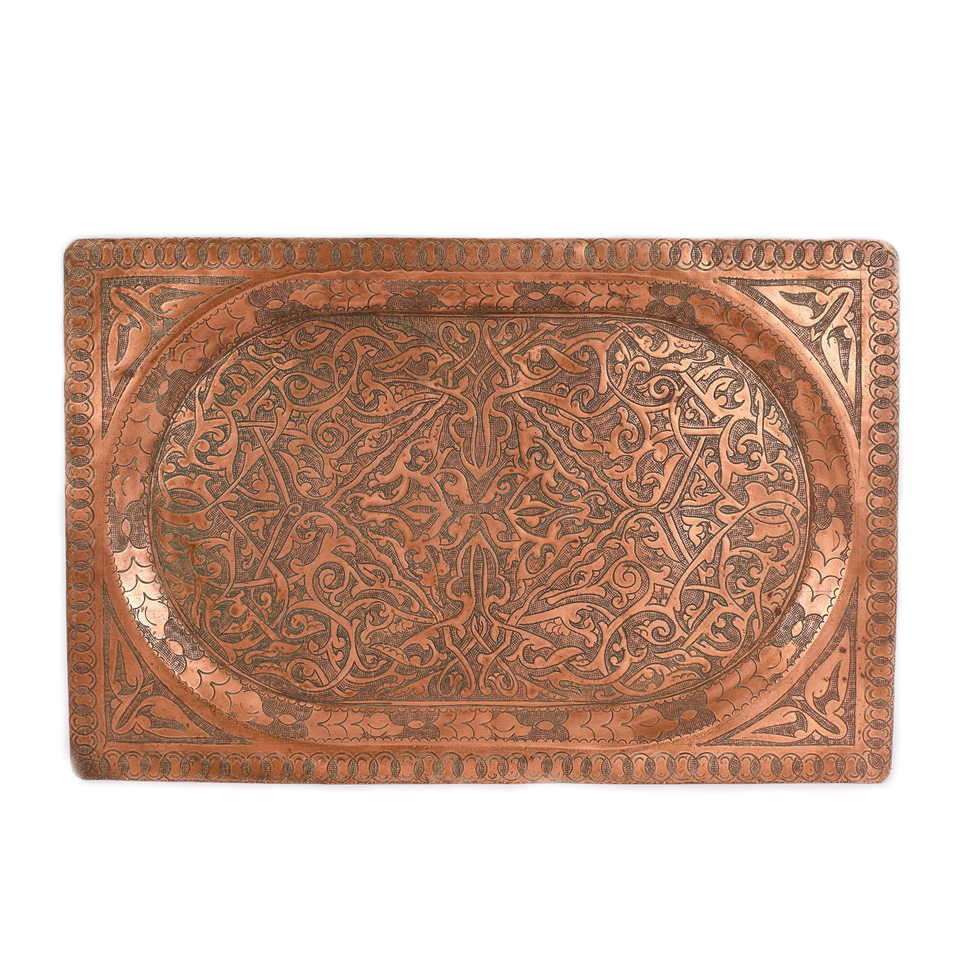 48. Platou din cupru, decorat cu arabescuri, sfârșitul sec. XVIII