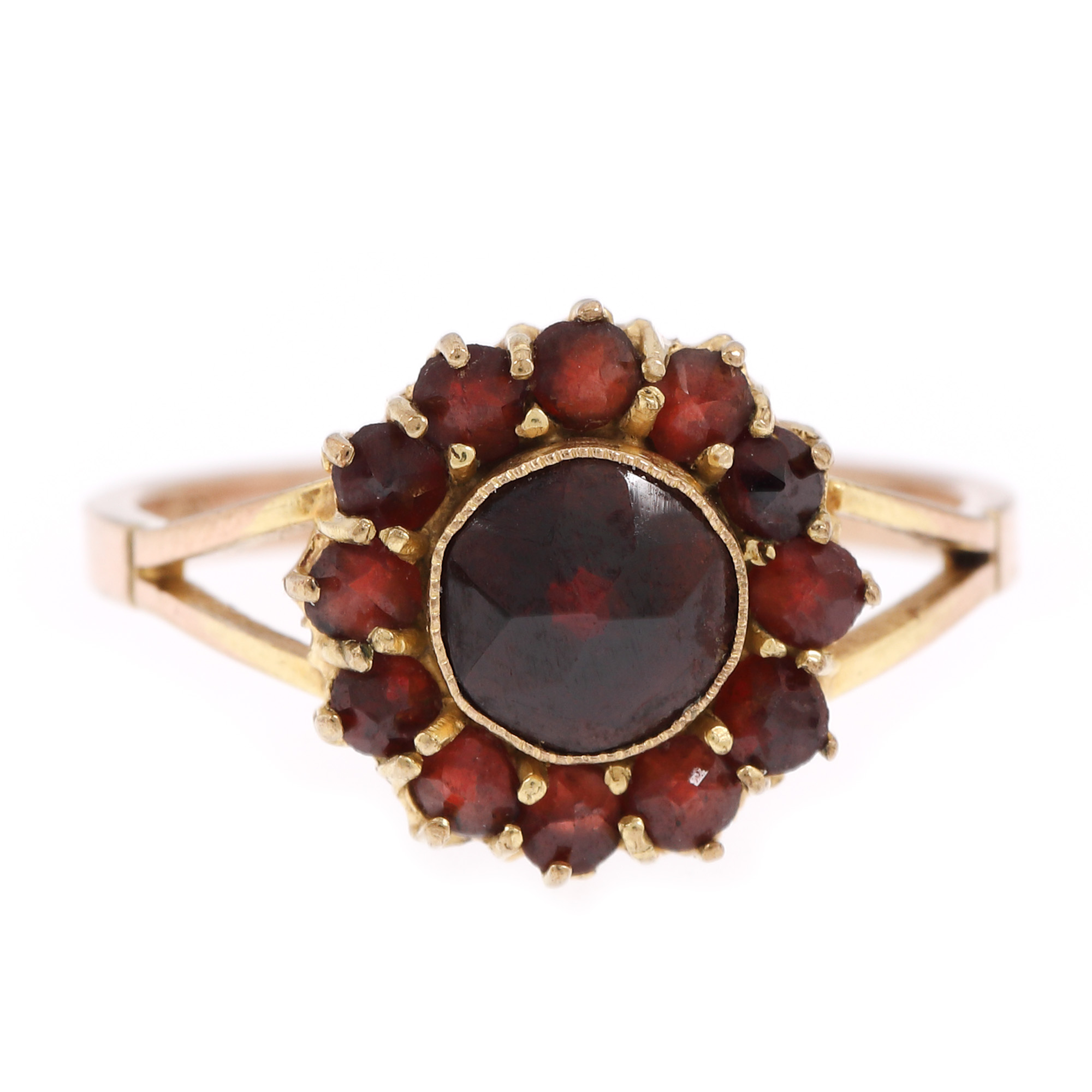 13 granate rotund fațetate, culoare roșu, claritate eye-clean, cca. 1 ct.