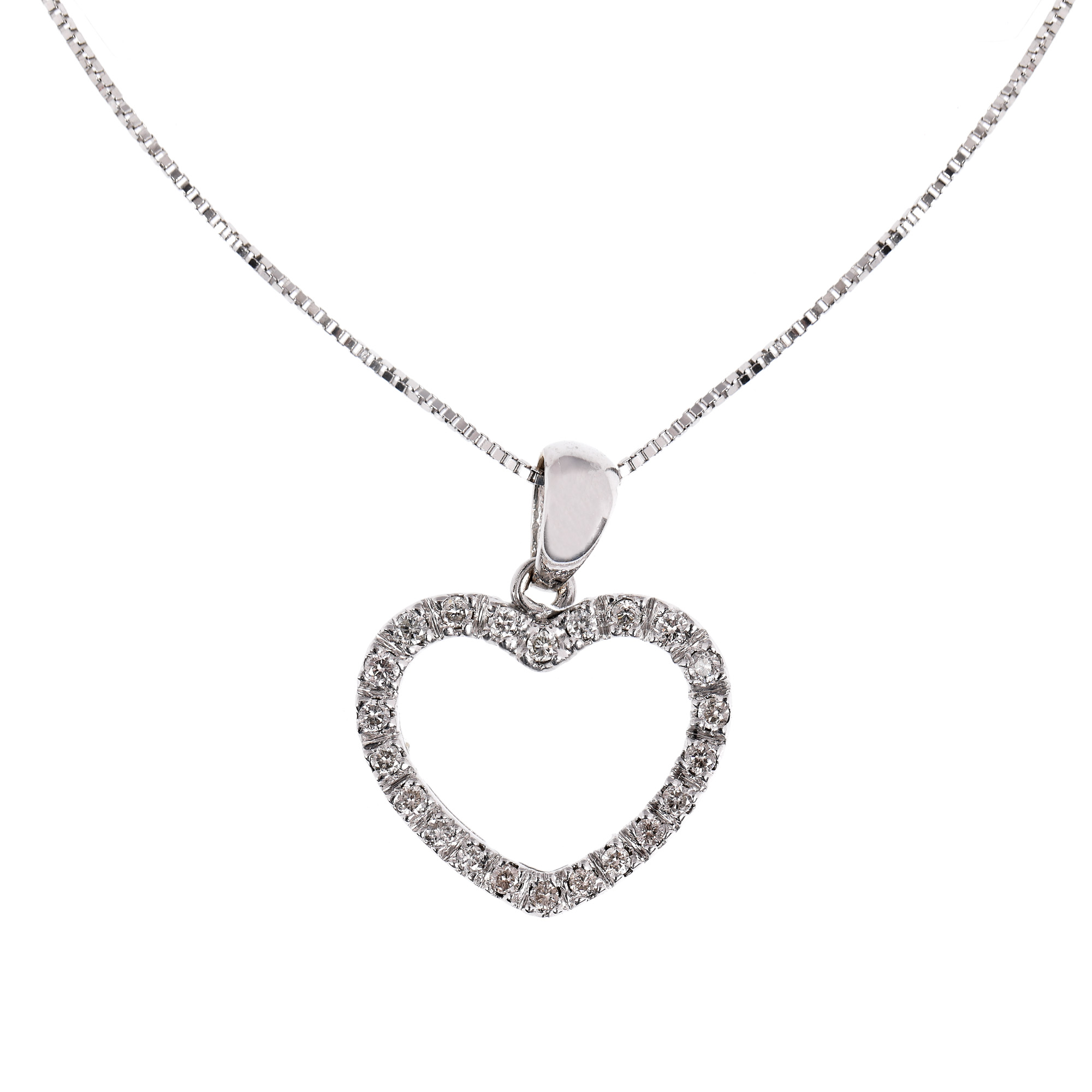 68. Lanț cu pandantiv din aur alb, în formă de inimă, ornat cu diamante