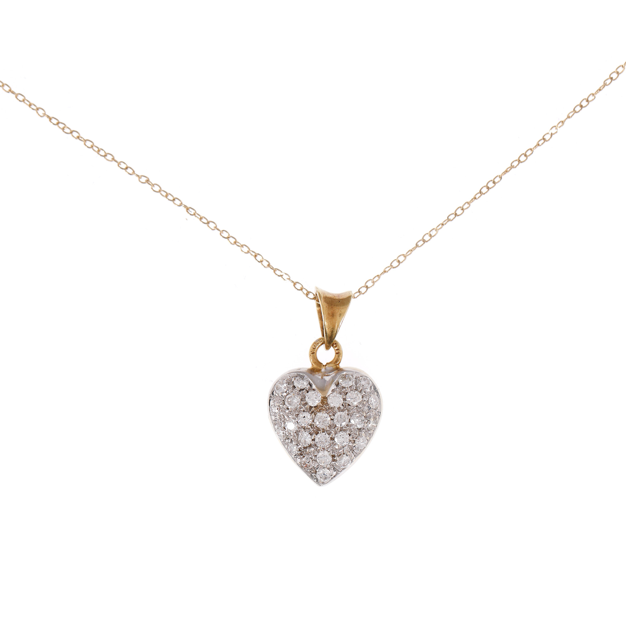 65. Lanț cu pandantiv-inimă din aur galben și alb, pavat cu diamante