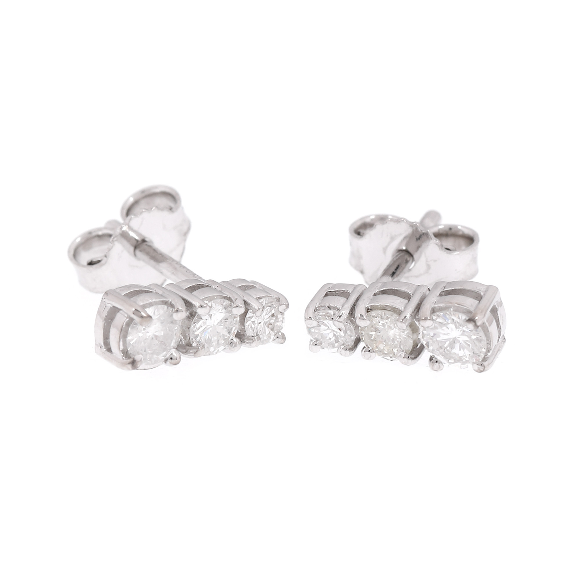 67. Pereche de cercei din aur alb, decorată cu șase diamante