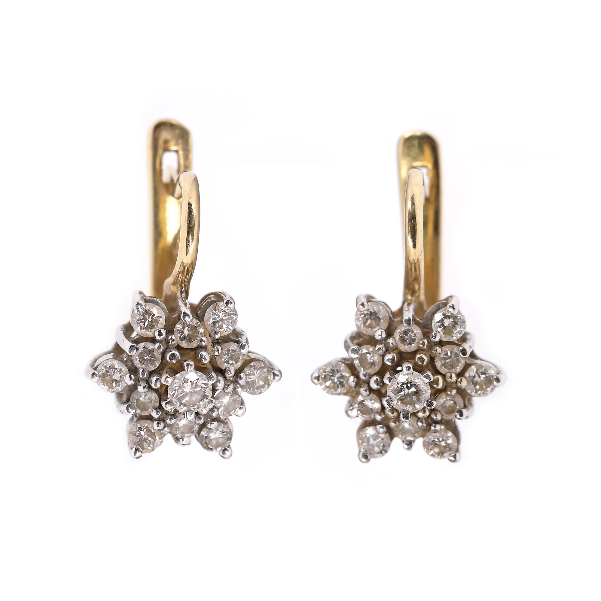 70. Pereche de cercei din aur în două culori, decorată cu diamante dispuse floral