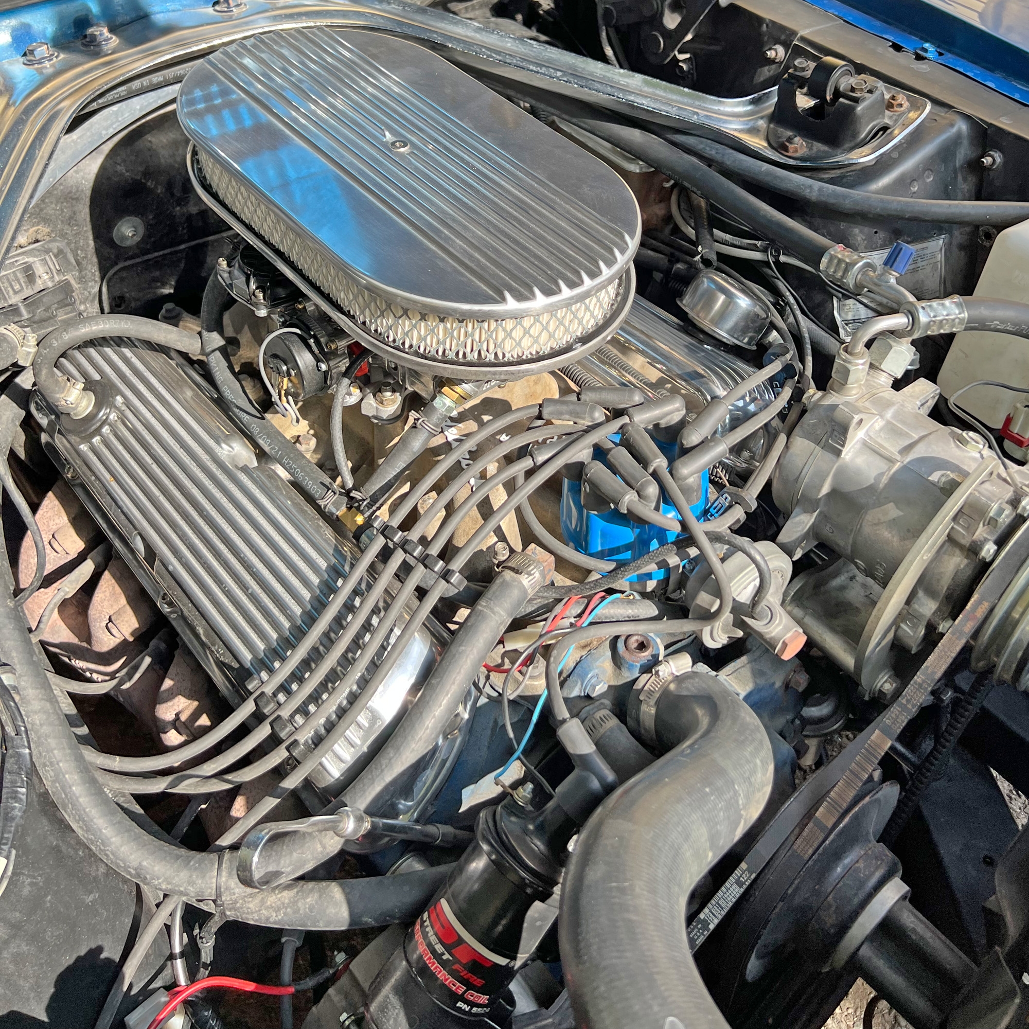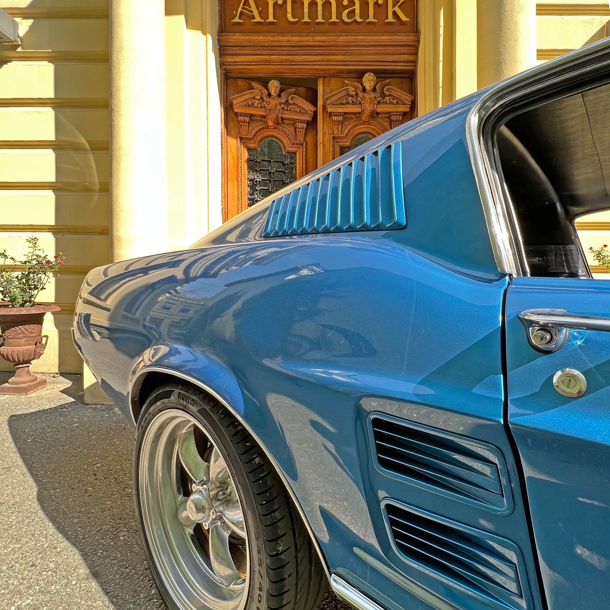 Automobil complet restaurat la standarde muzeale. Vopsea perfectă cu o schemă de culori celebră pentru mașinile sport americane, albastru cu dungi duble longitudinale albe. Varianta sport a modelului, echiparea GT cu motor V8 de 5 litri și cu caroserie aerodinamică ''fastback''. La momentul apariției era una dintre cele mai rapide automobile de serie din lume cu o viteză maximă de 214 km/h și un sprint de la 0 la 100 km/h în 5,4 s. Are atestat de vehicul istoric și ITP valabil până în 2024.