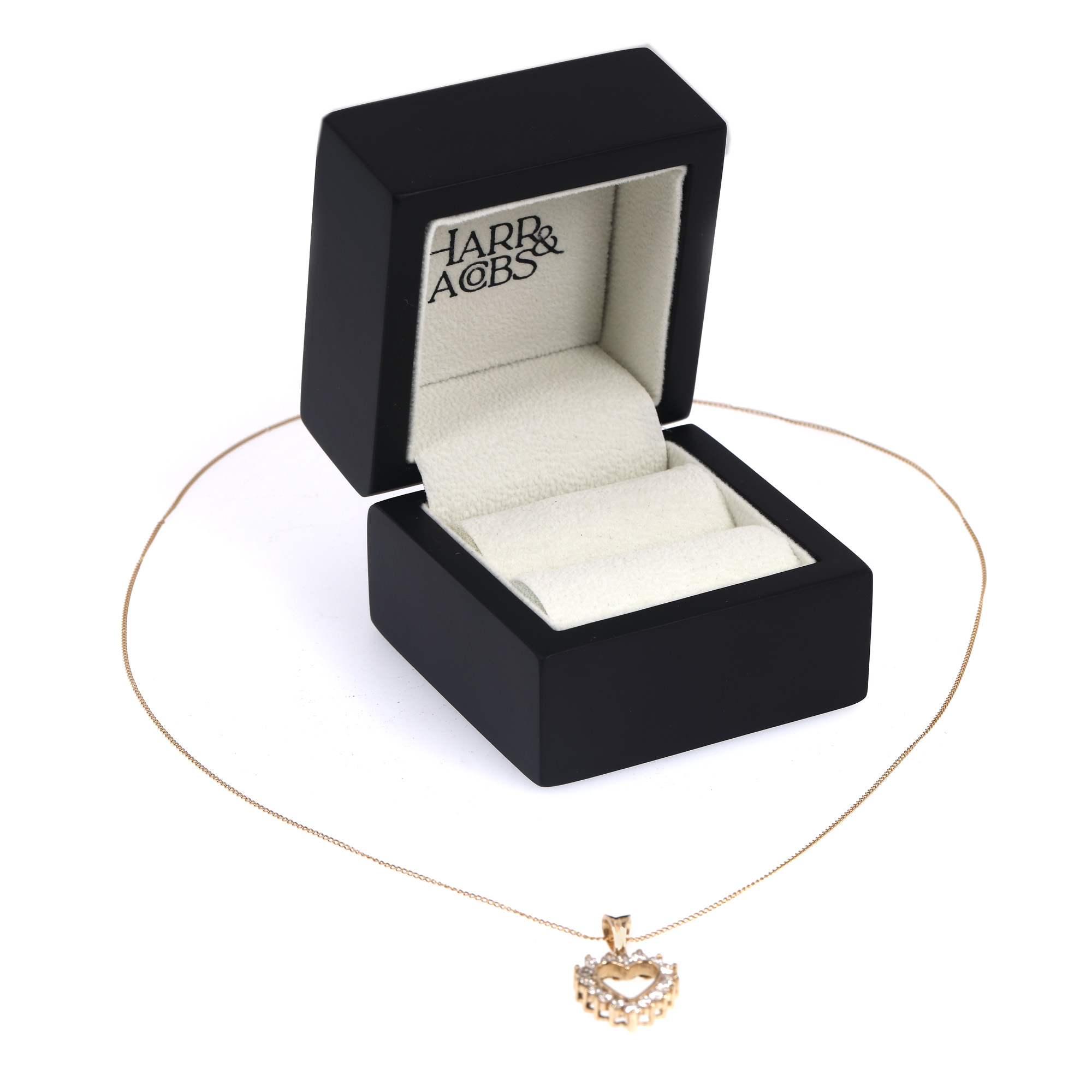 142. Colier Harr&Jacobs din aur, cu pandantiv în formă de inimă, decorat cu diamante, în cutia originală, însoțit de certificat de proveniență