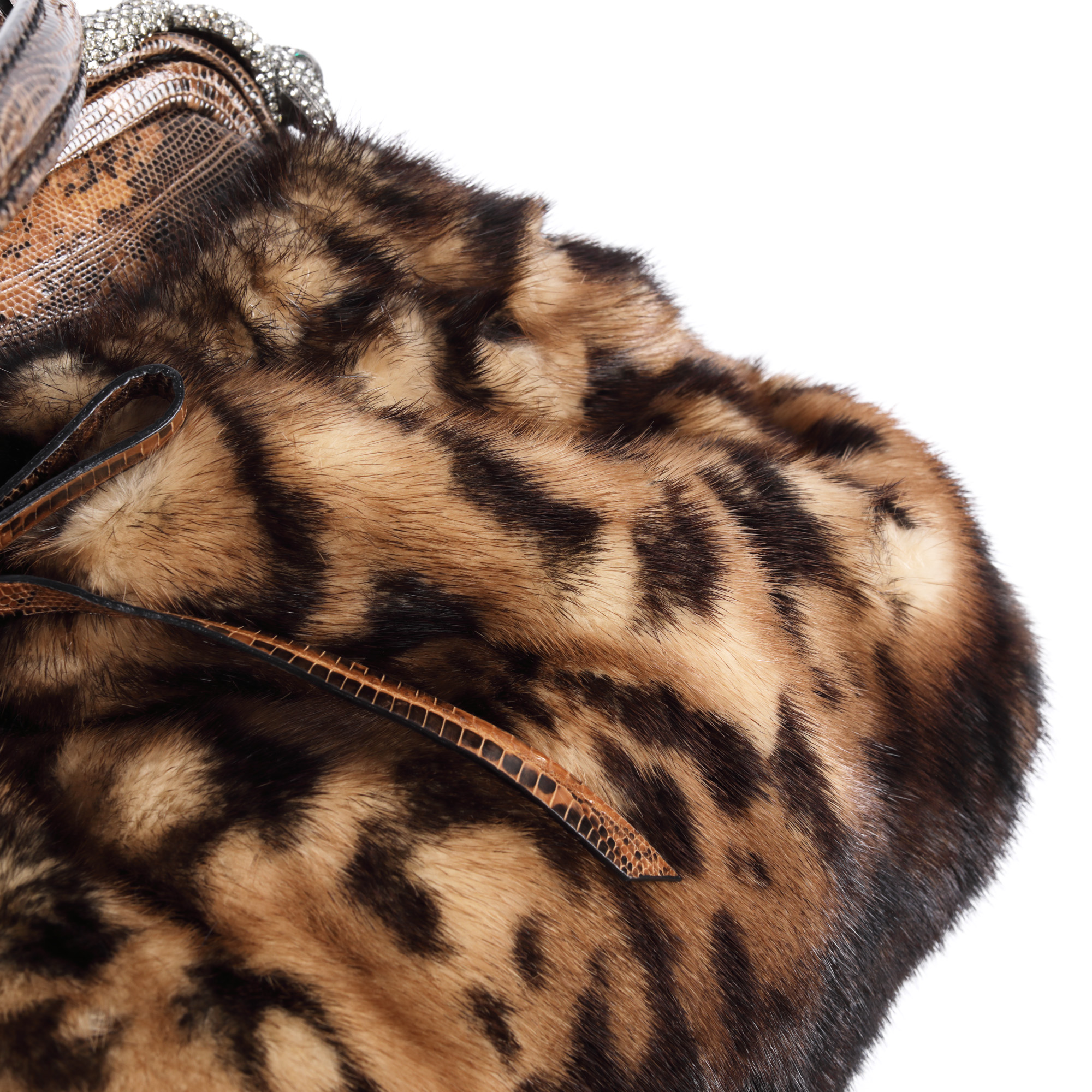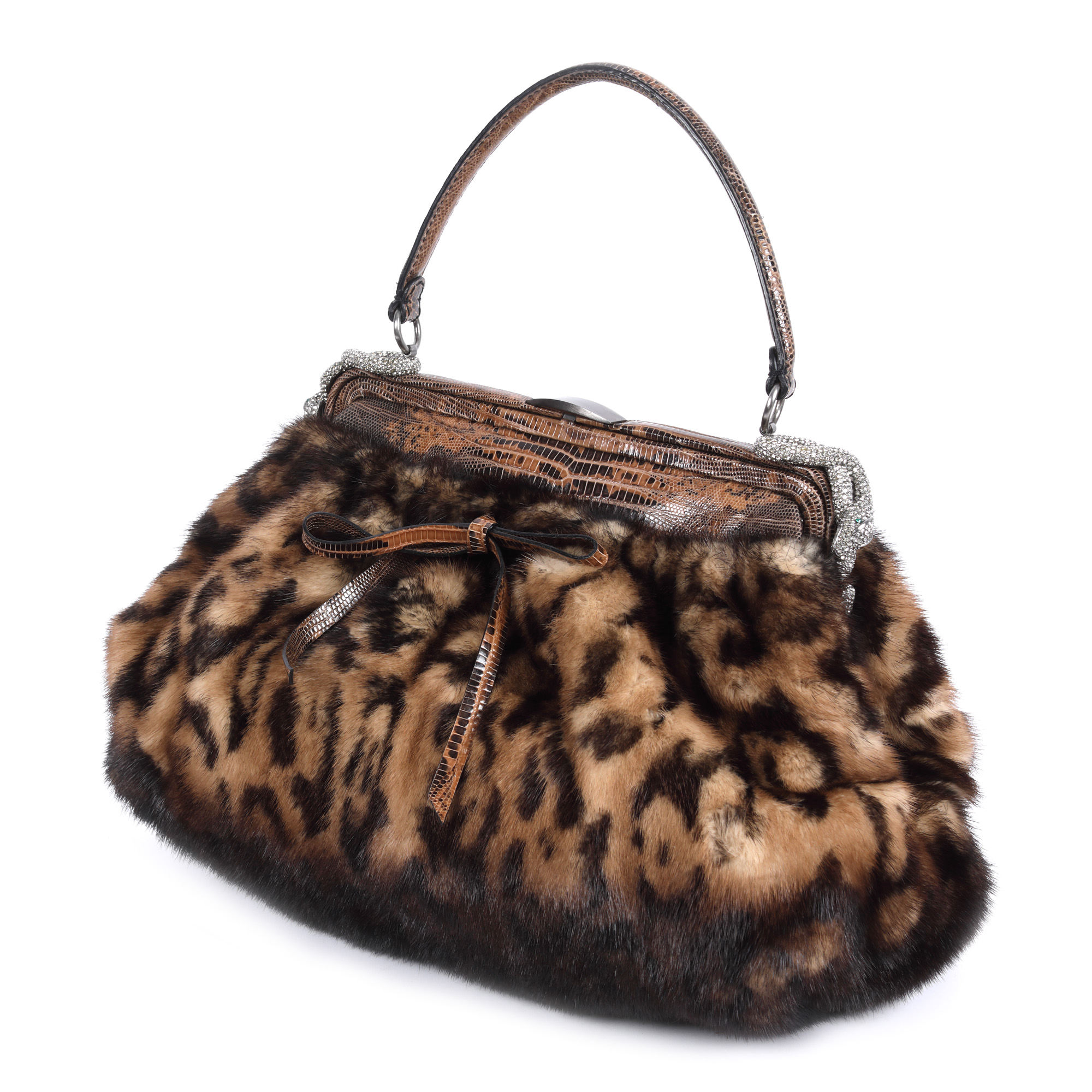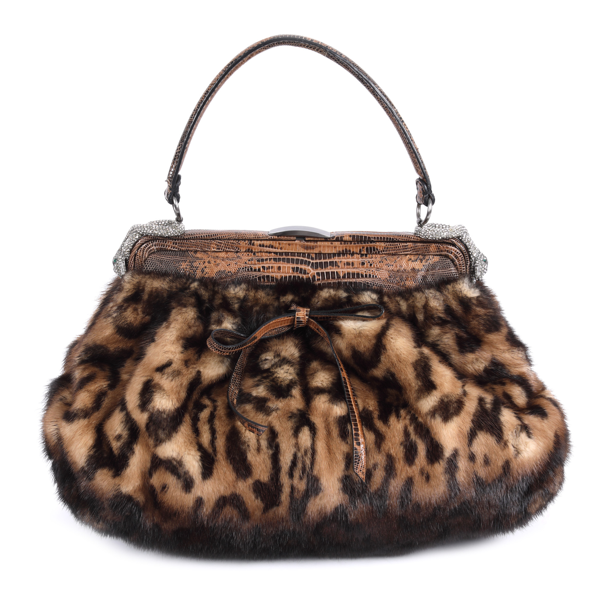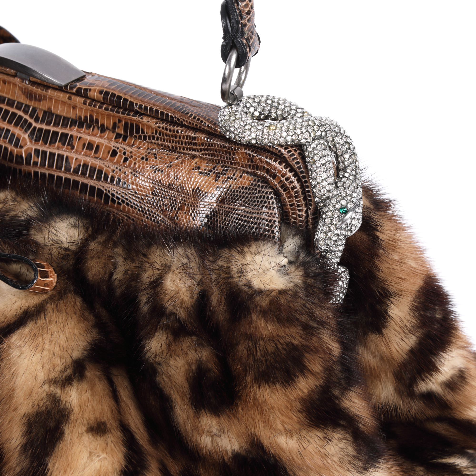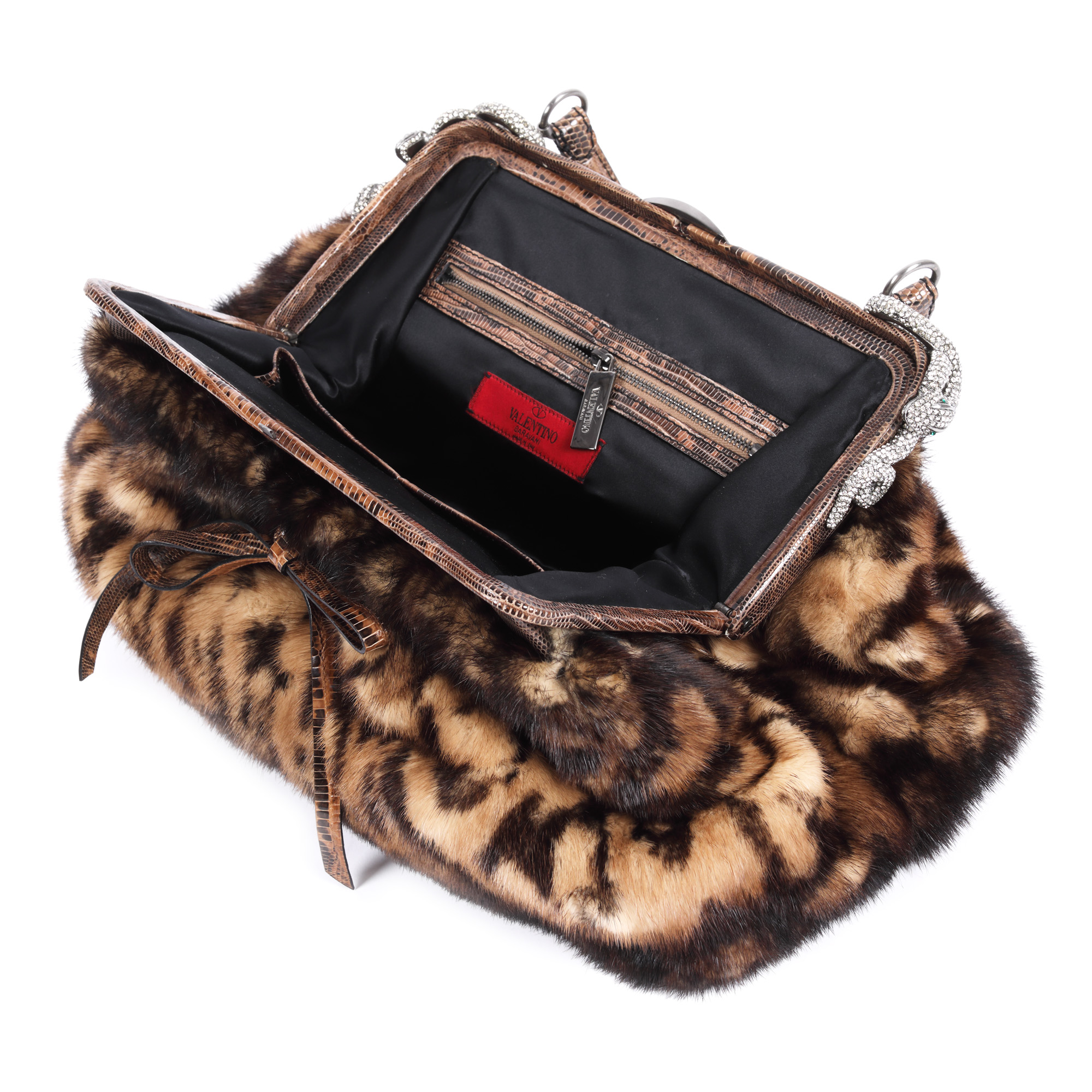 87. Geantă Valentino, din blană de nurcă și piele de șopârlă, ornată cu șerpi decorați cu cristale