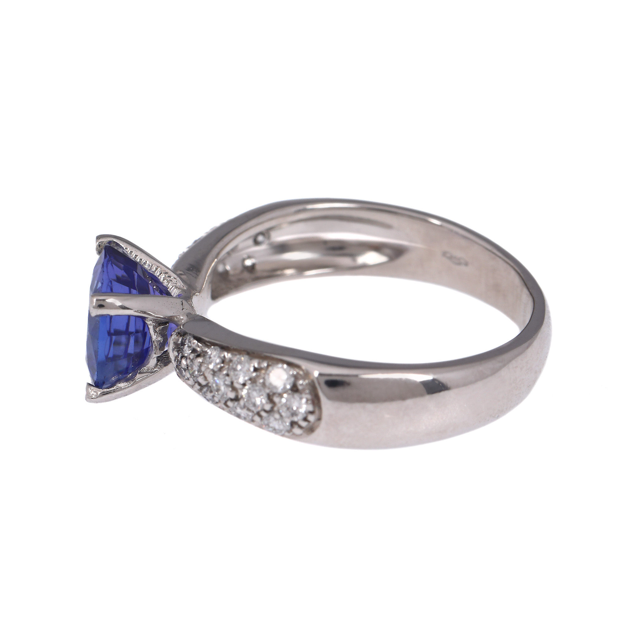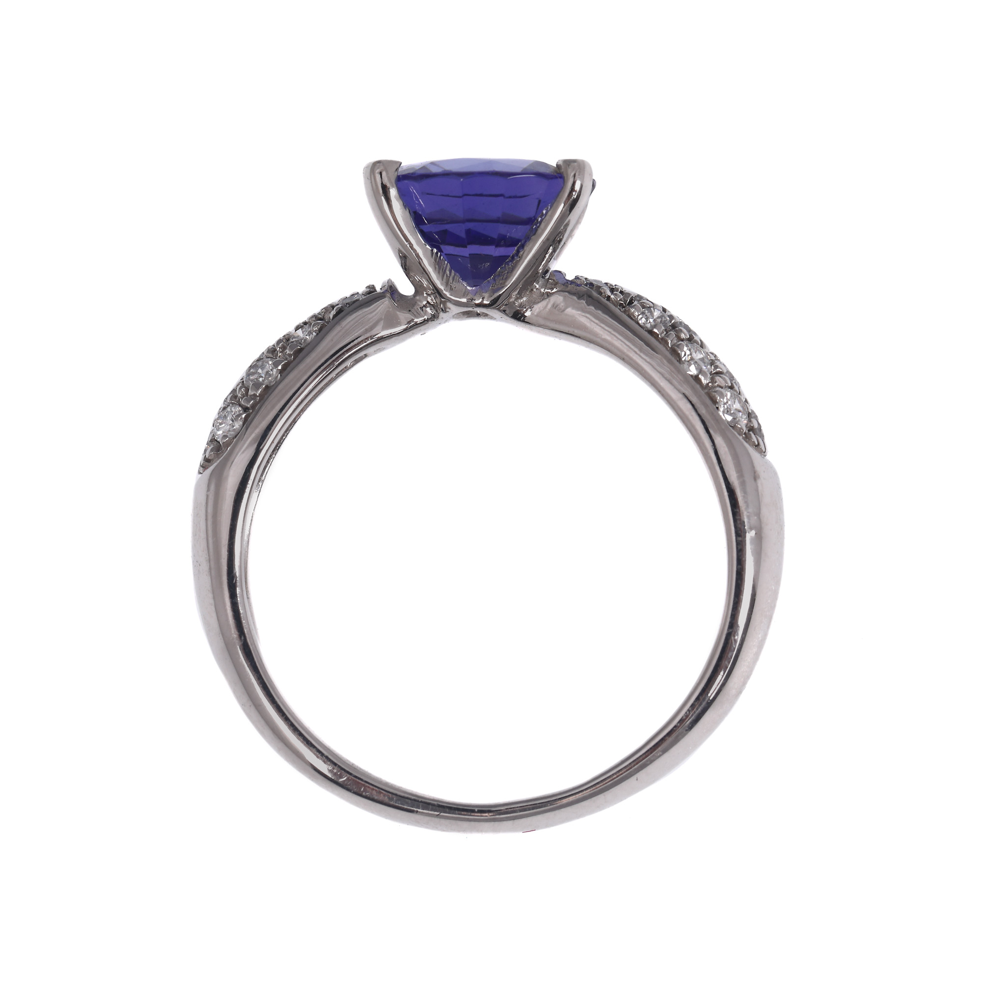 82. Inel din aur alb, decorat central cu tanzanit anturat de diamante