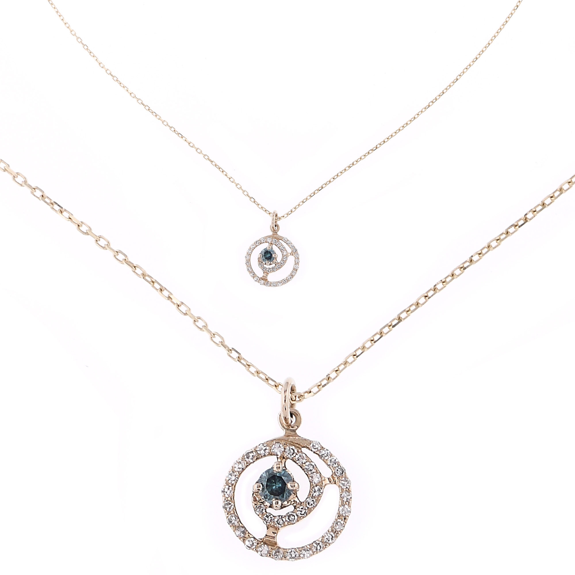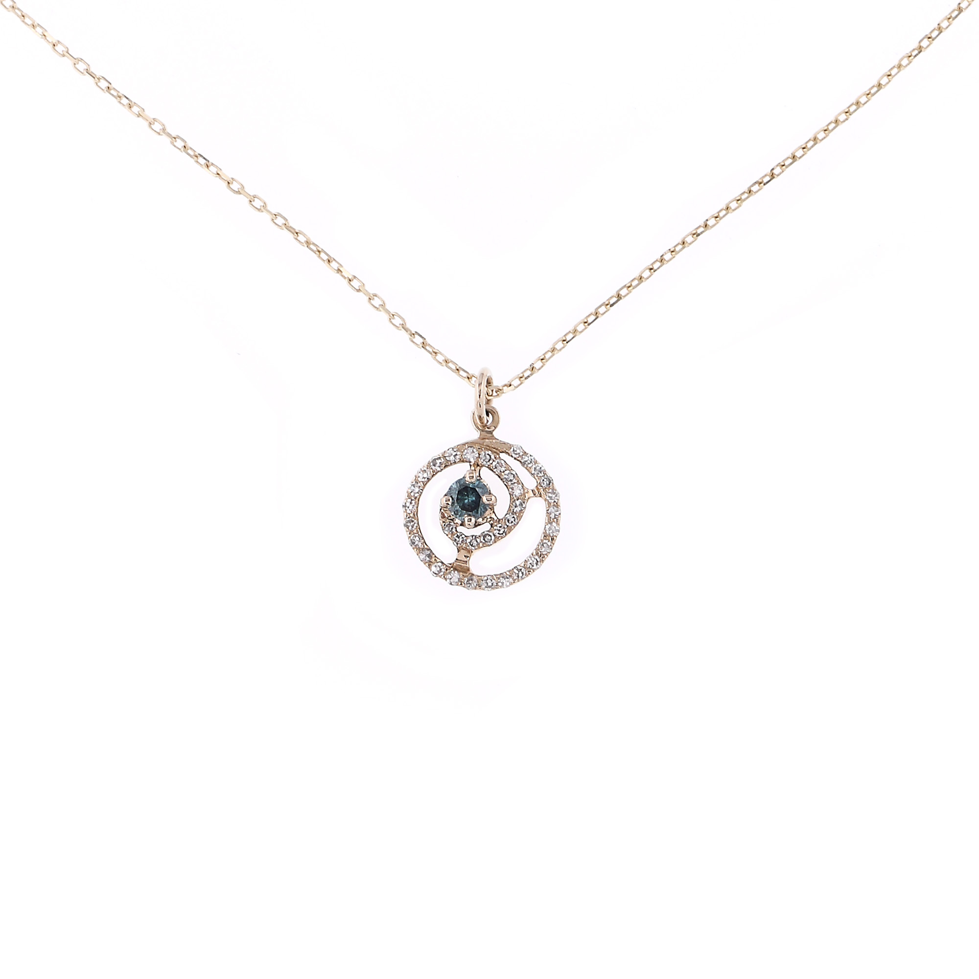 1 diamant rotund briliant, culoare albastru (culoare obținută în urma tratamentului), claritate I2, cca. 0,14 ct. și 35 diamante single cut, culoare M-N, claritate VS2-I1, cca. 0,18 ct.