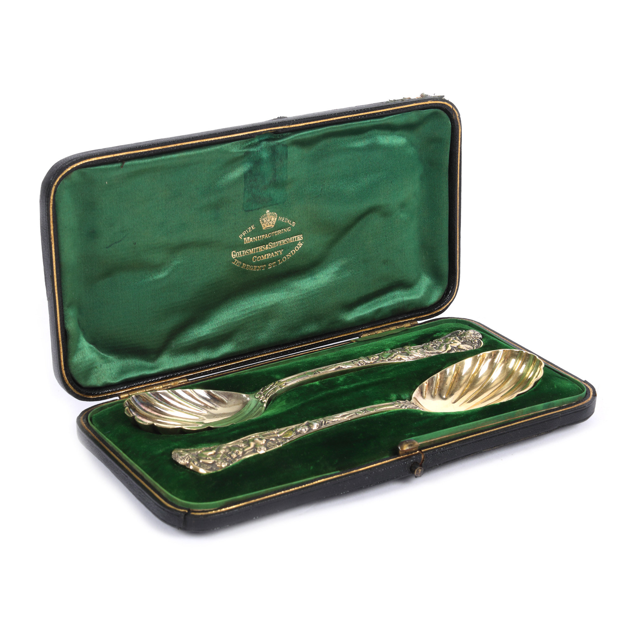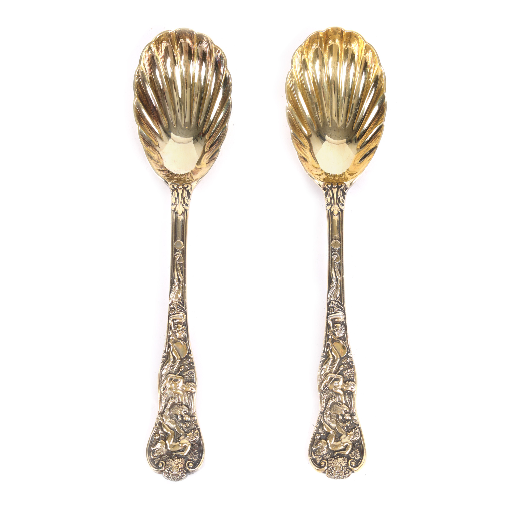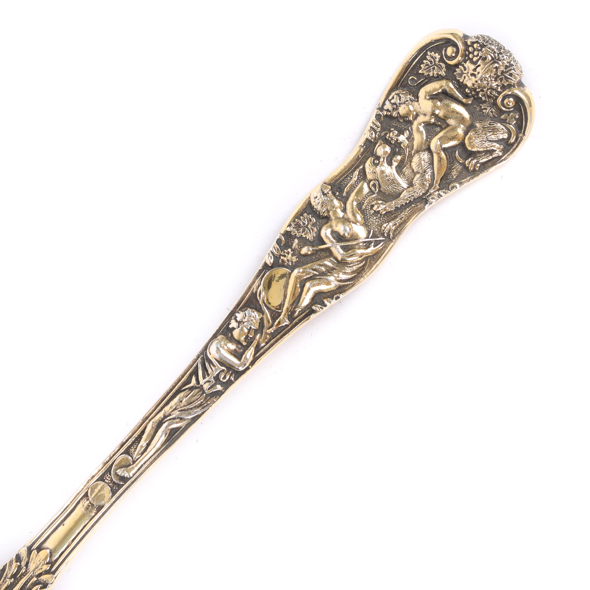 135. Pereche de linguri din argint aurit, atelier William Gibson & John Lawrence, cu mâner decorat cu scenă mitologică, 1890-1891
