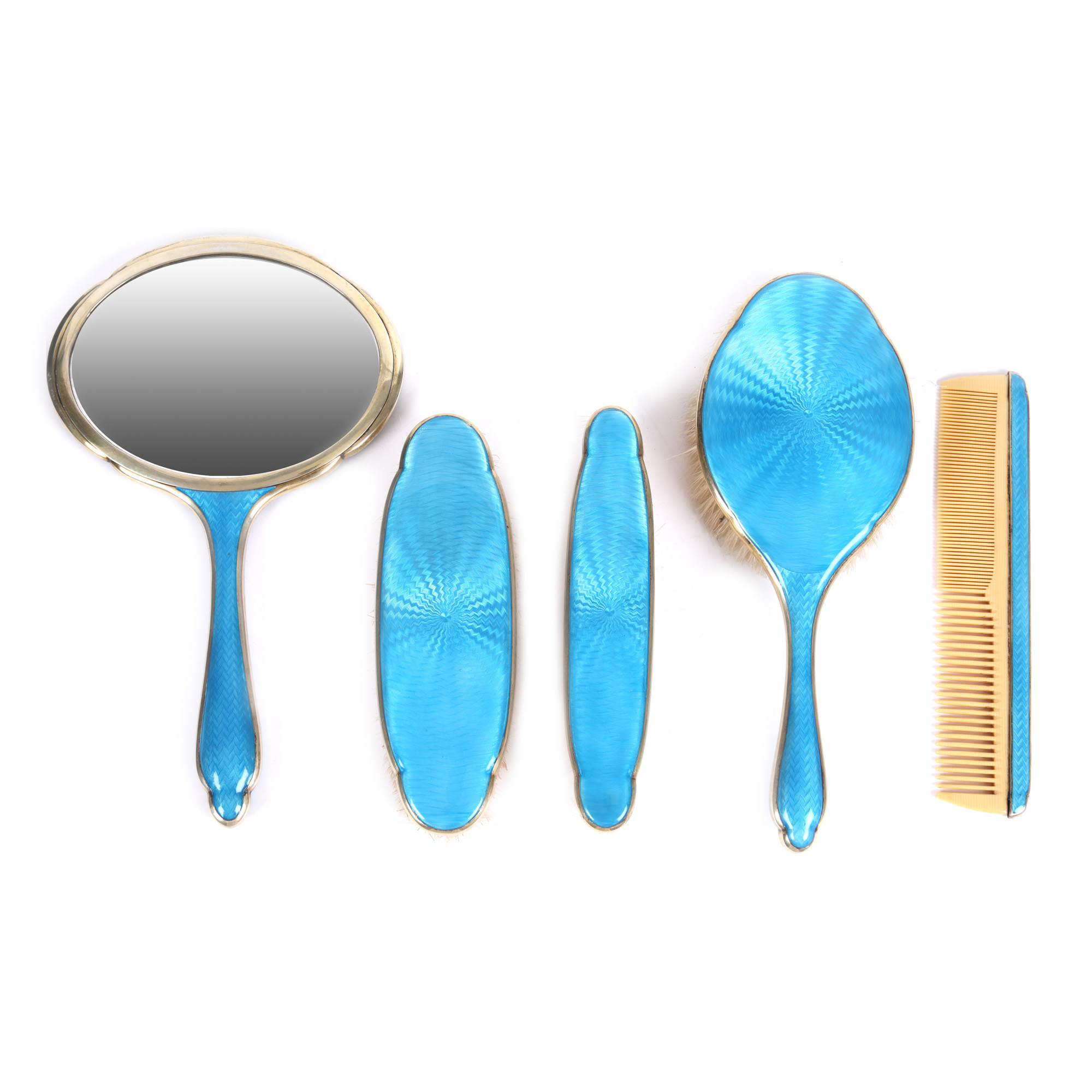 111. Set de toaletă Art Deco din argint, decorat cu email guilloché, cca. 1930