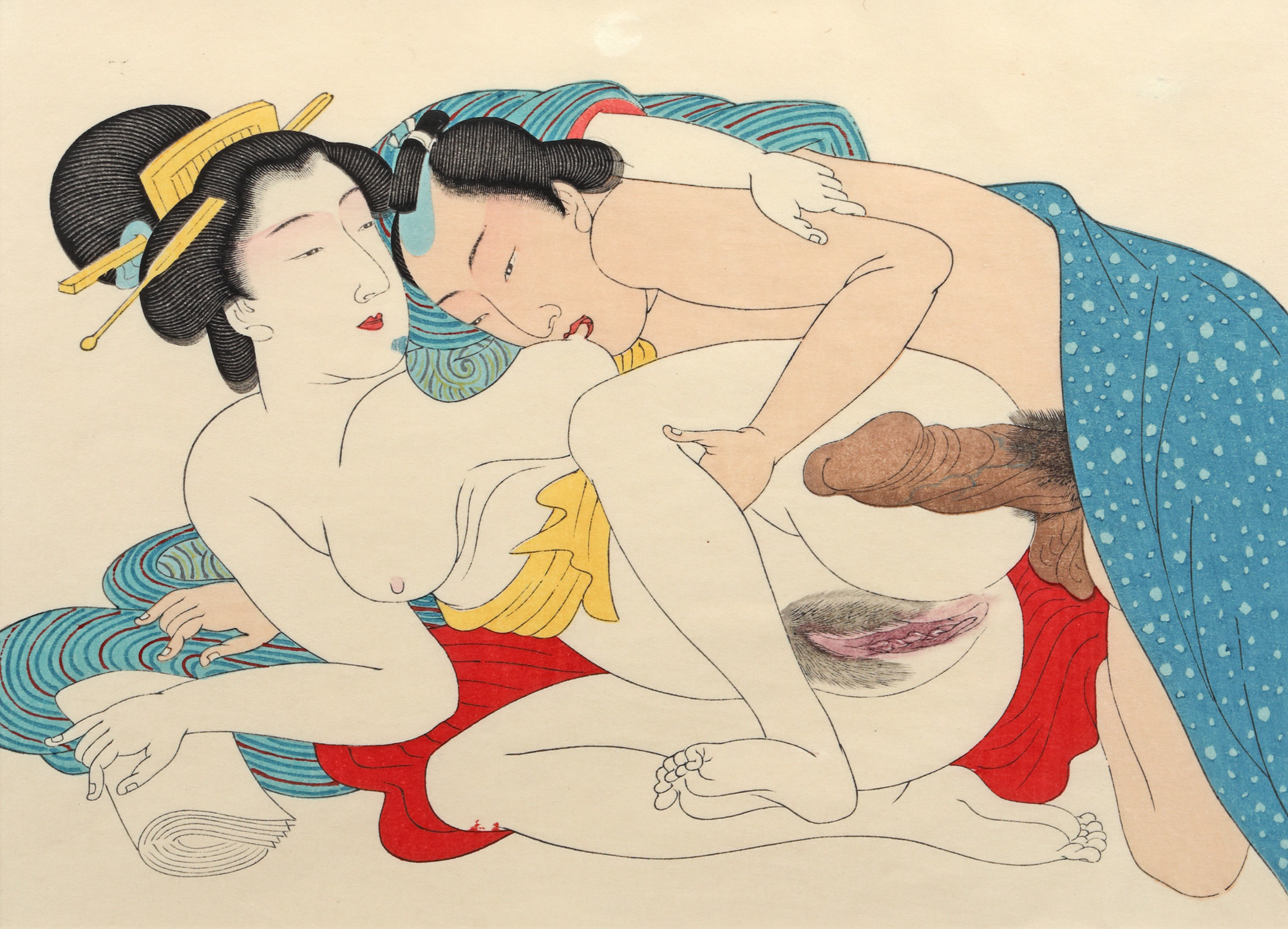 99. Shunga (scenă erotică), reprezentând un cuplu în extaz