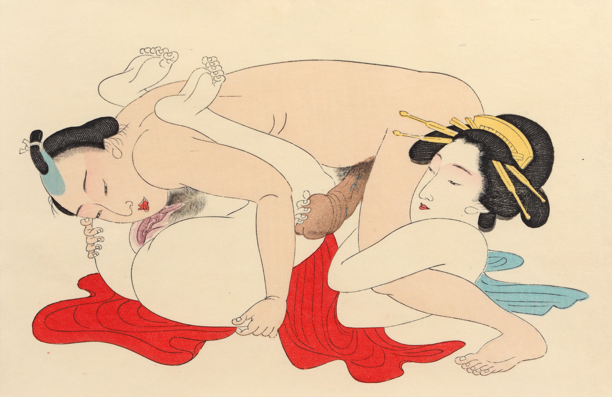 97. Shunga (scenă erotică), reprezentând un cuplu într-un moment intim