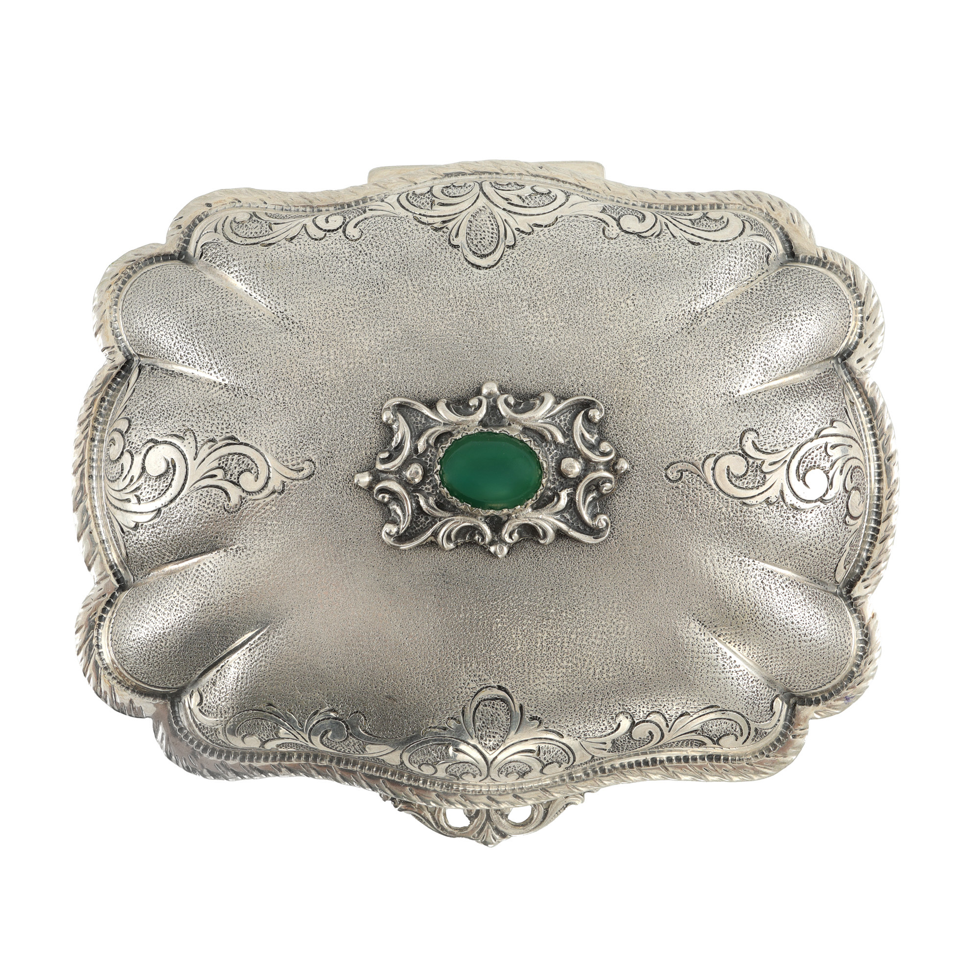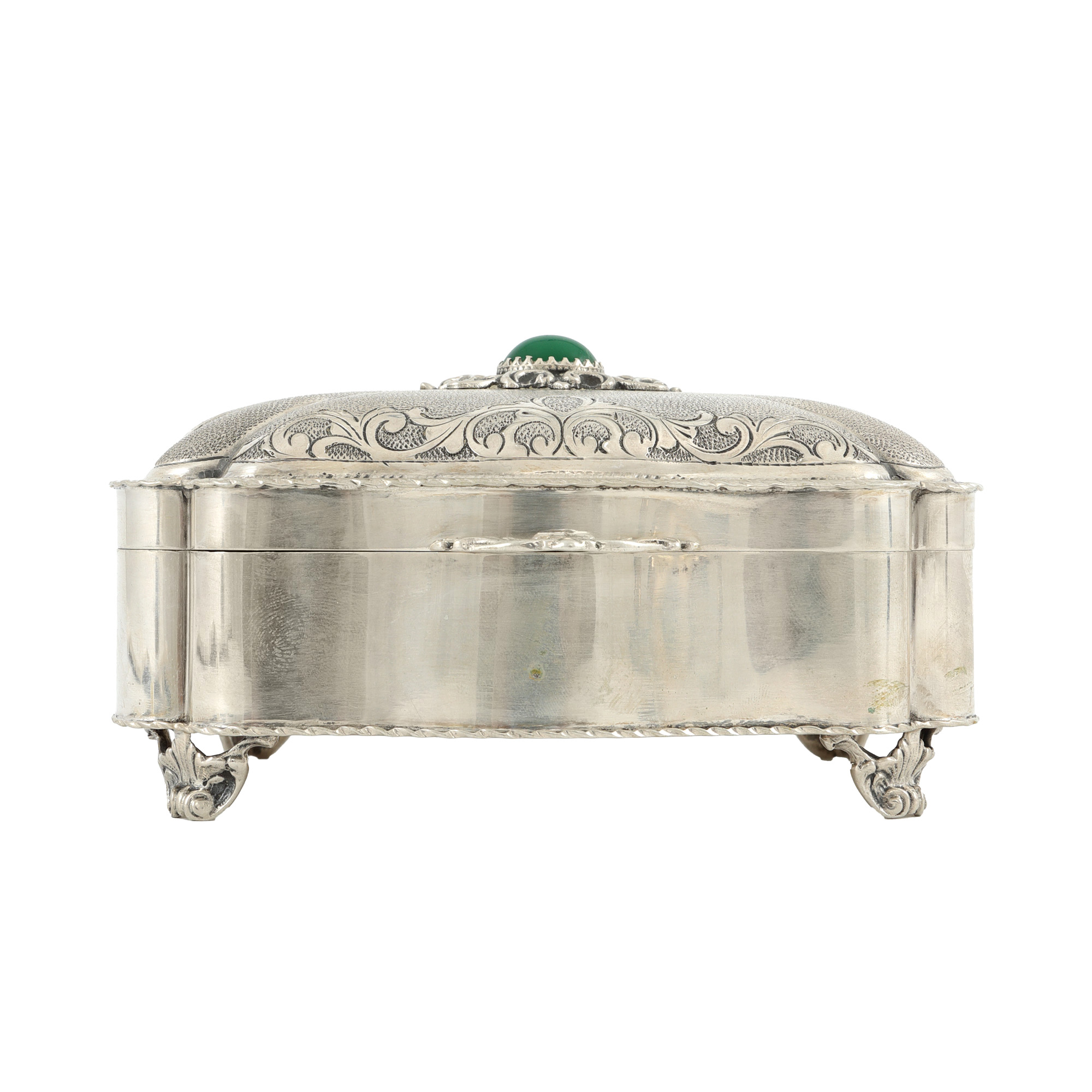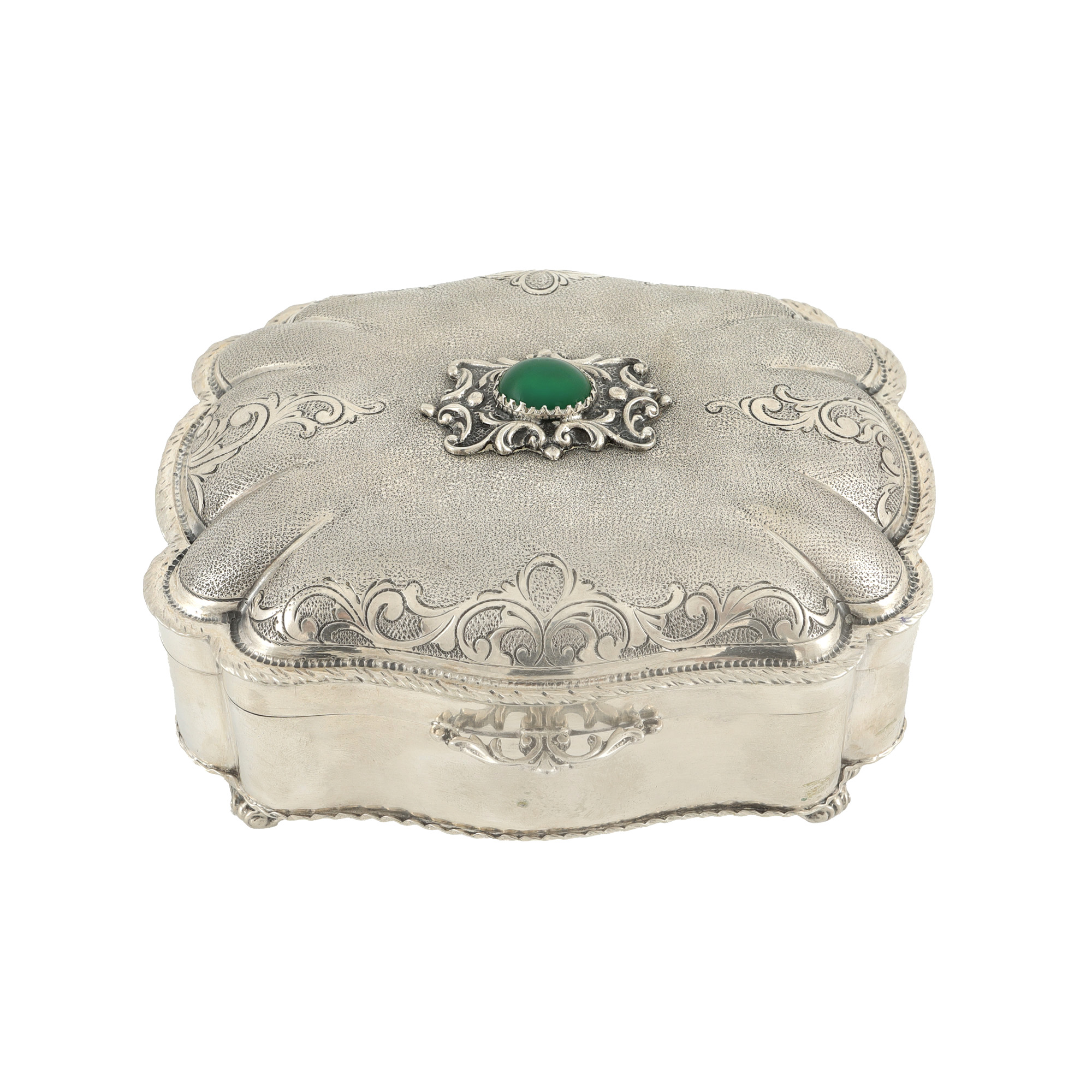 117. Casetă de bijuterii, din argint și argint aurit, decorată cu calcedonie [cca. 1970]