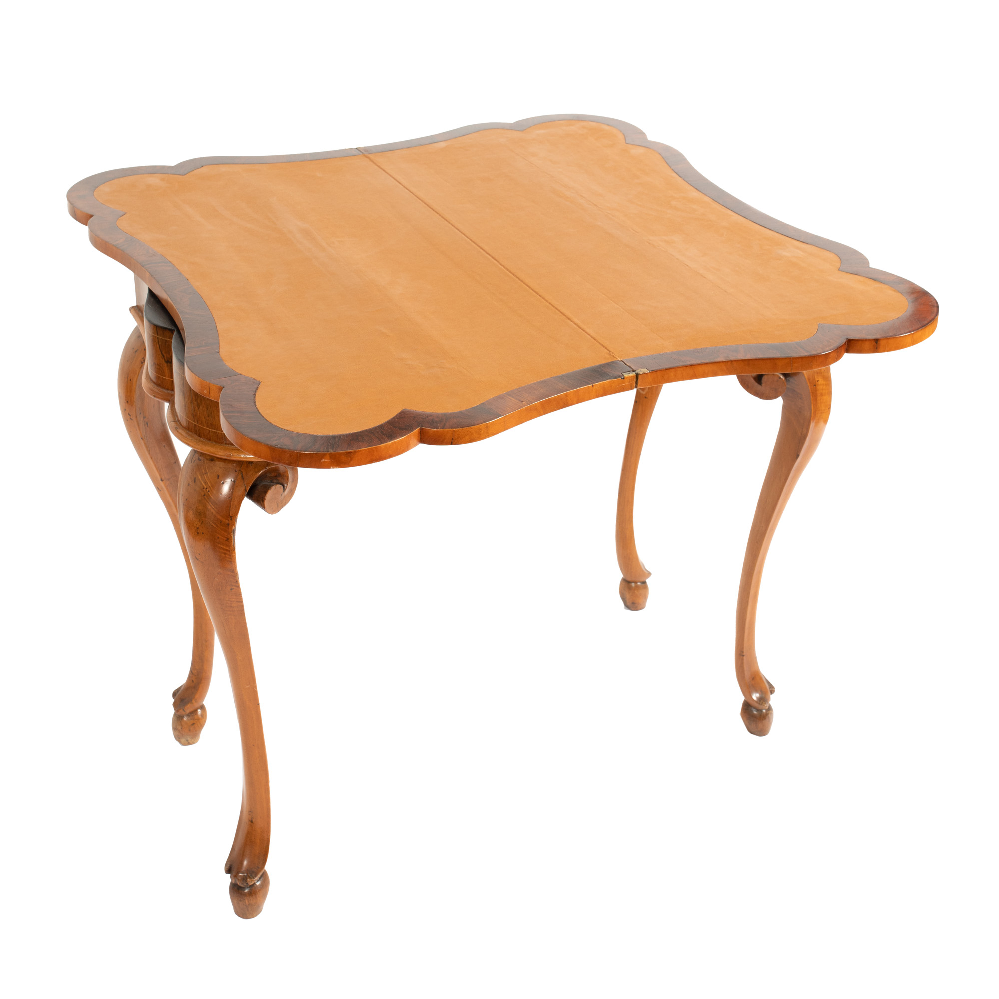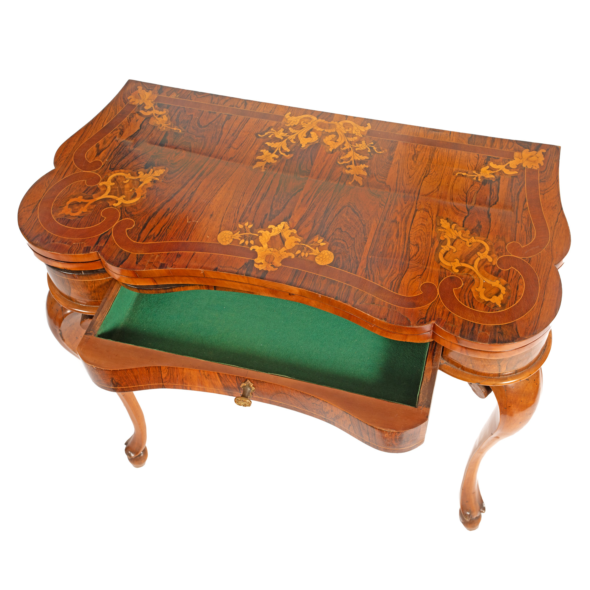 73. Masă de joc stil Napoleon III, din lemn nuc cu intarsii, cca. 1900-1910