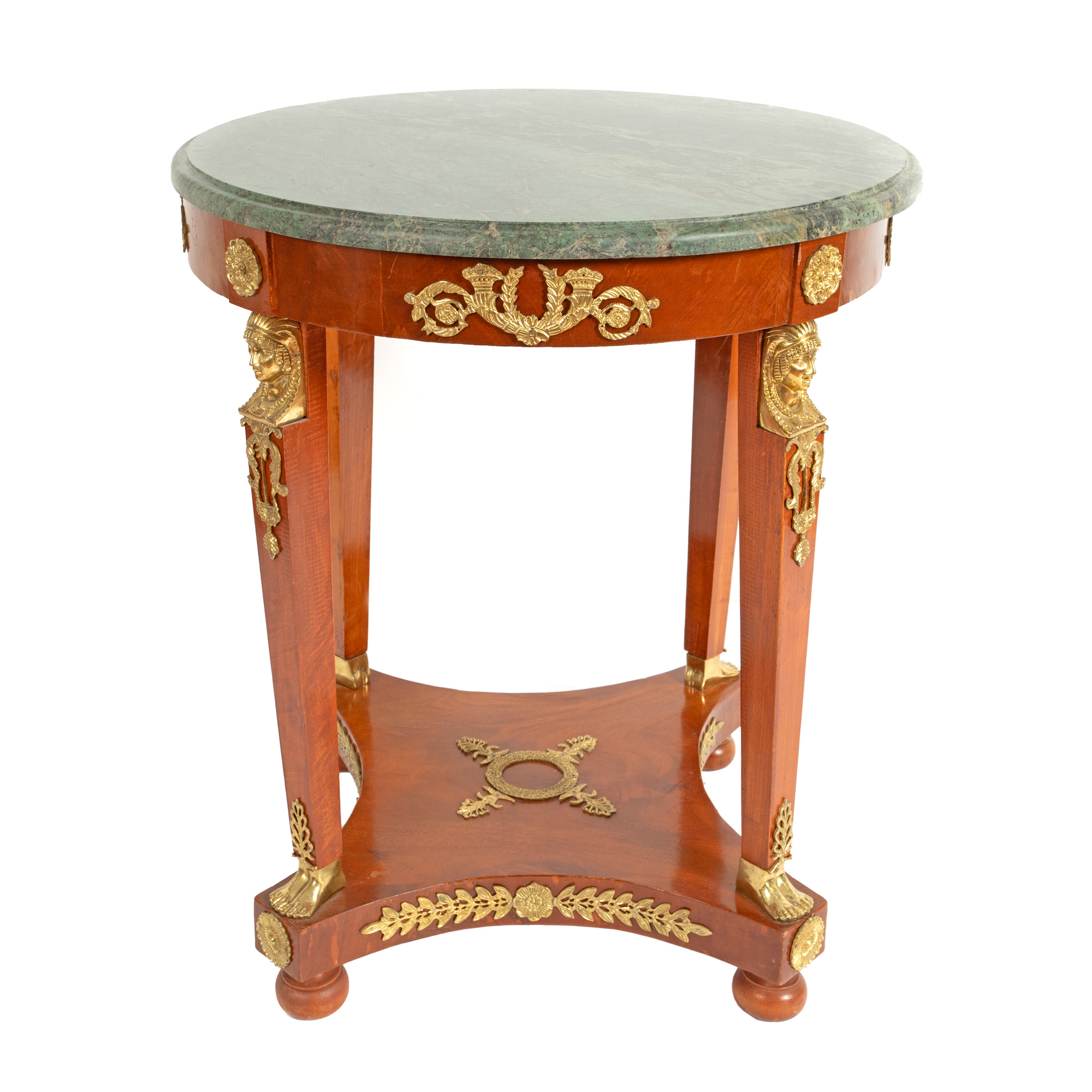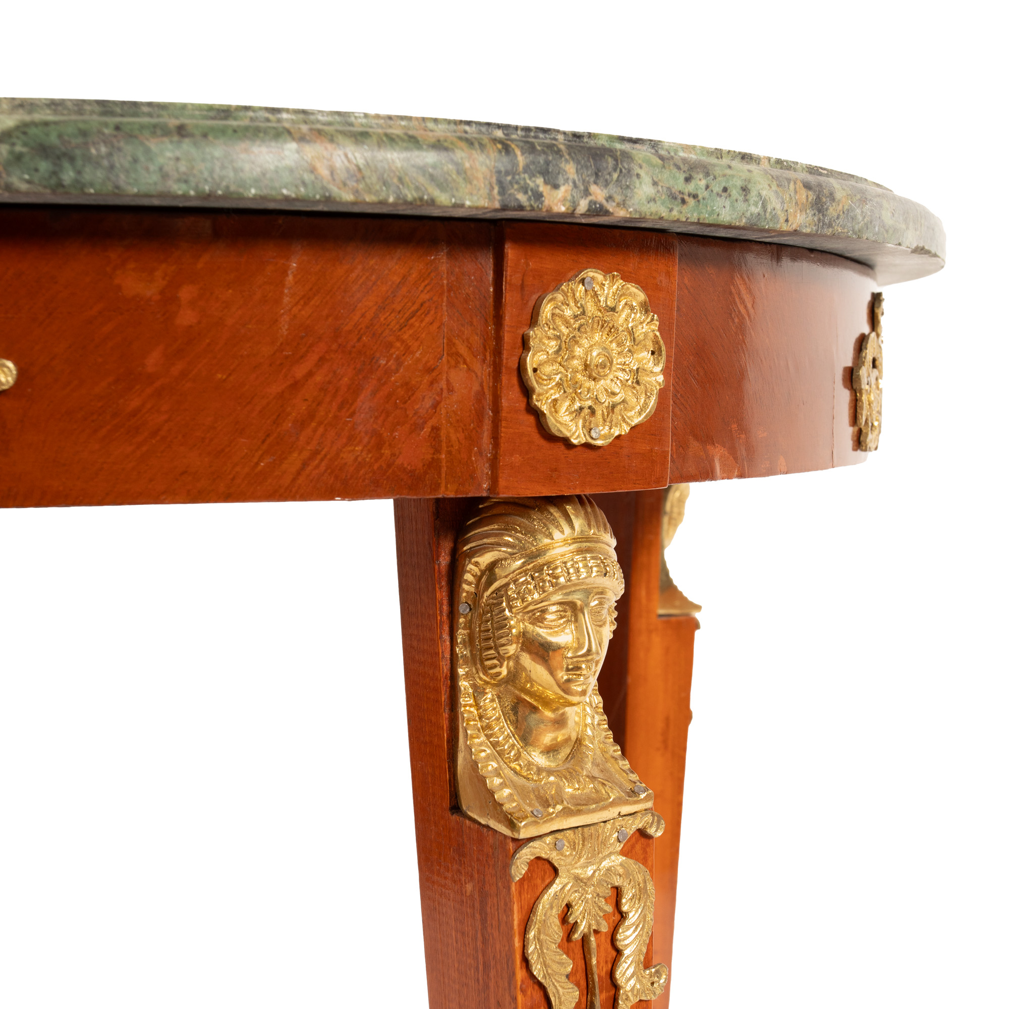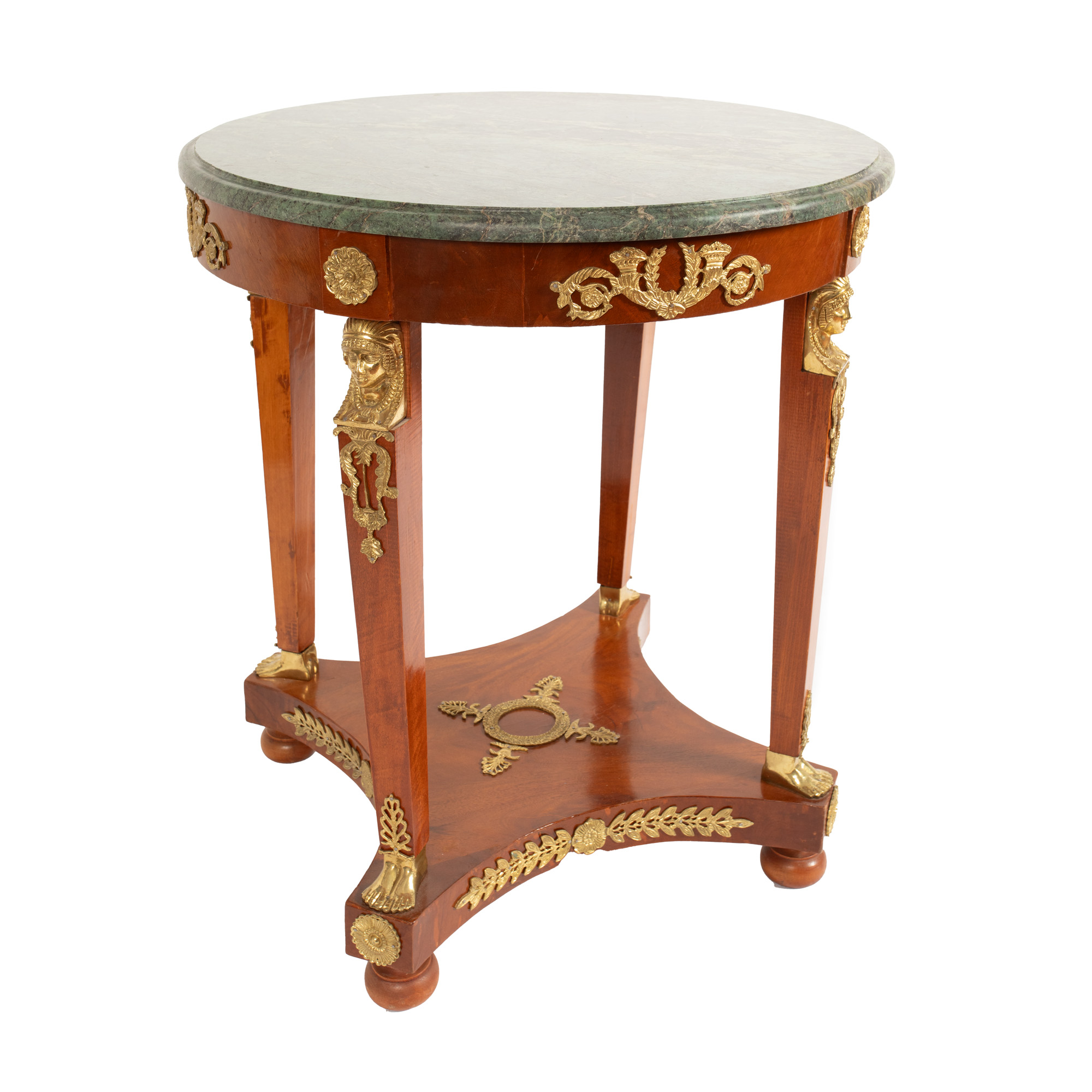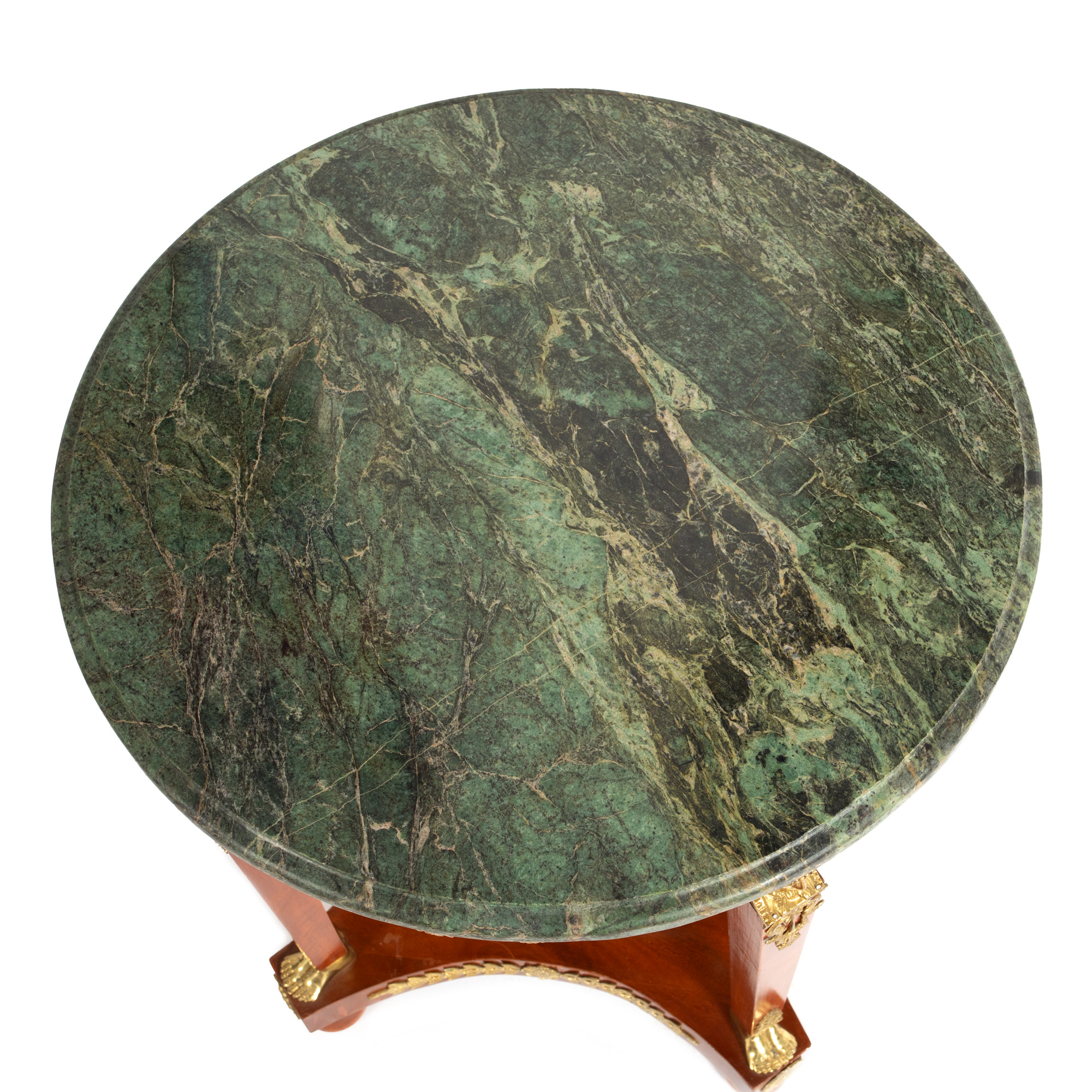 72. Măsuță stil Empire, decorată cu elemente din bronz aurit și blat din marmură verde