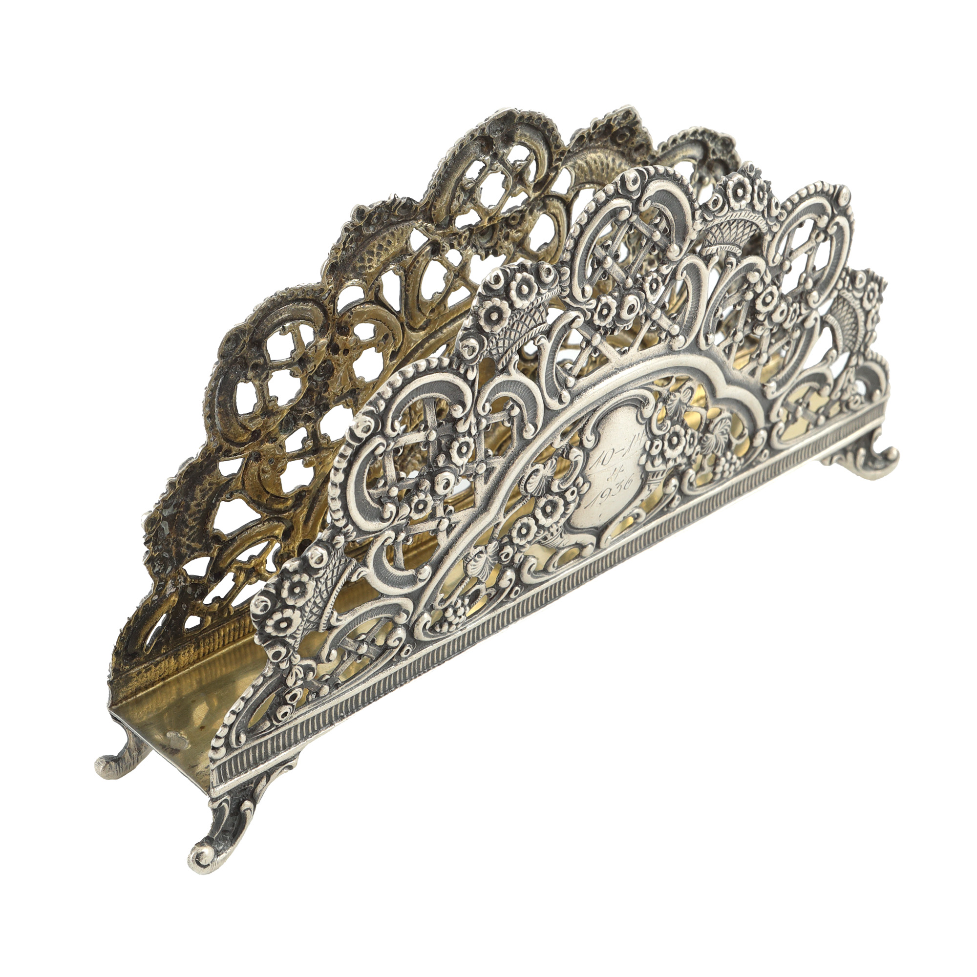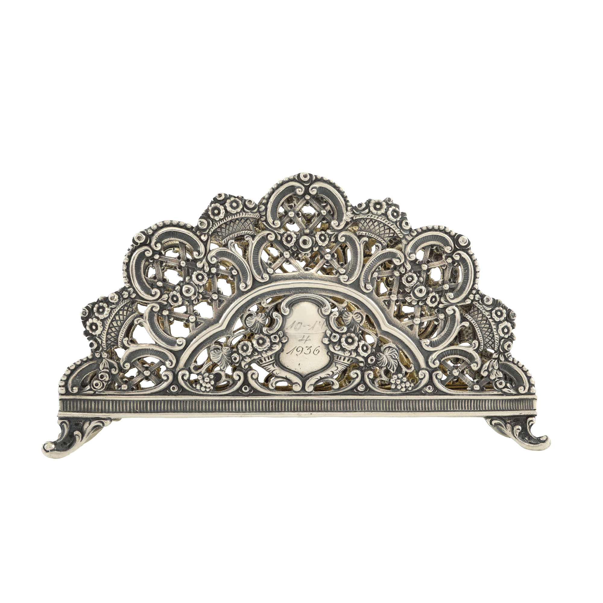 85. Port-șervețel din argint, monogramat și datat 1936