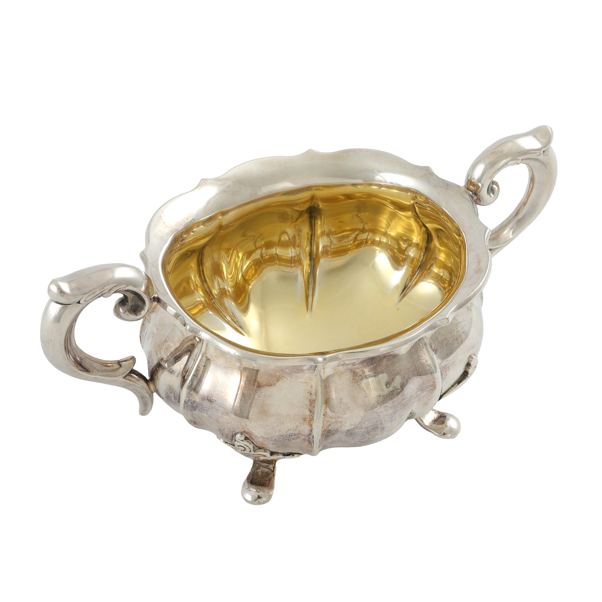115. Set format din letieră și zaharniță, din argint, cu interior aurit, cca. 1900