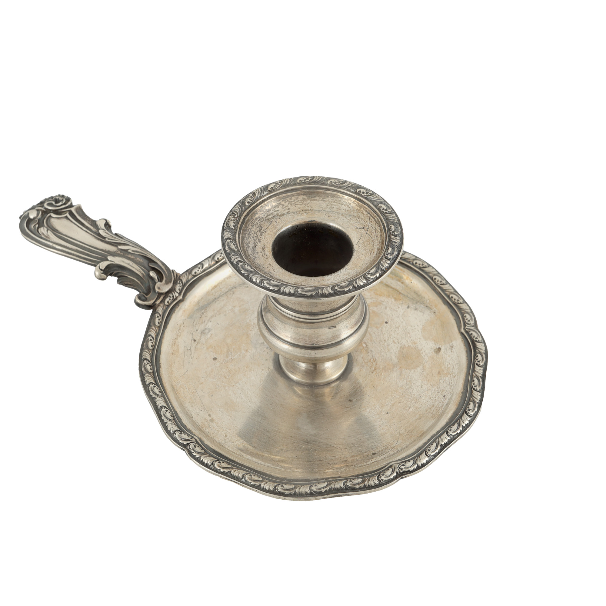 121. Sfeșnic din argint, semnat A. Risler & Carré, cca. 1880, provine din colecția Marinei Dimitropoulos
