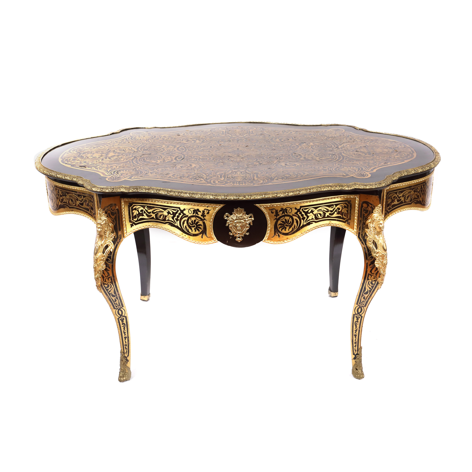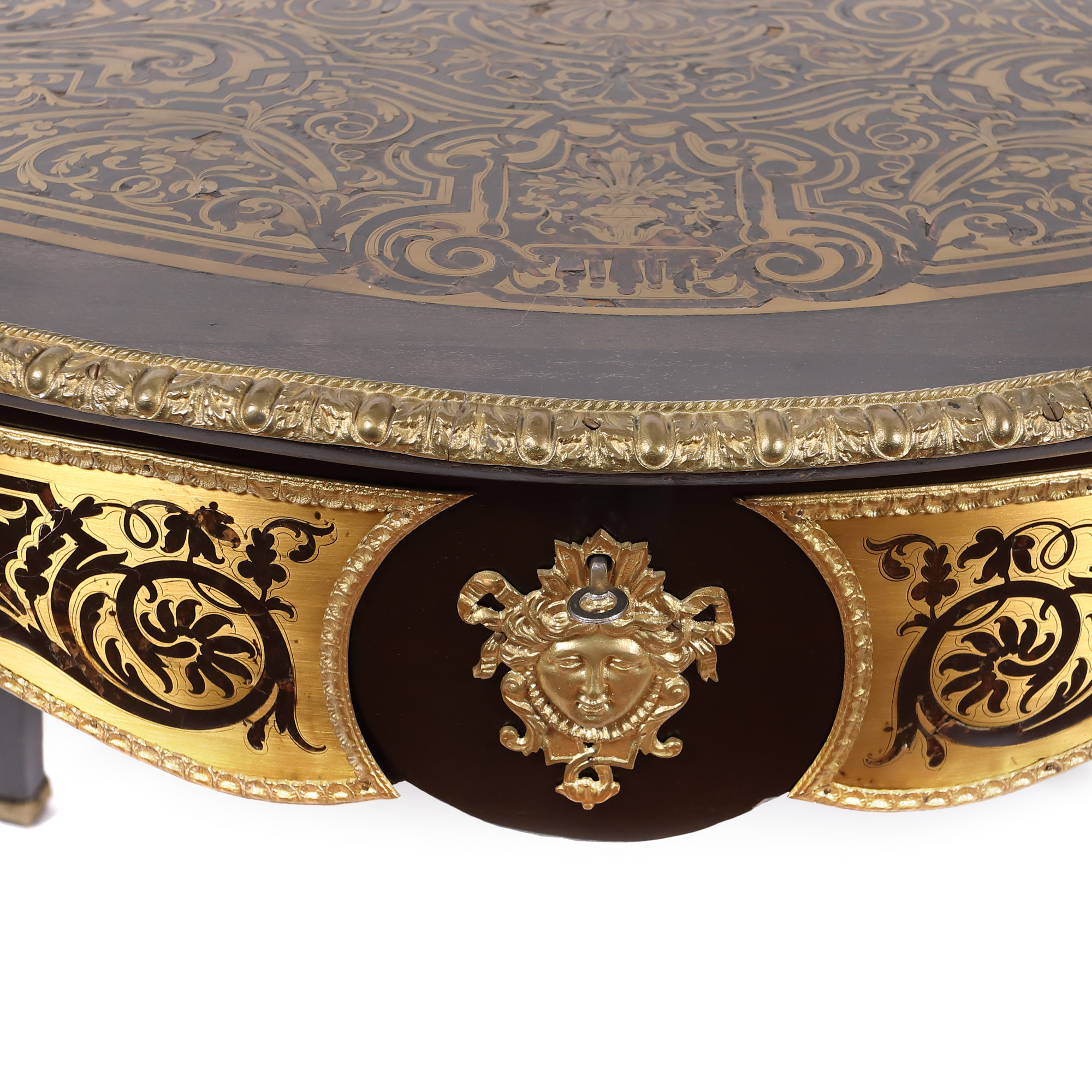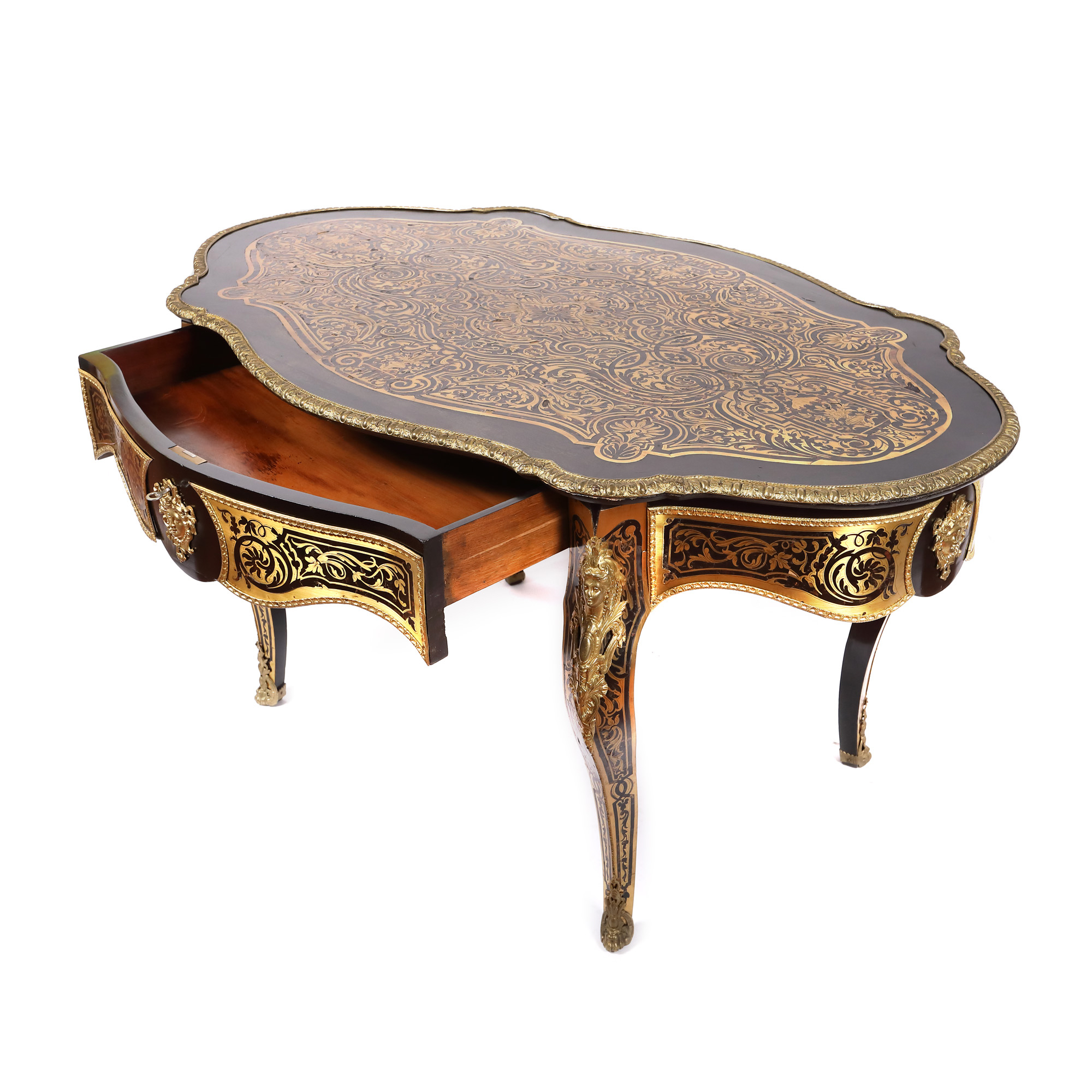 137. Birou în manieră Napoleon III, cu marchetărie tip Boulle, sfârșit de sec. XIX