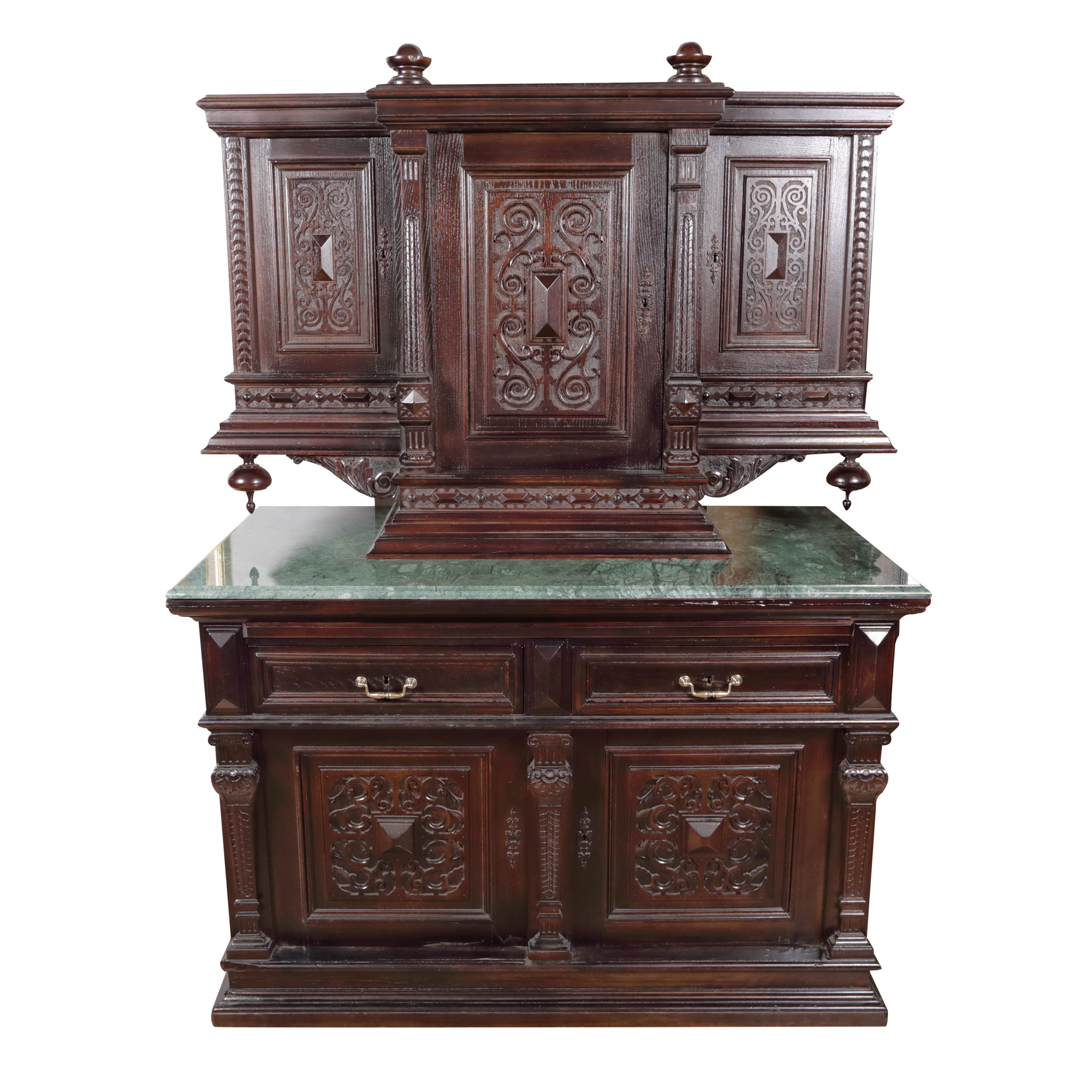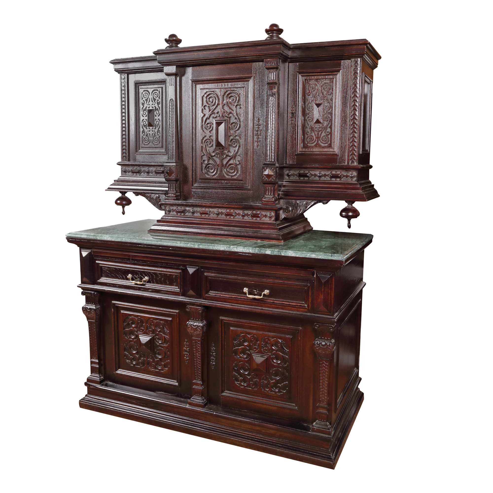 89. Bufet în manieră Neo-Renascentistă, decorat cu vrejuri vegetale sculptate și blat din marmură, cca. 1880