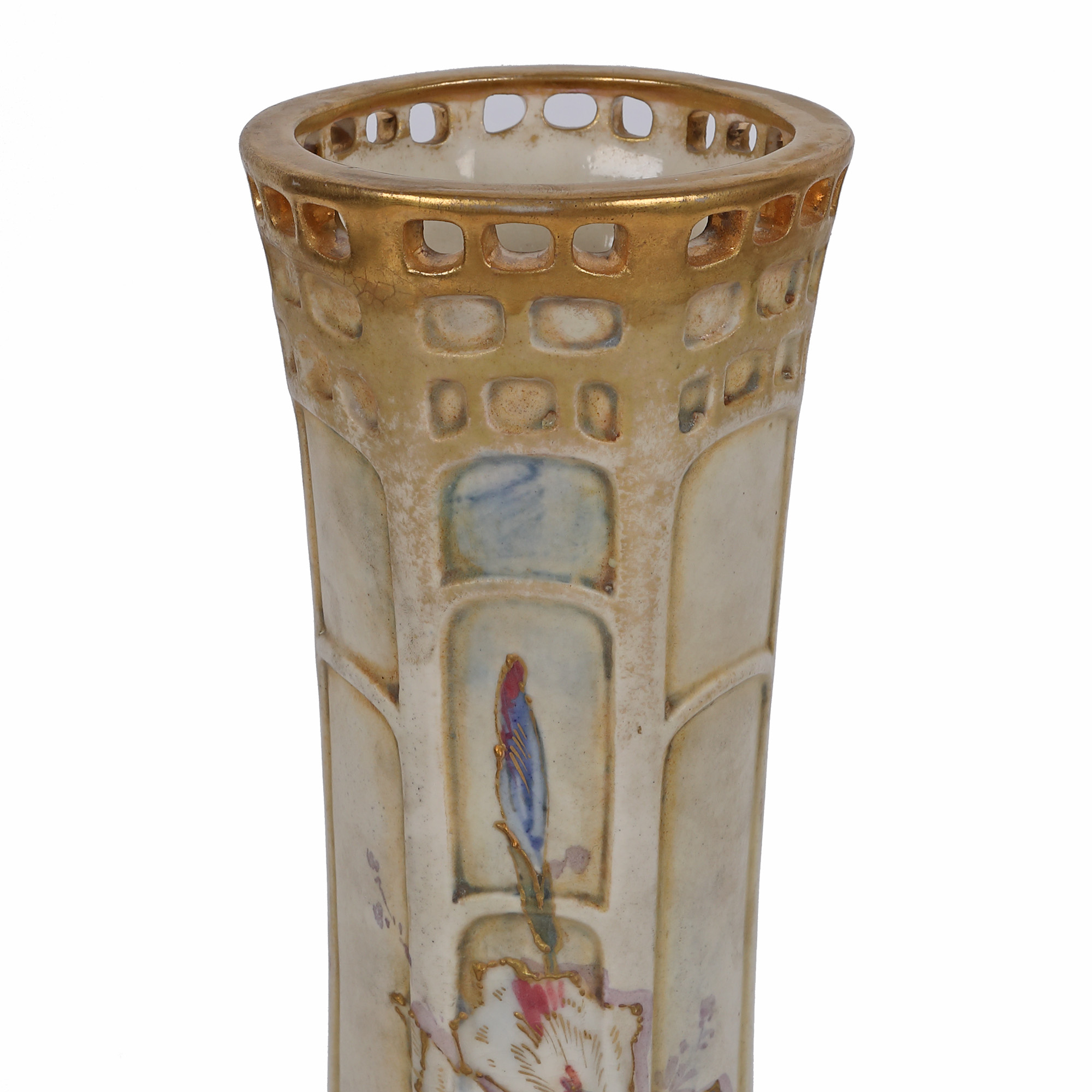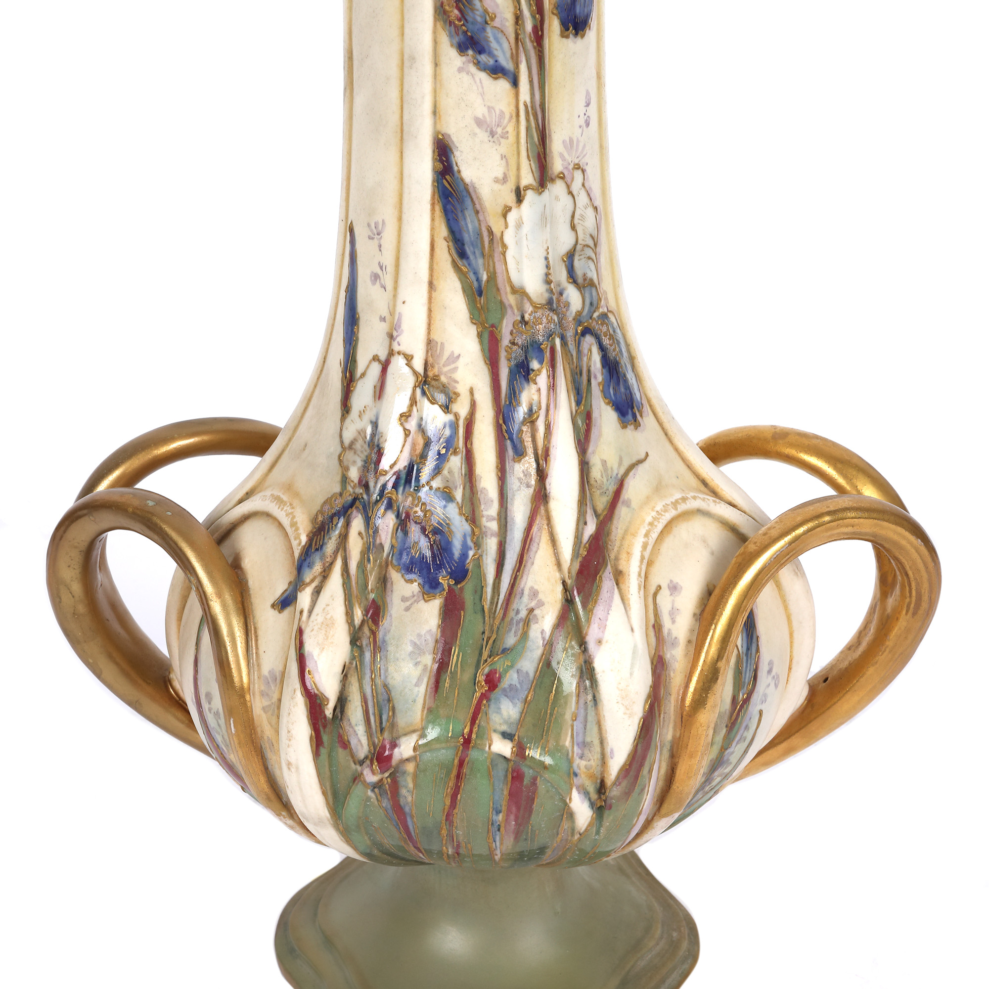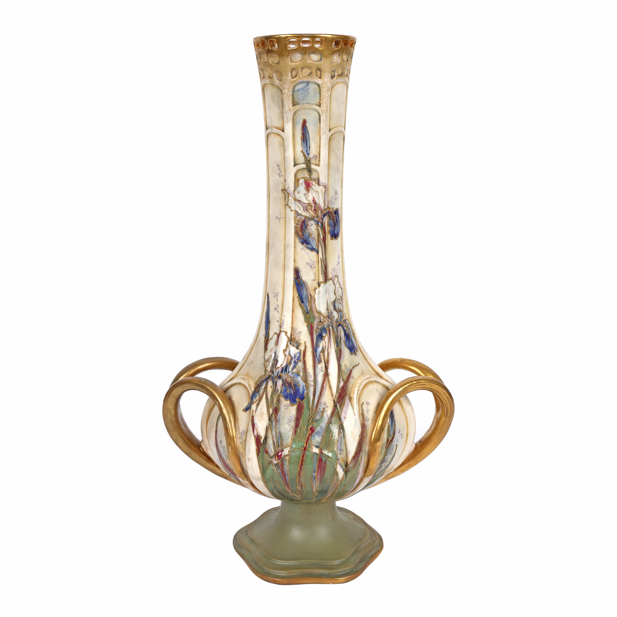 149. Excepțional vas Paul Dachsel din porțelan, în stil Art Nouveau, decorat cu flori de iris, cca. 1900-1910, piesă rară, de colecție