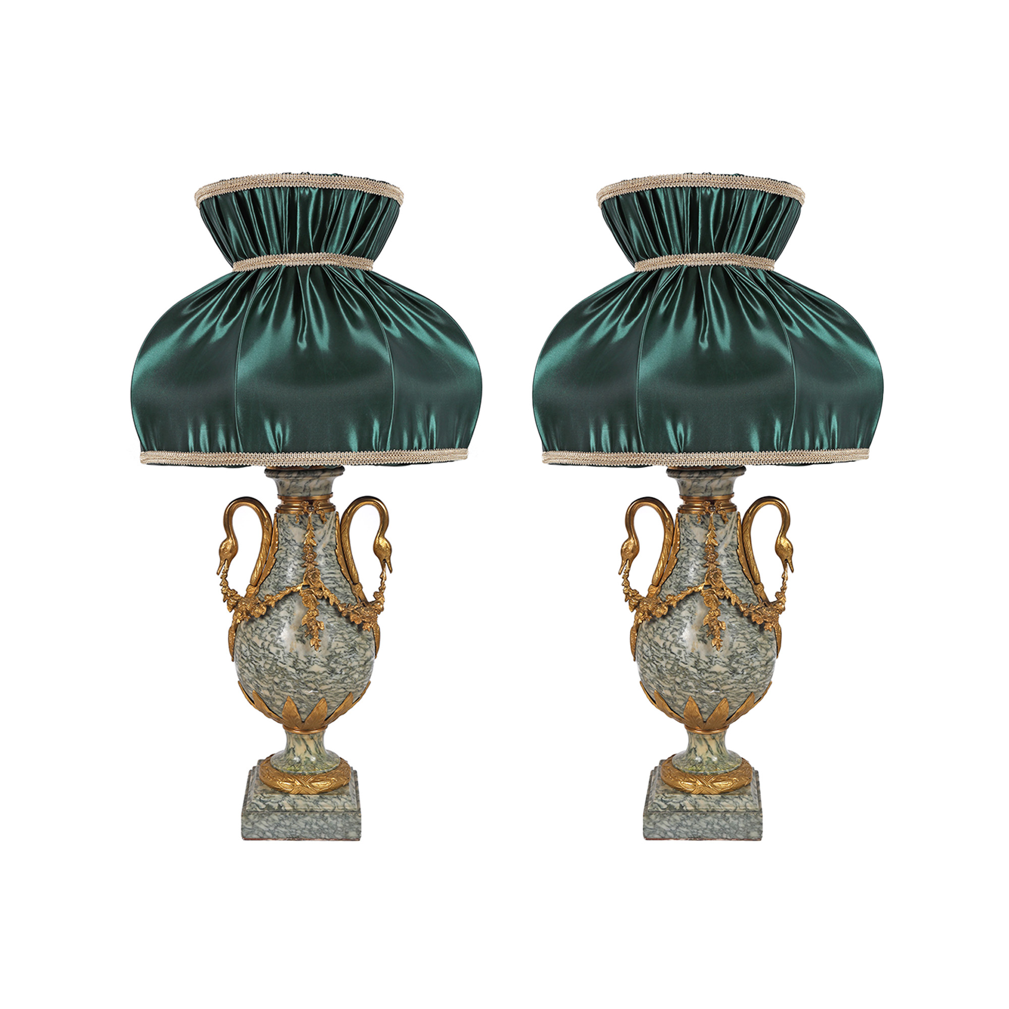 154. Excepțională pereche de lămpi din marmură în manieră Empire, sfârșitul sec. XIX
