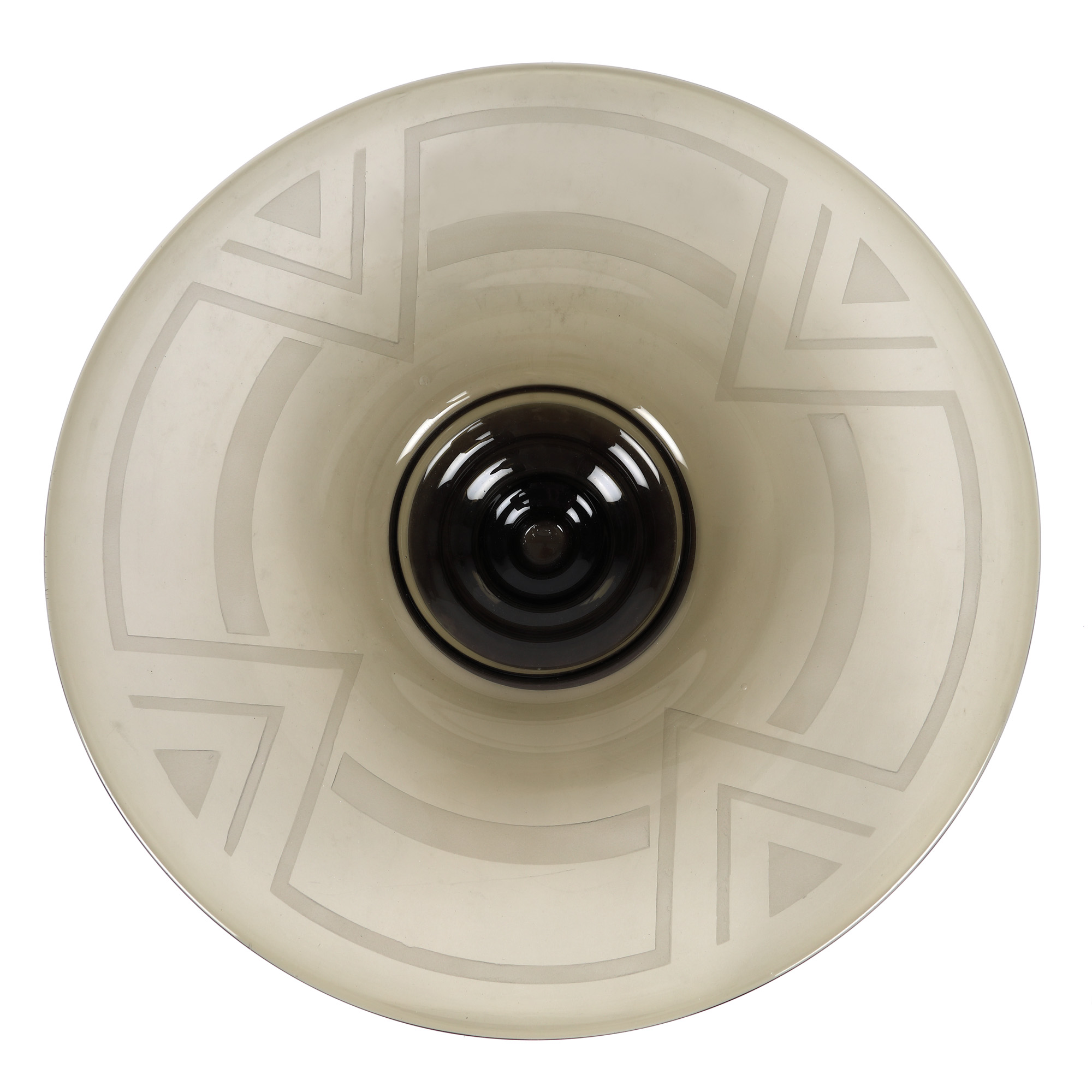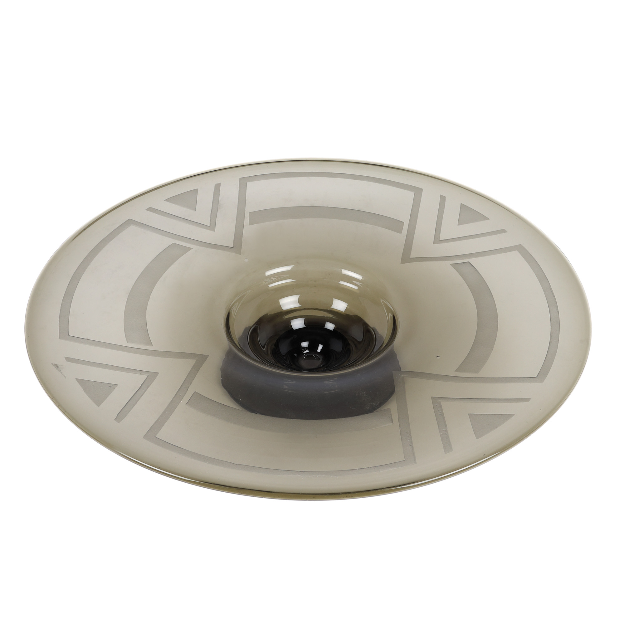 132. Fructieră André Delatte cu picior, în stil Art Deco, din cristal fumuriu, cca. 1920-1930