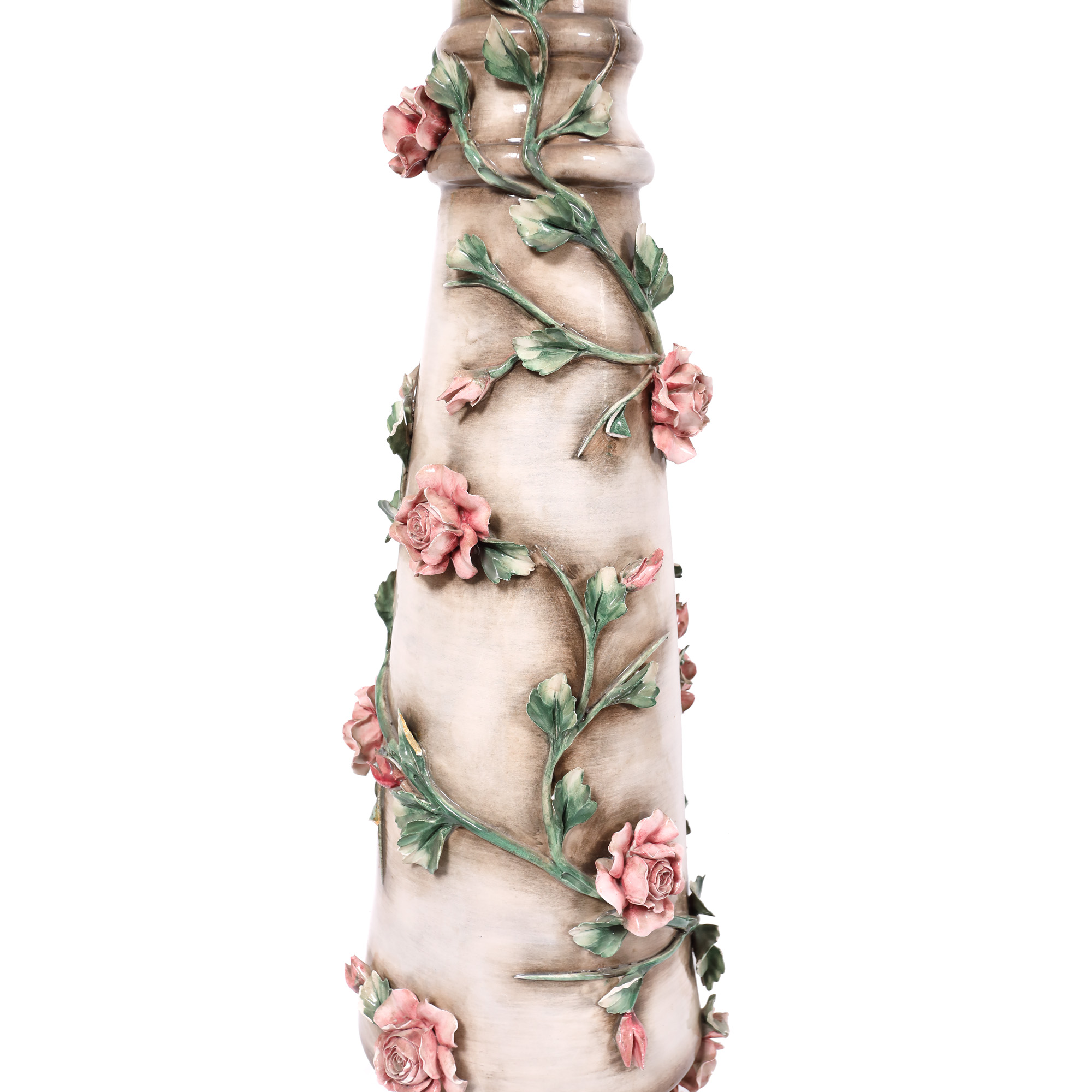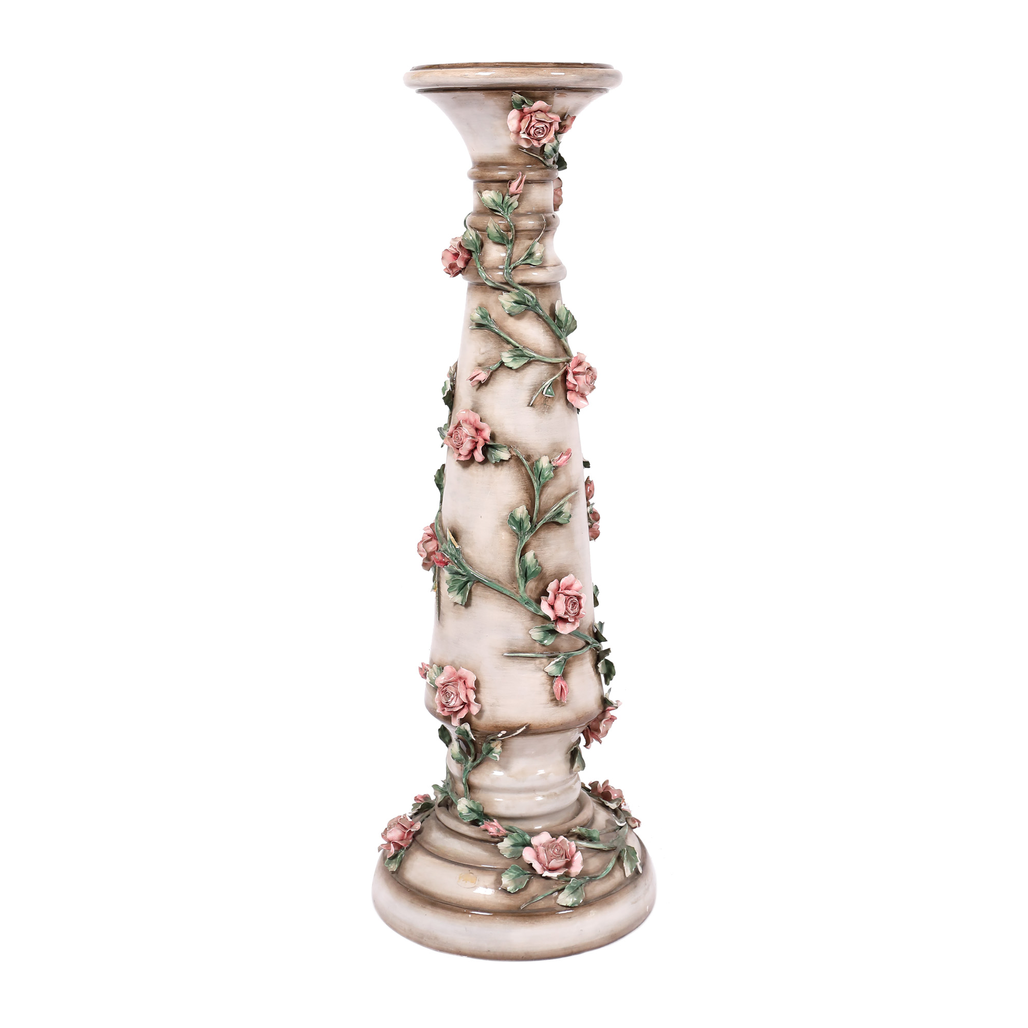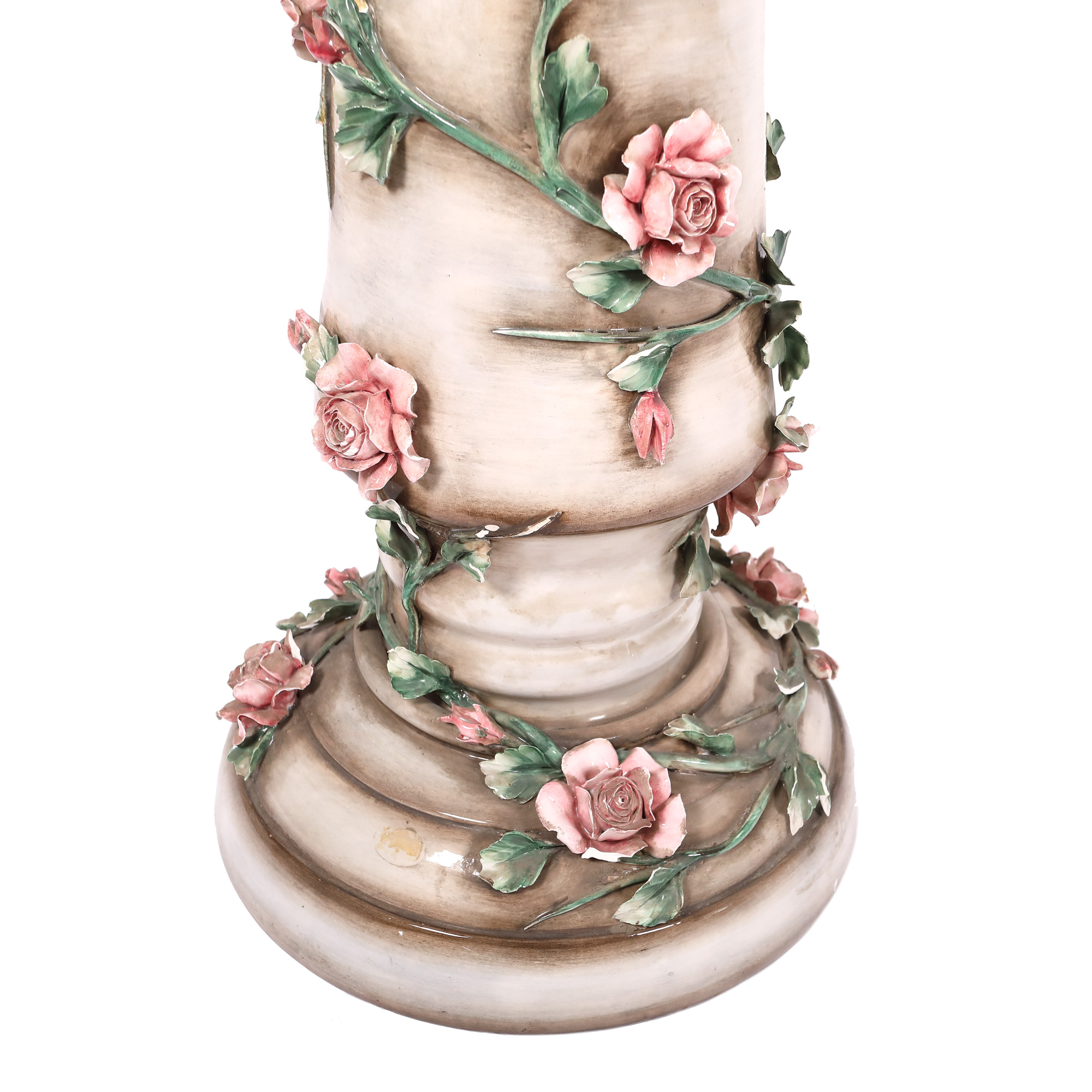 112. Jardinieră-piedestal din faianță, decorată cu ghirlandă de trandafiri, început de sec. XX