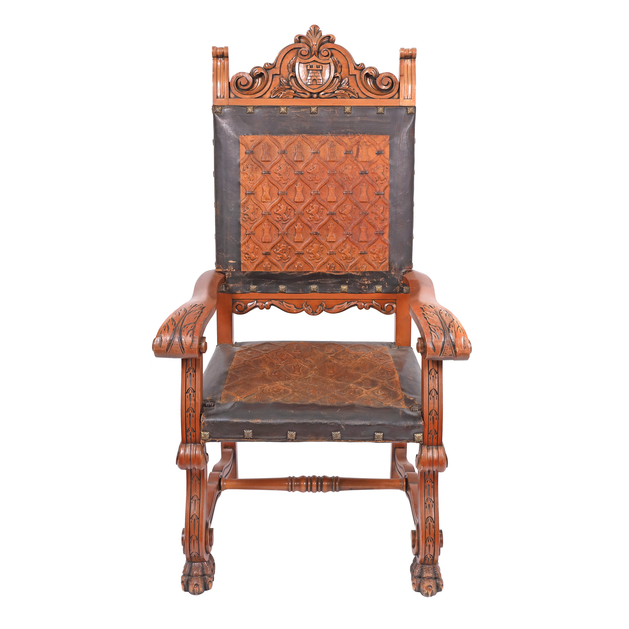 98. Jilț în manieră Historistă decorat cu blazoane nobiliare, sfârșitul sec. XIX