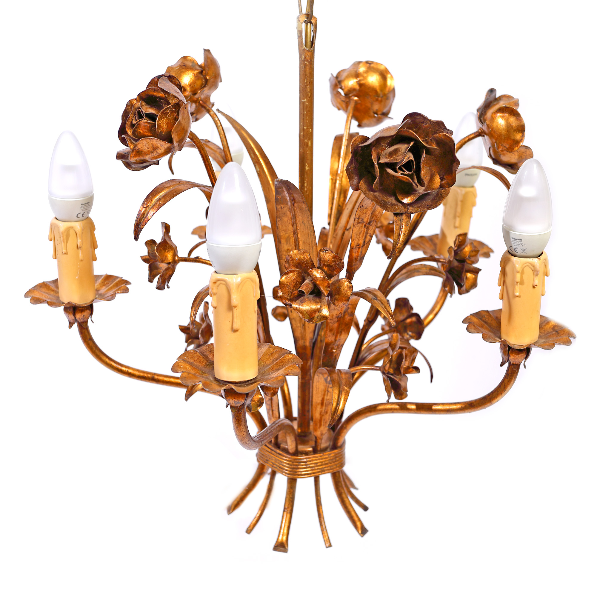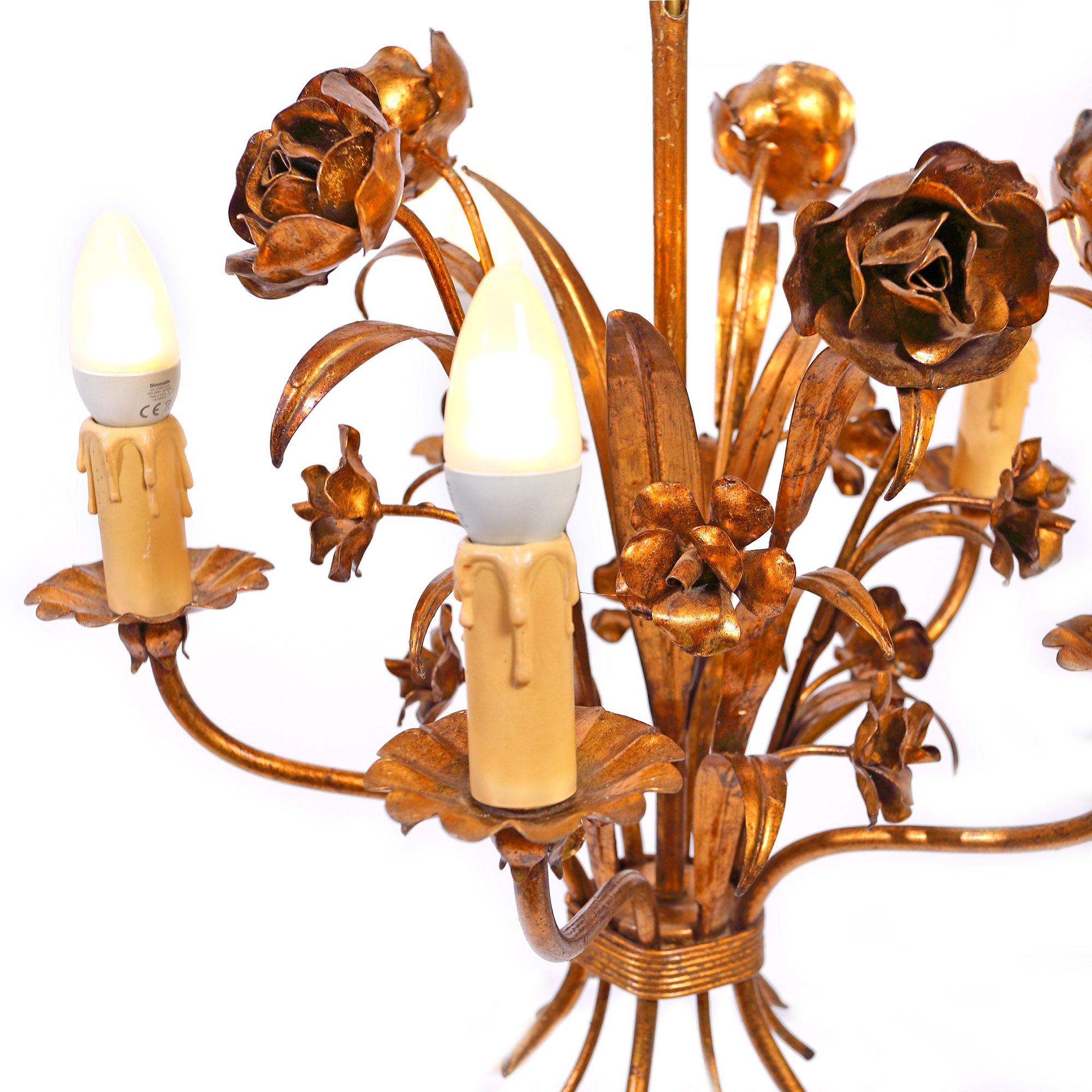 165. Lustră Hans Kögl în stil Mid-Century, din alamă, decorată cu flori de trandafiri [Cca. 1950]
