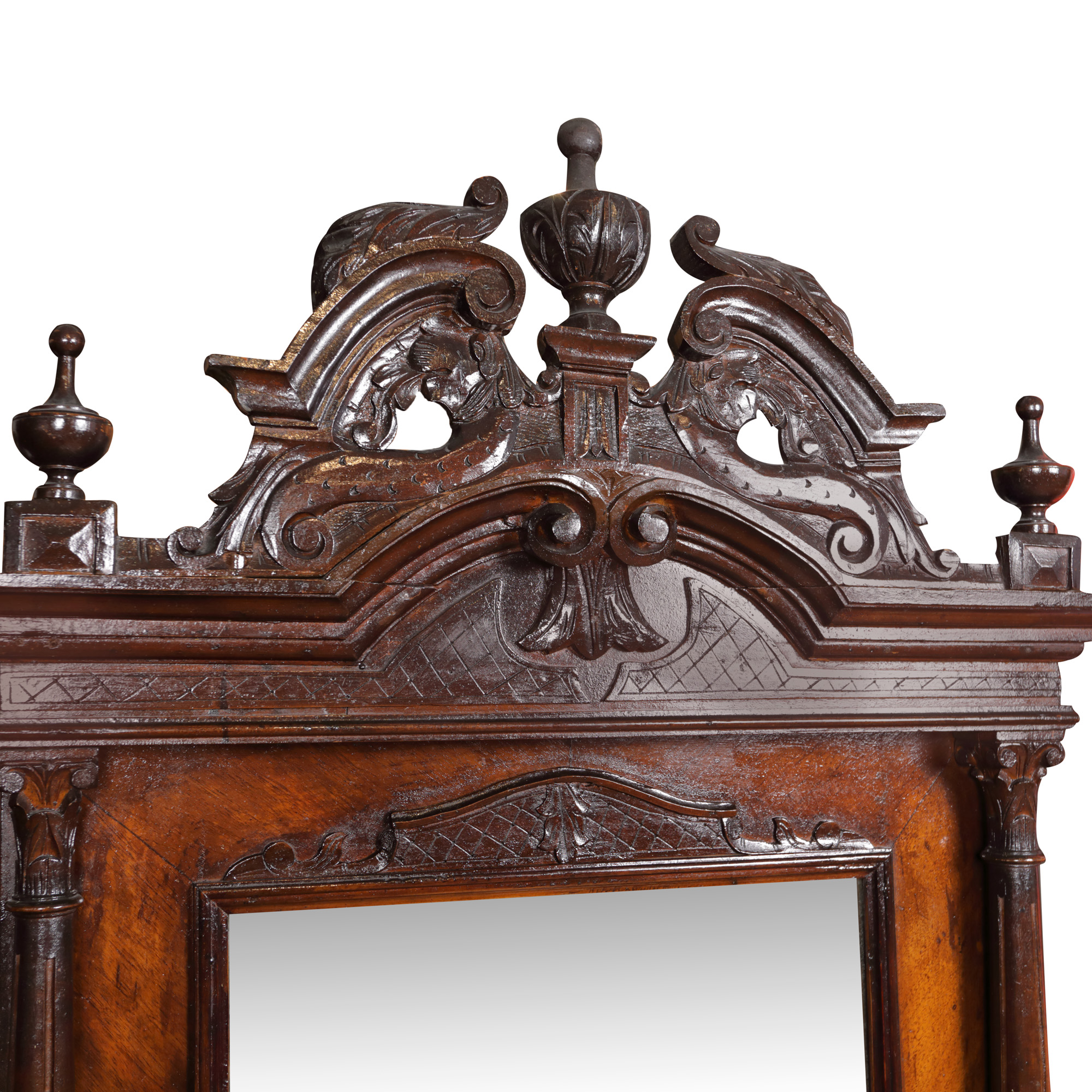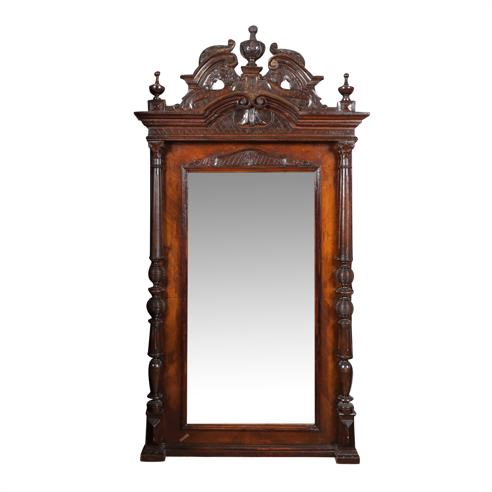 88. Oglindă dreptunghiulară sculptată, fronton supra-înălțat, cu motiv de vrej, în manieră Neo-Renascentistă, sfârșit de sec. XIX