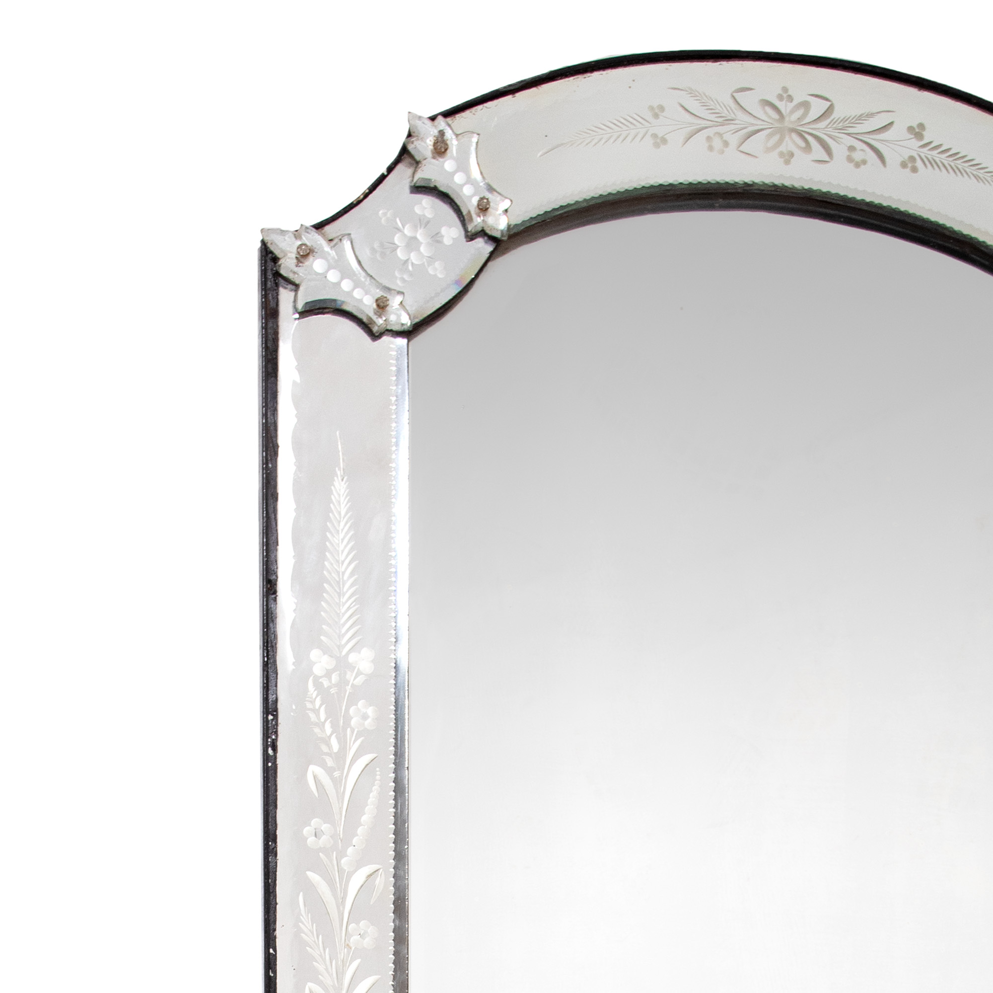 104. Oglindă venețiană din cristal cu decor gravat, prima jumătate a sec. XX