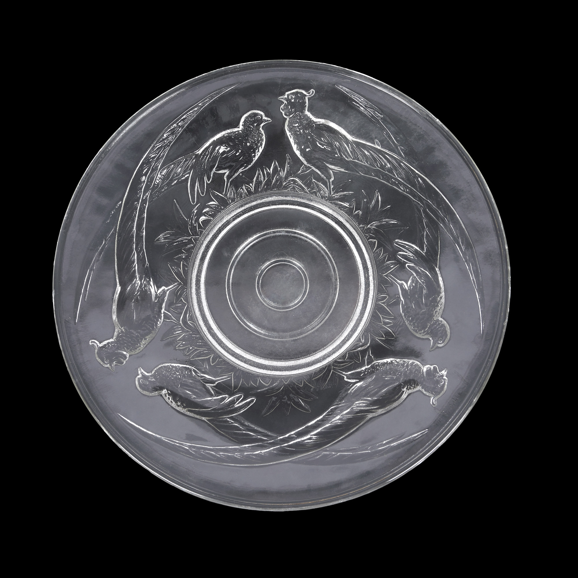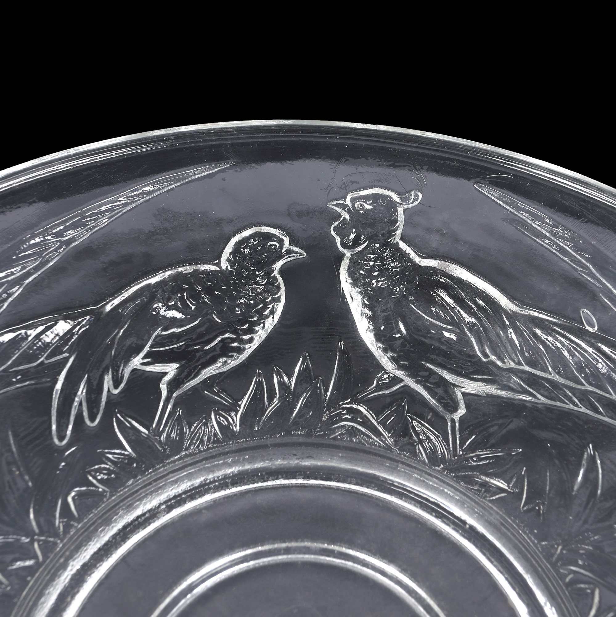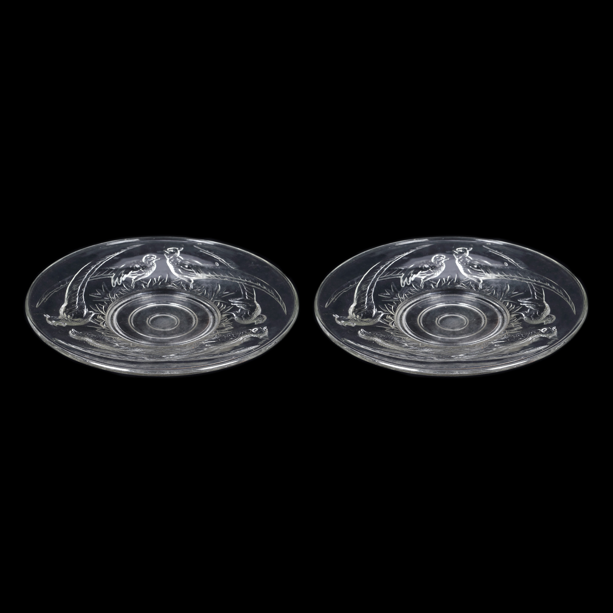 116. Pereche de platouri Art Deco din sticlă Verlux, decorată cu fazani, cca. 1920-1930