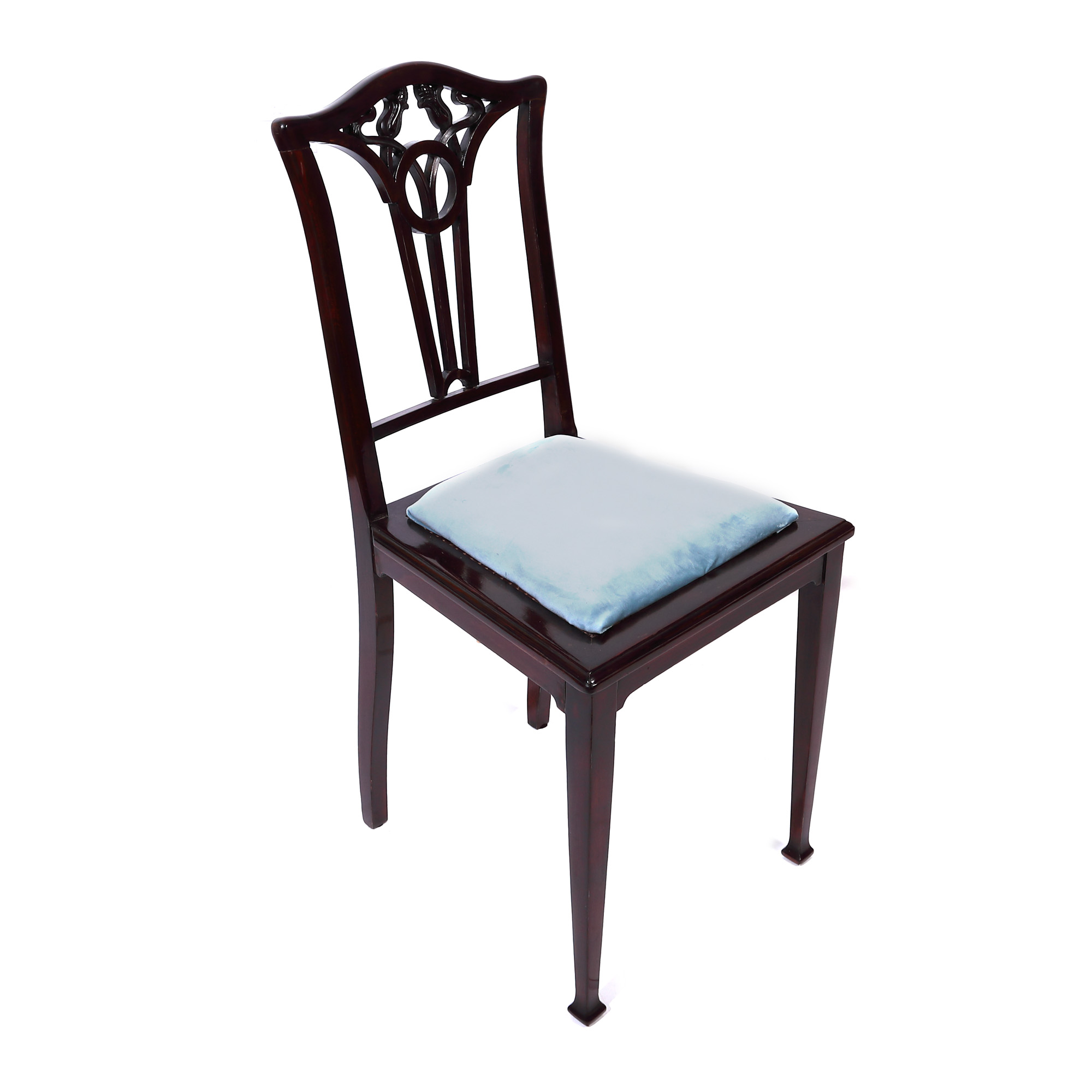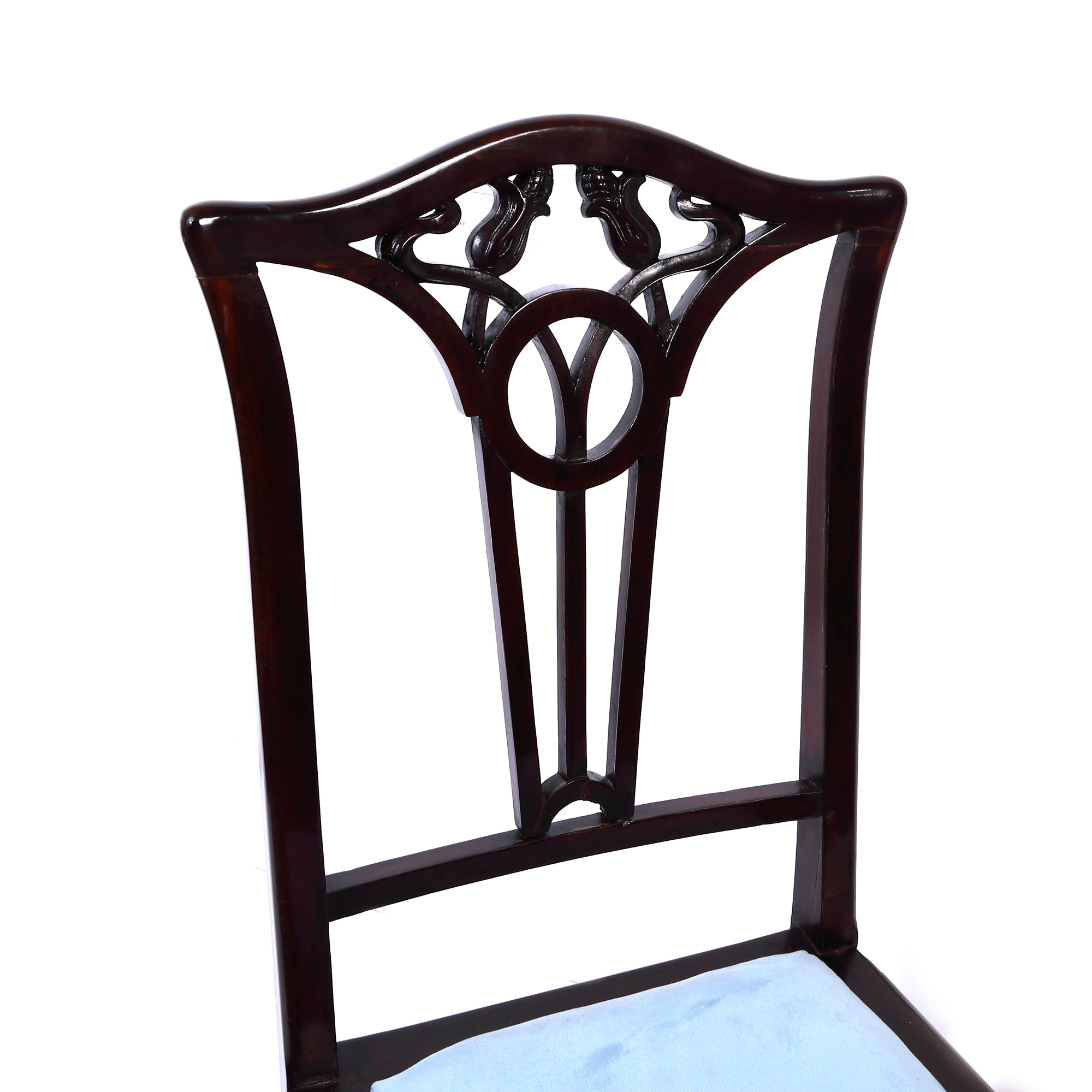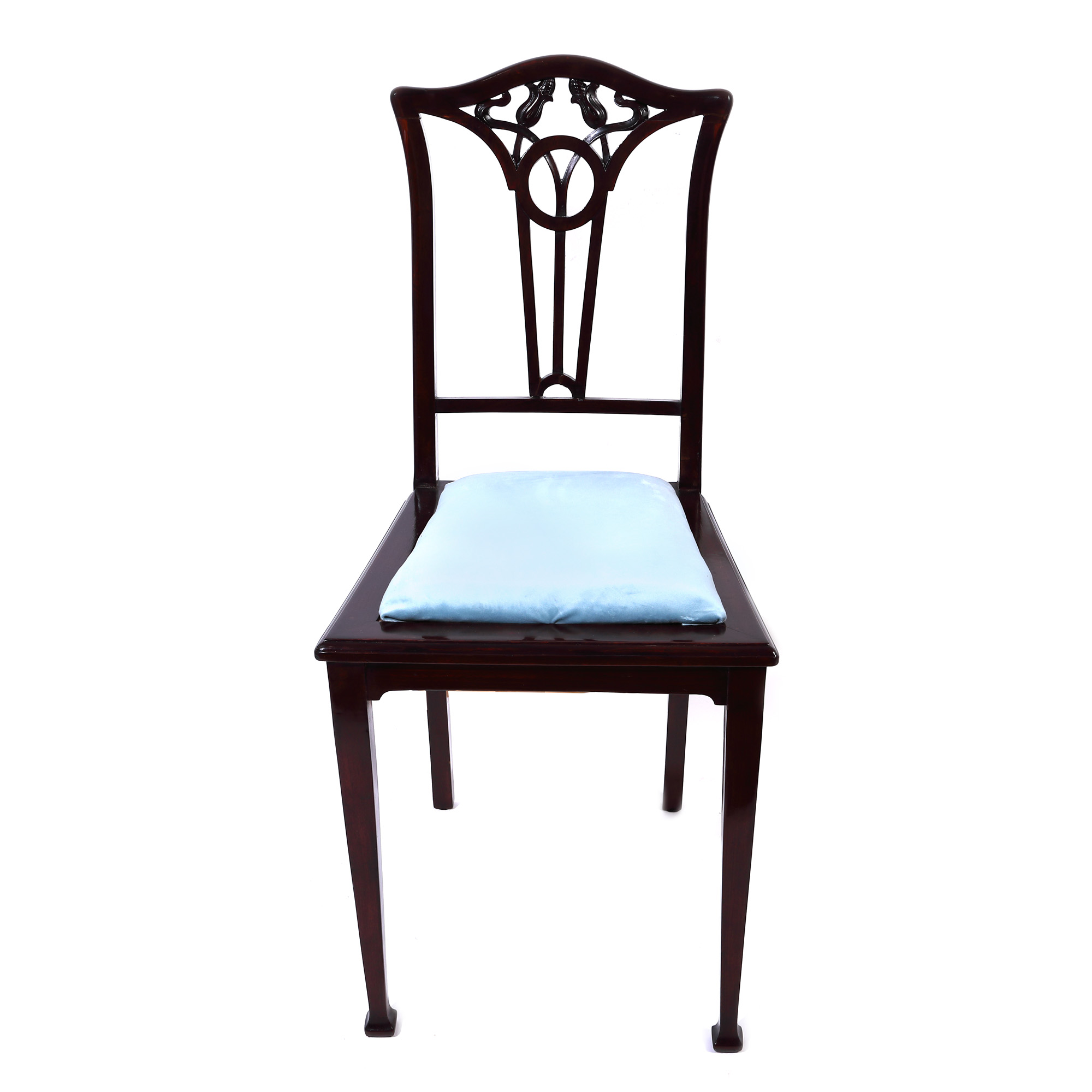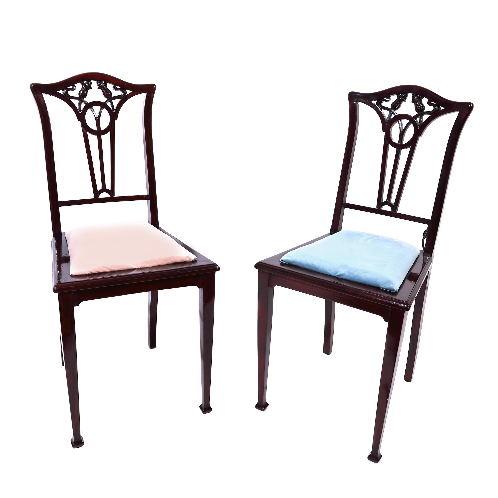71. Pereche de scaune în manieră Chippendale, cu spătar decorat cu flori de iris, începutul sec. XX