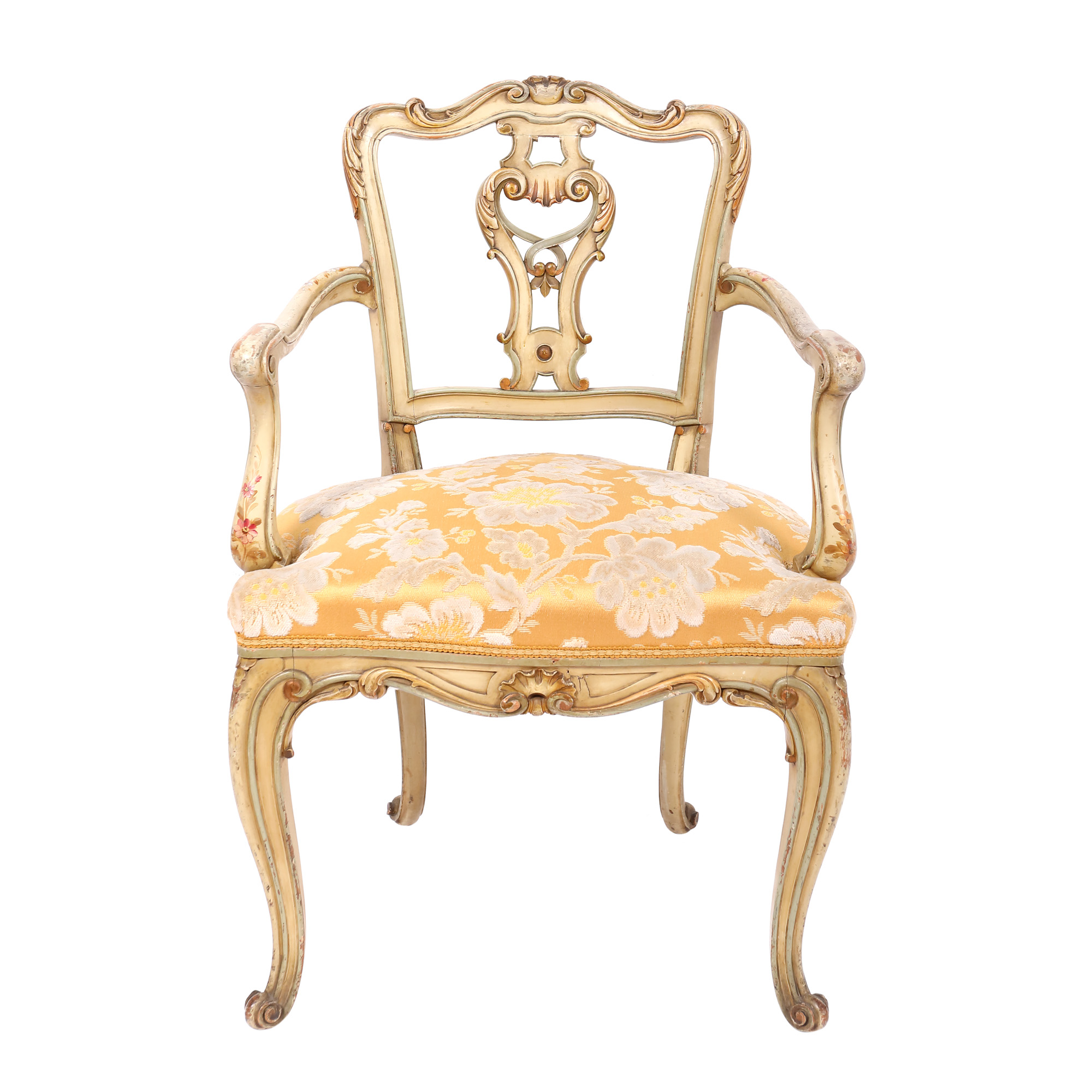 120. Pereche de scaune Neo-Rococo, cu decor floral pictat, prima jumătate a sec. XX