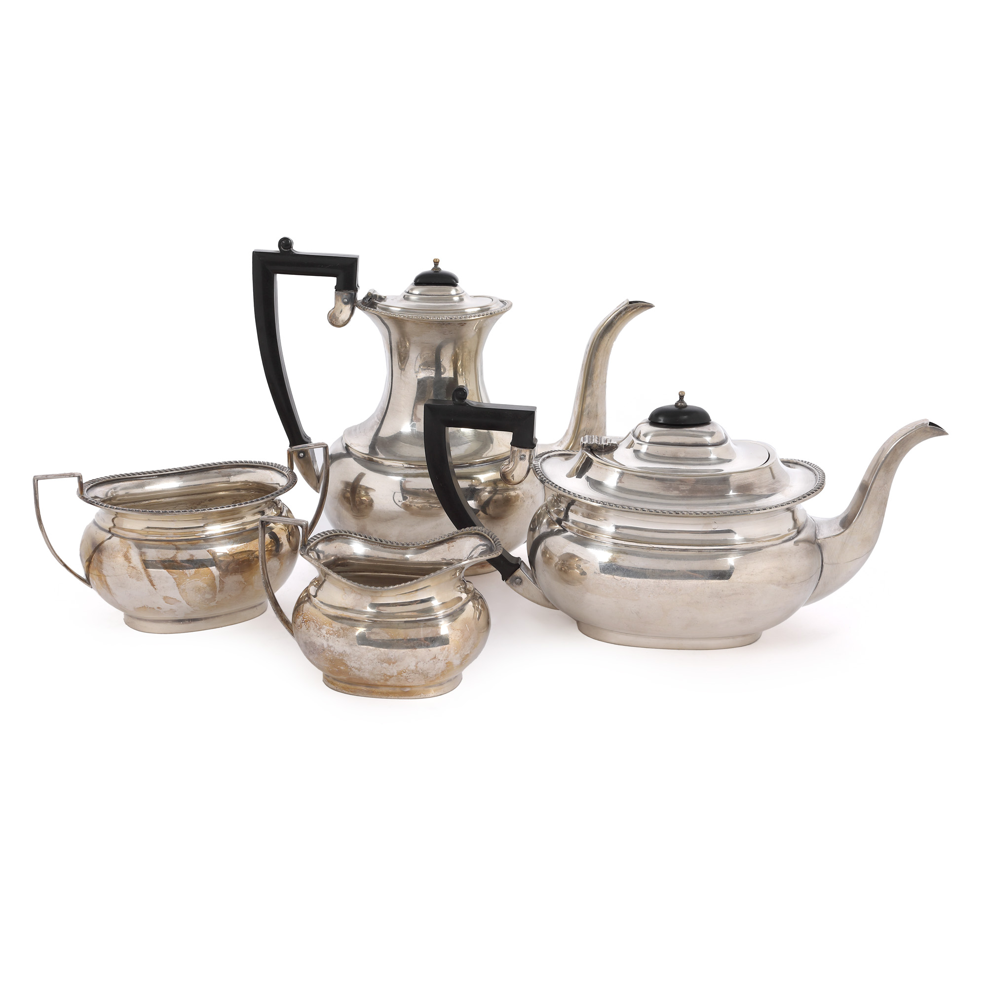 122. Serviciu pentru ceai și cafea din argint, format din cafetieră, ceanic, letieră și zaharniță