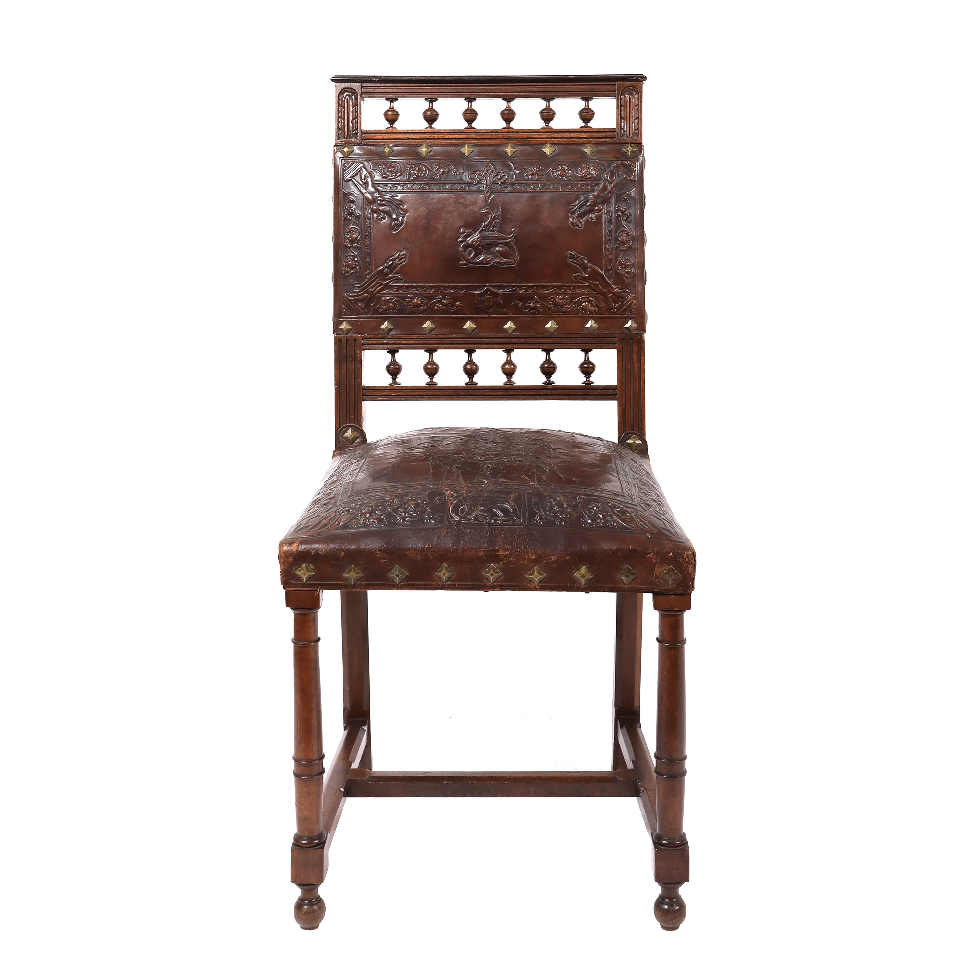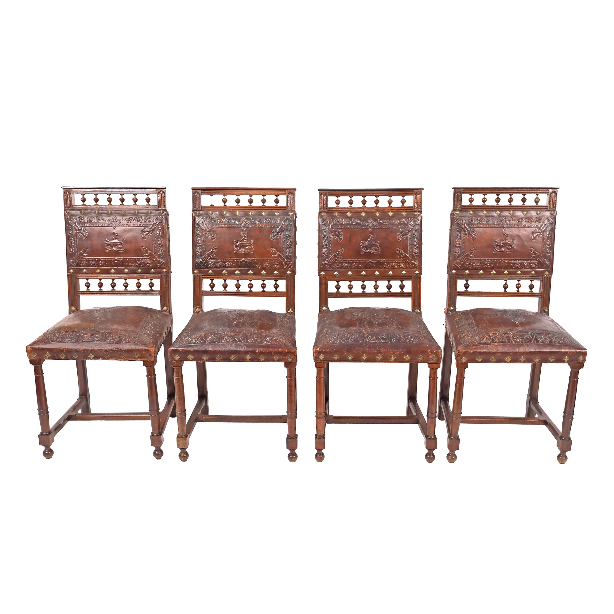 106. Set format din patru scaune în stil Henri II, din lemn de fag și piele, cca. 1880