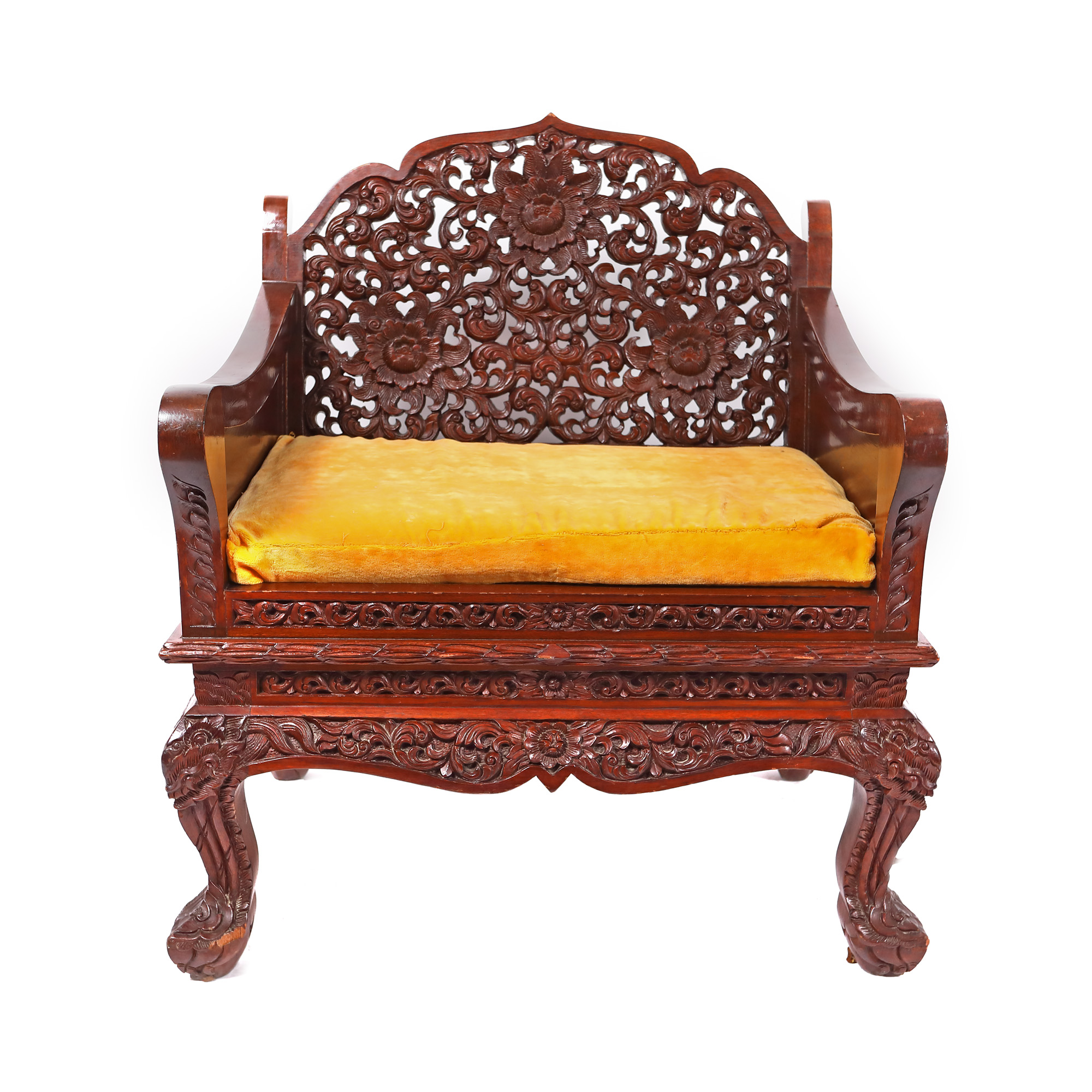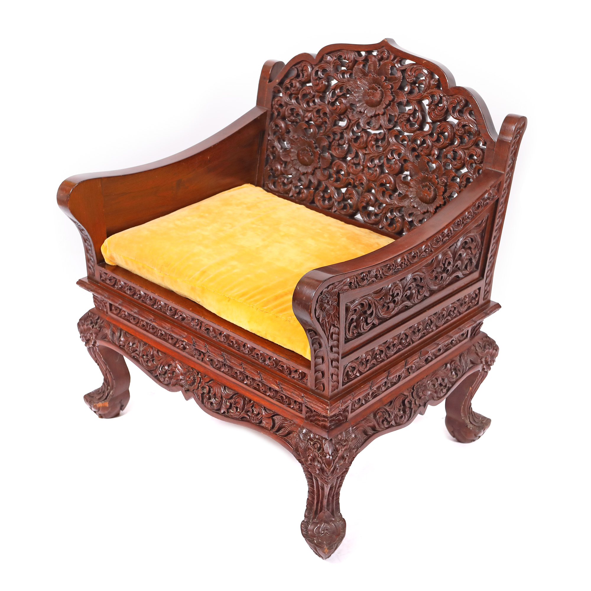 190. Set format din pereche de fotolii și masă de cafea, decorat cu motive florale bogat sculptate, început de sec. XX