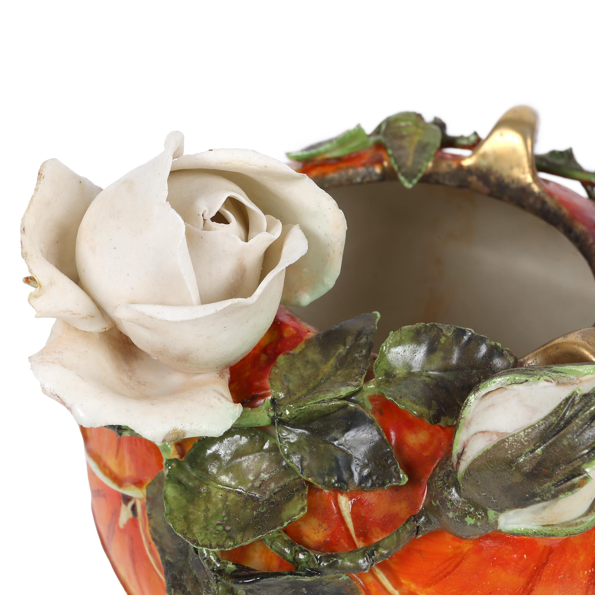 148. Vas Art Nouveau din ceramică Ernst Wahliss Co., design Paul Dachsel, decorat cu flori de trandafir, cca. 1911