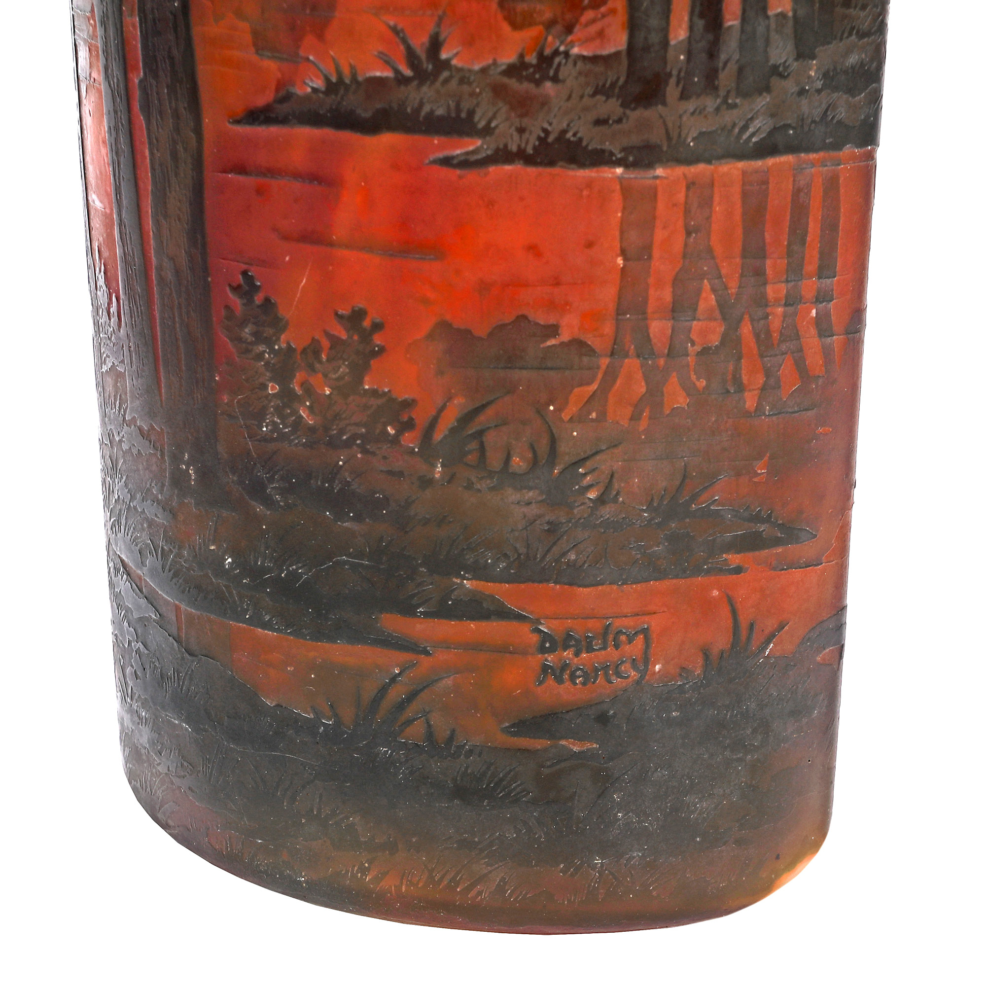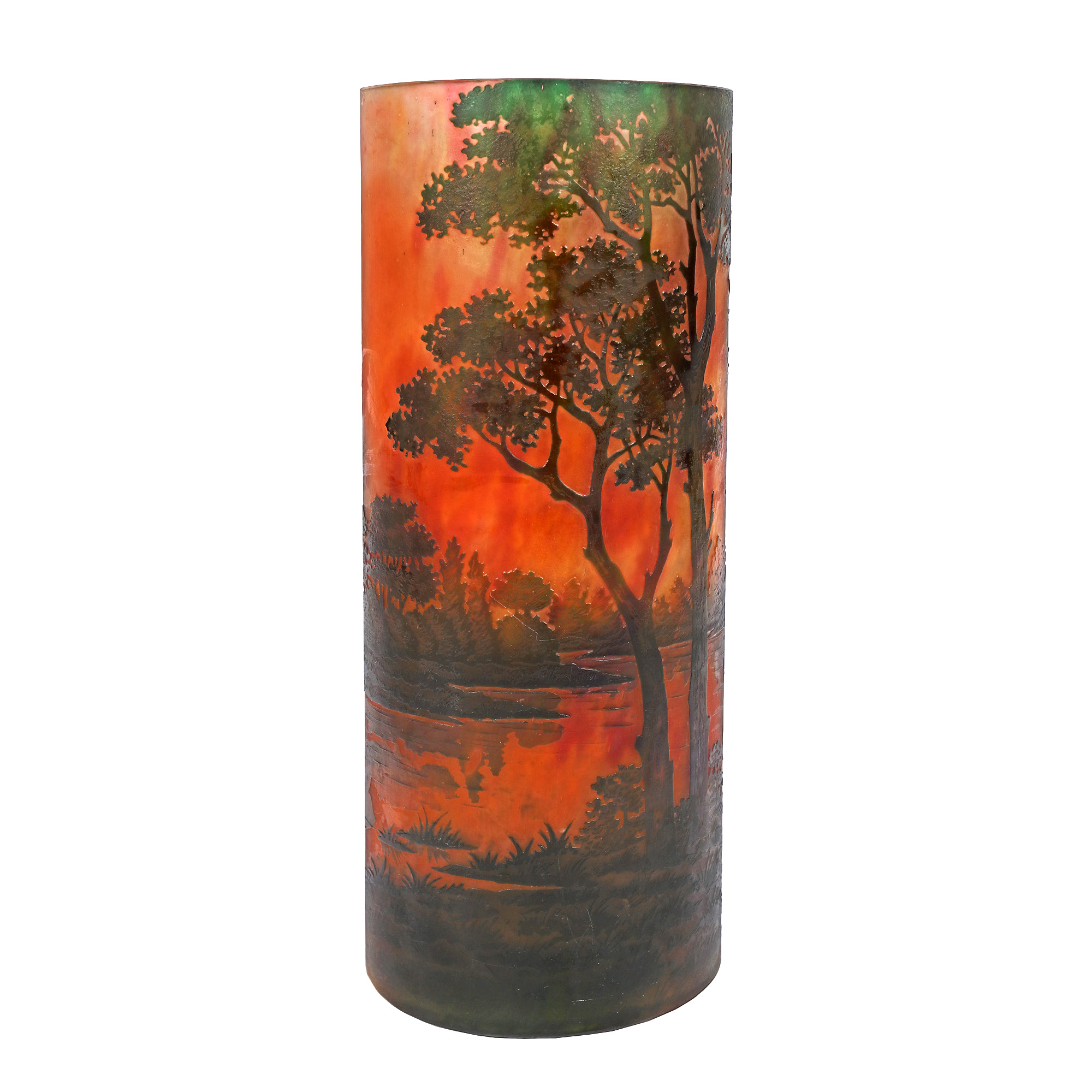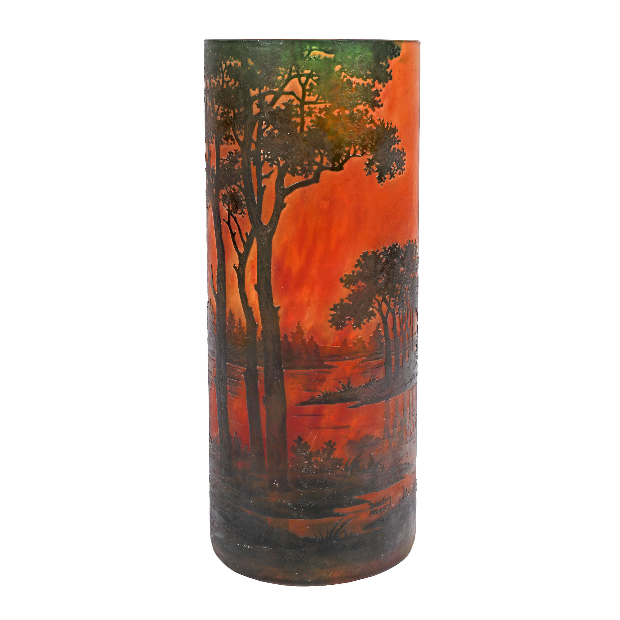 77. Vază Daum Nancy, decorată cu peisaj lacustru la răsărit, cca. 1910