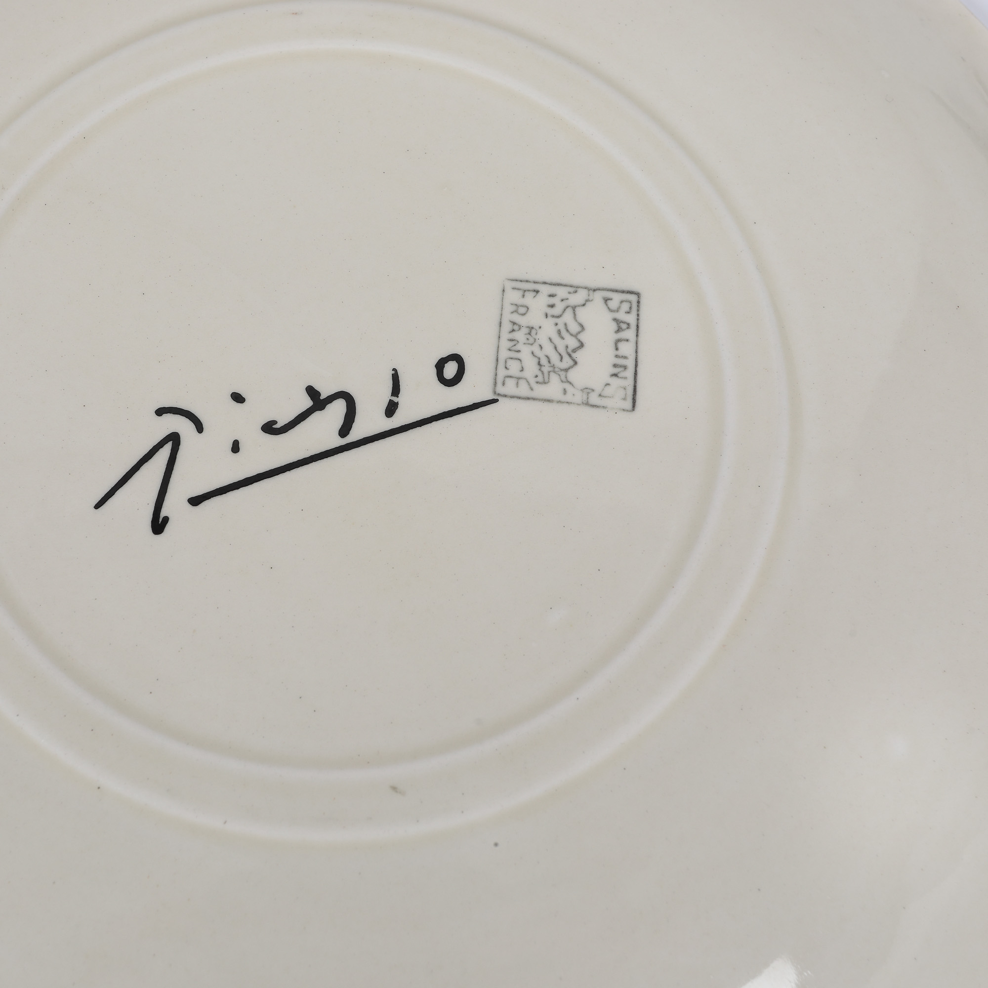 semnat pe verso, cu negru, ”Picasso”; pe verso, ștampila, ”Salins France”
