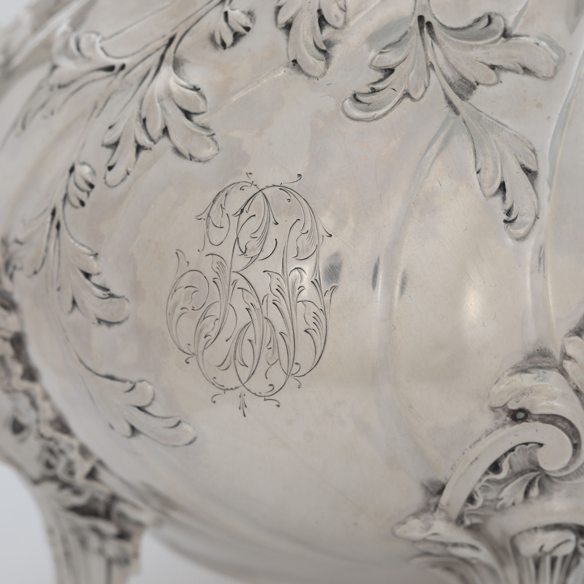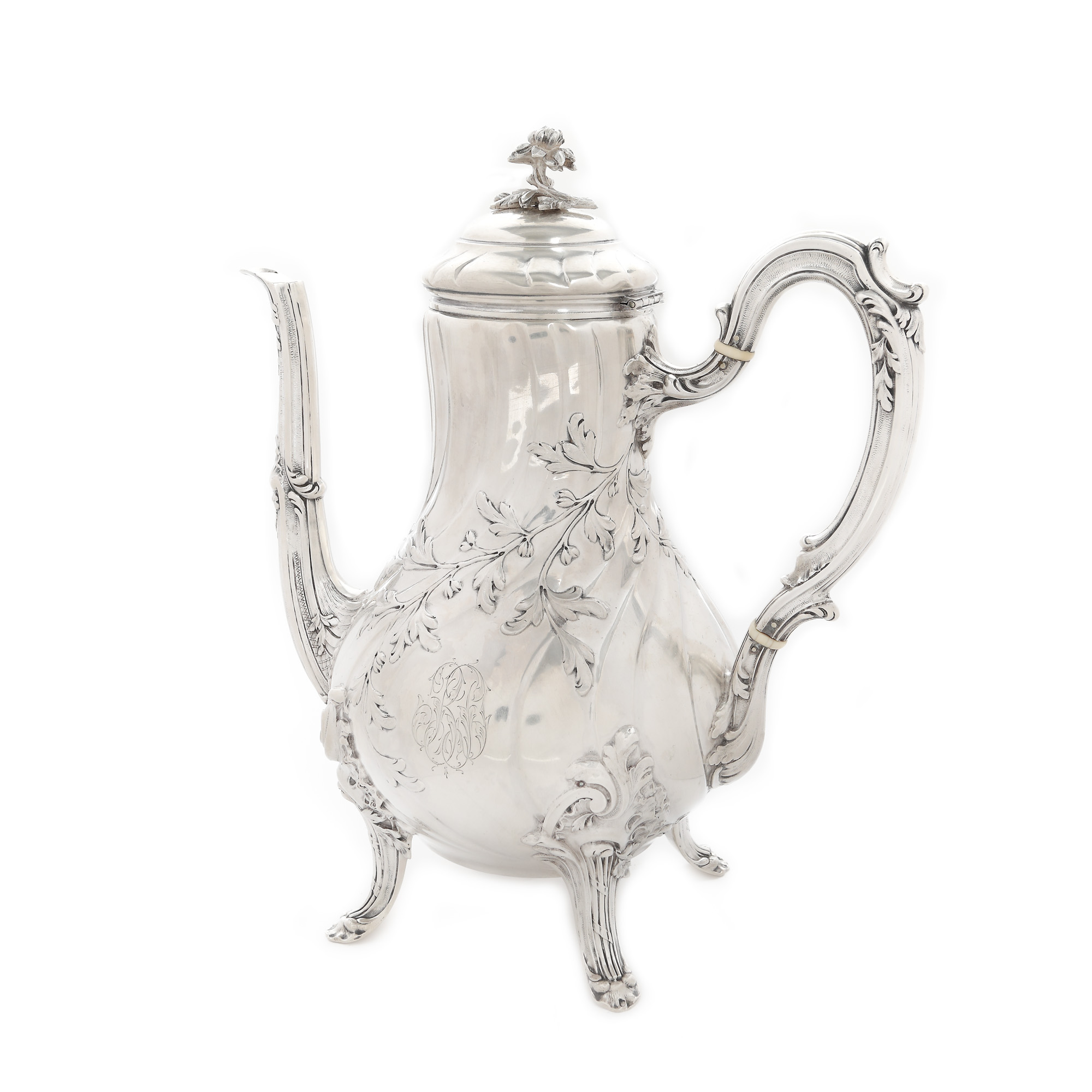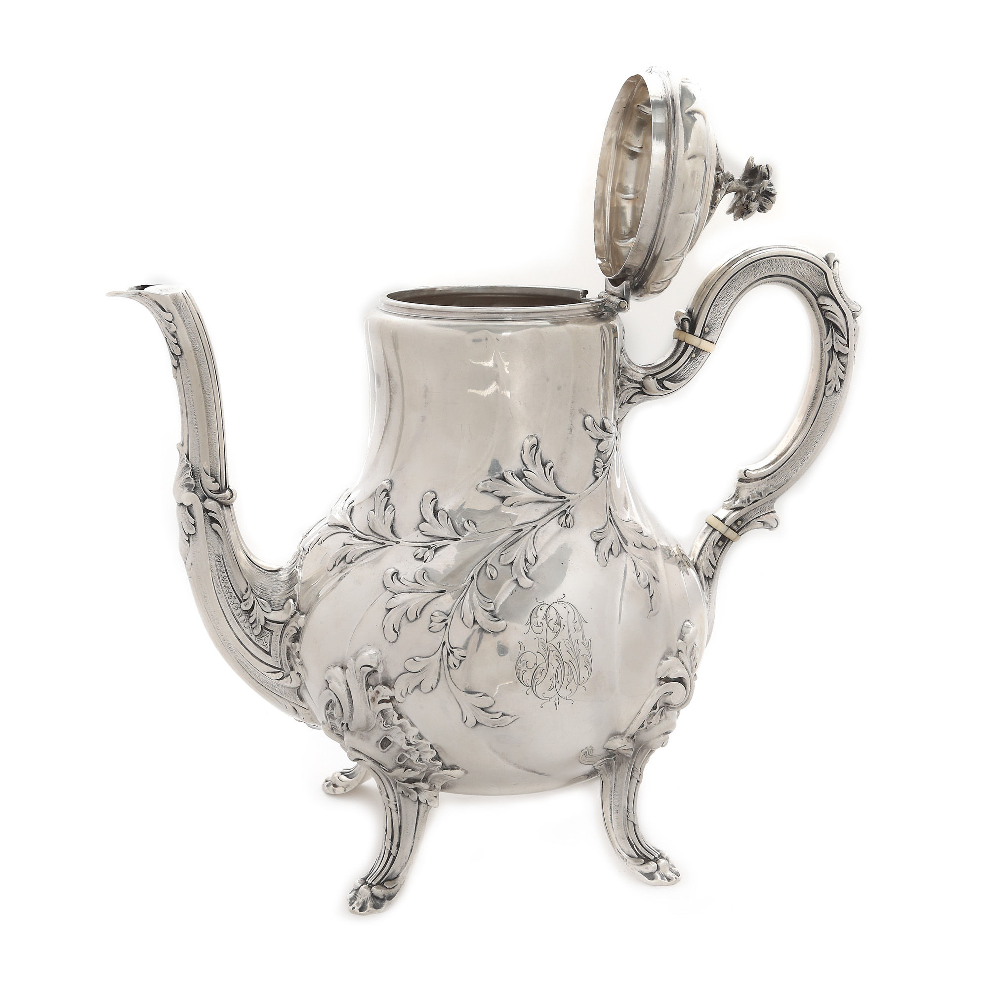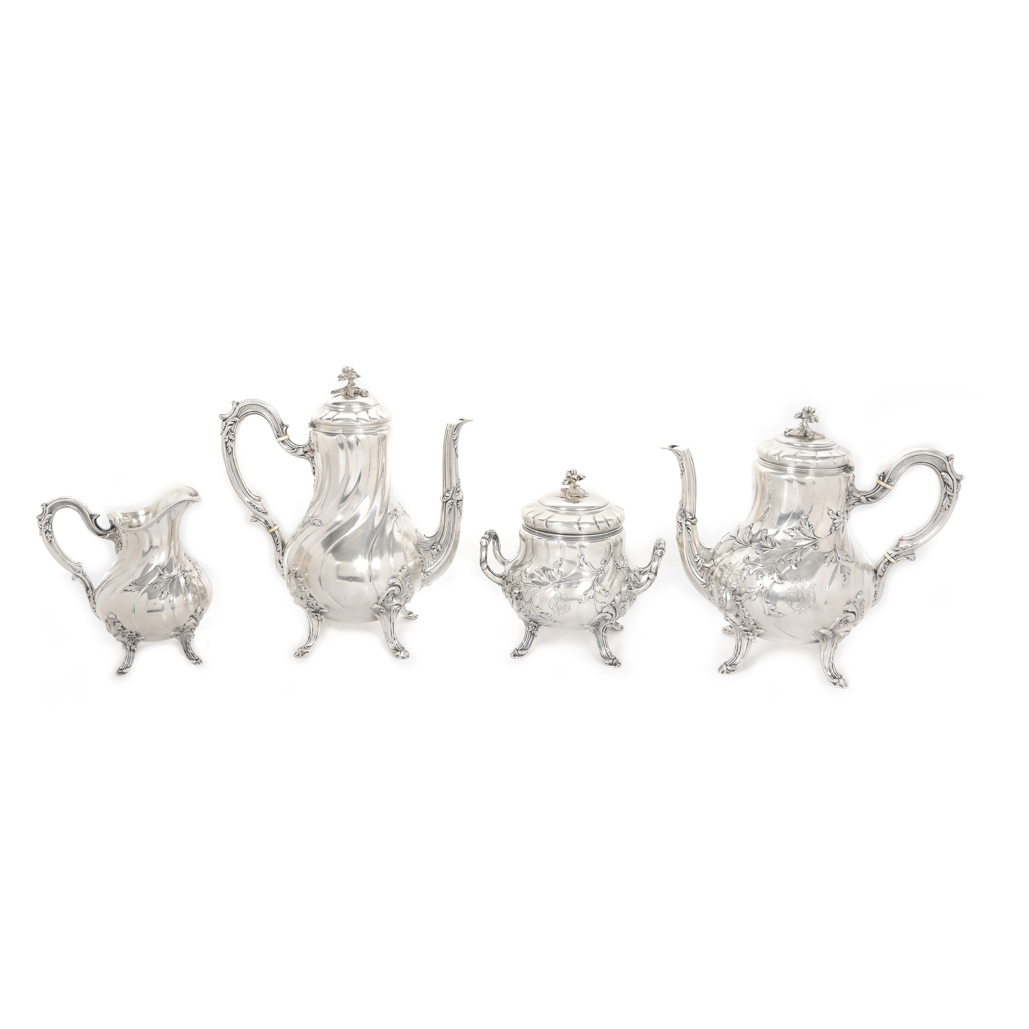 85. Serviciu Émile Puiforcat, monogramat, din argint, format din ceainic, cafetieră, letieră și zaharniță, cca. 1890
