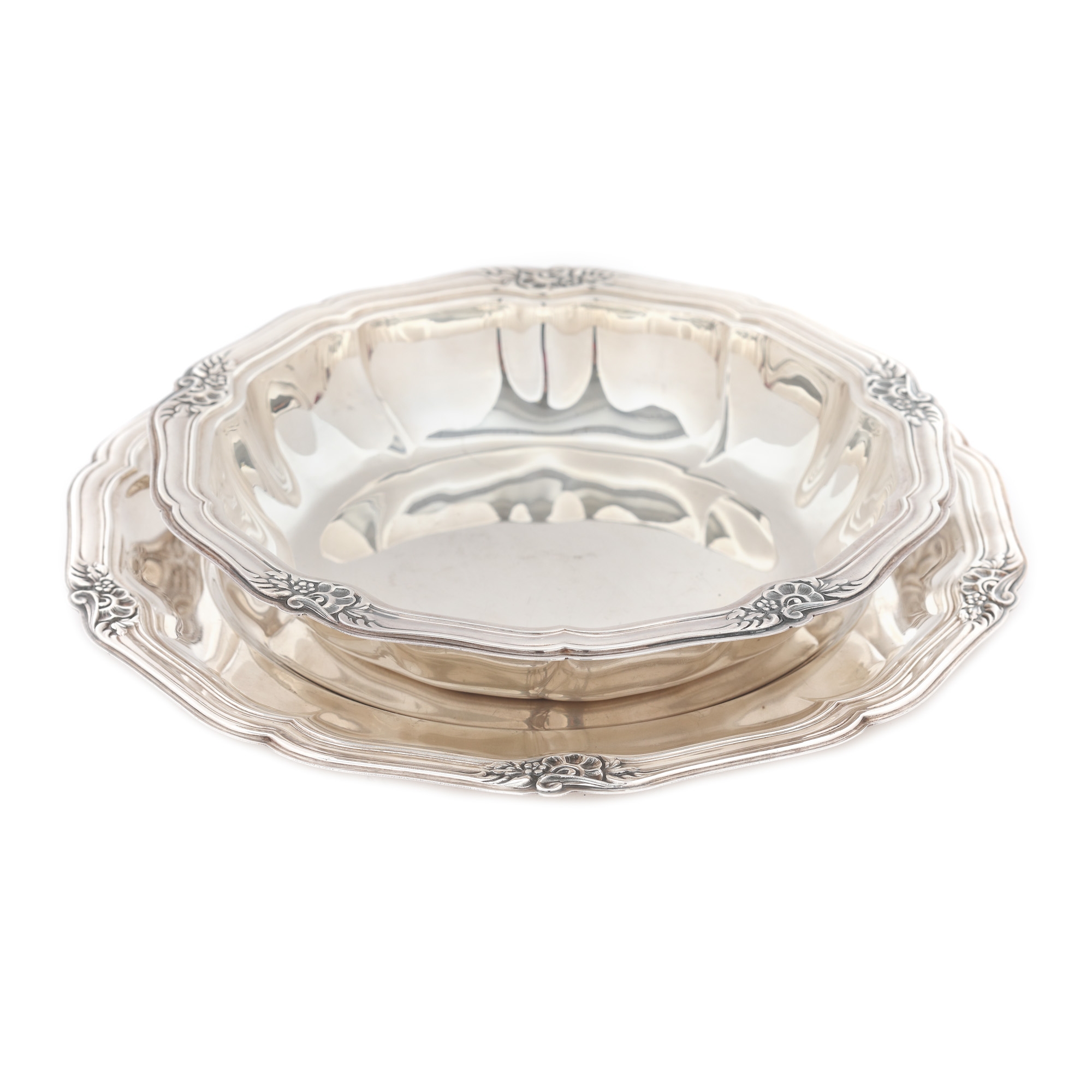 55. Set Carl Mads Cohr din argint, format din două platouri, cu decor floral, 1936