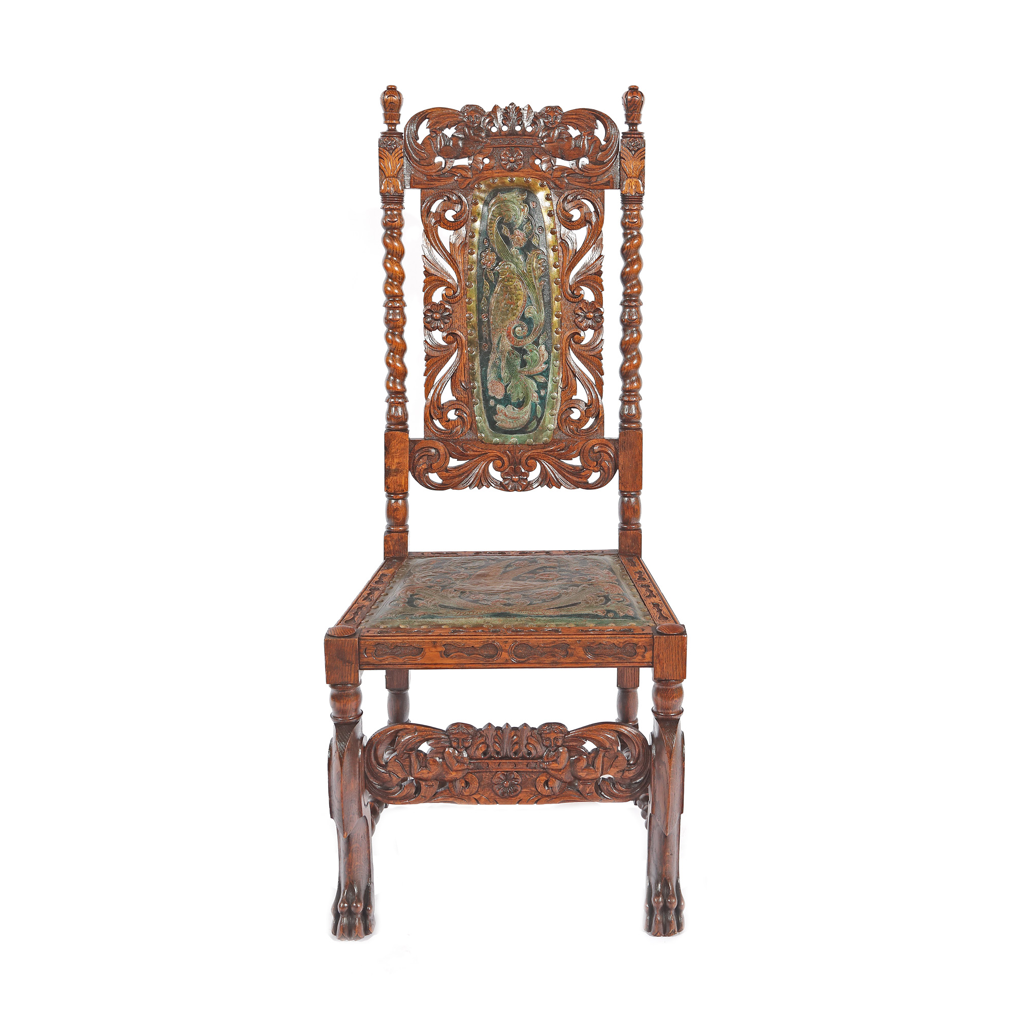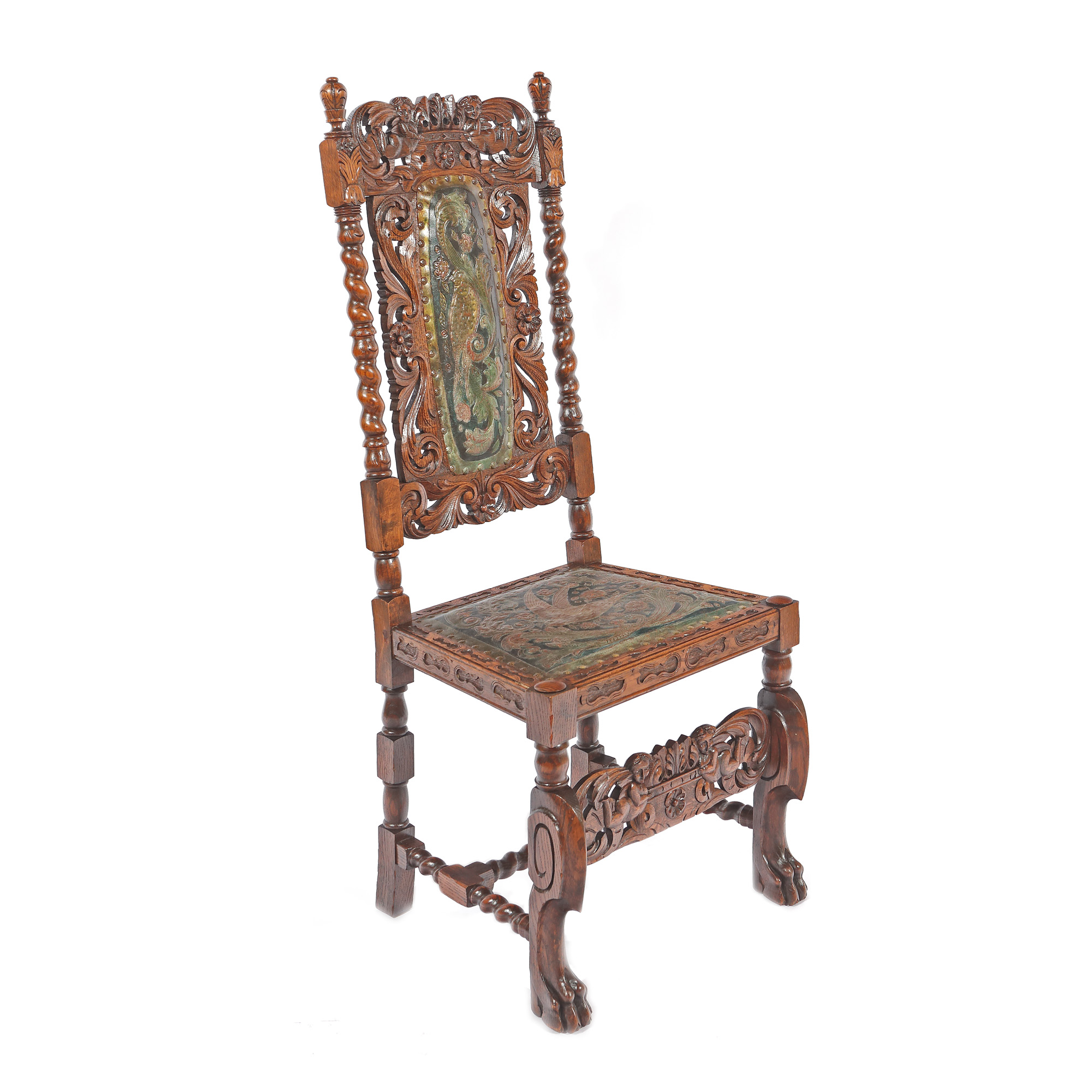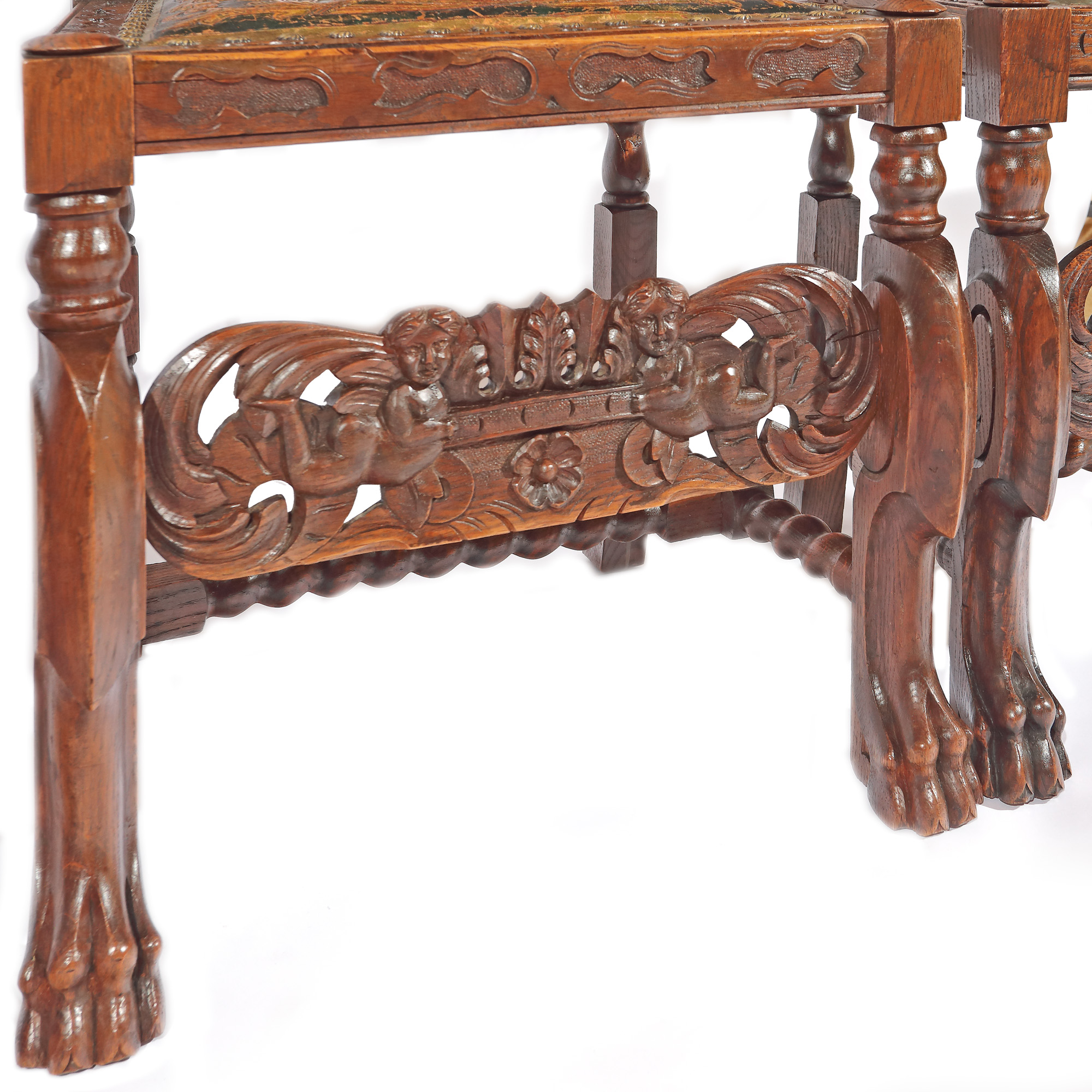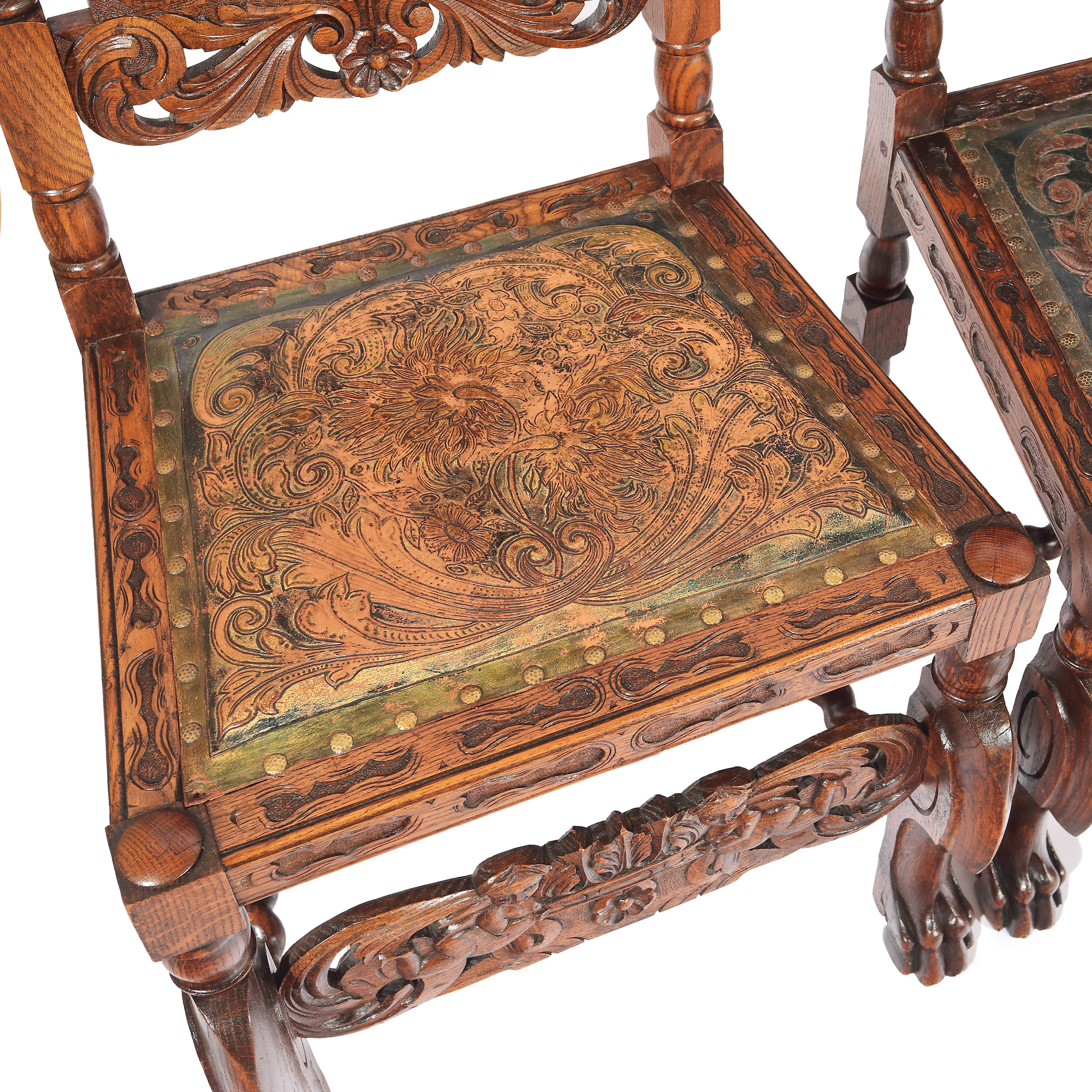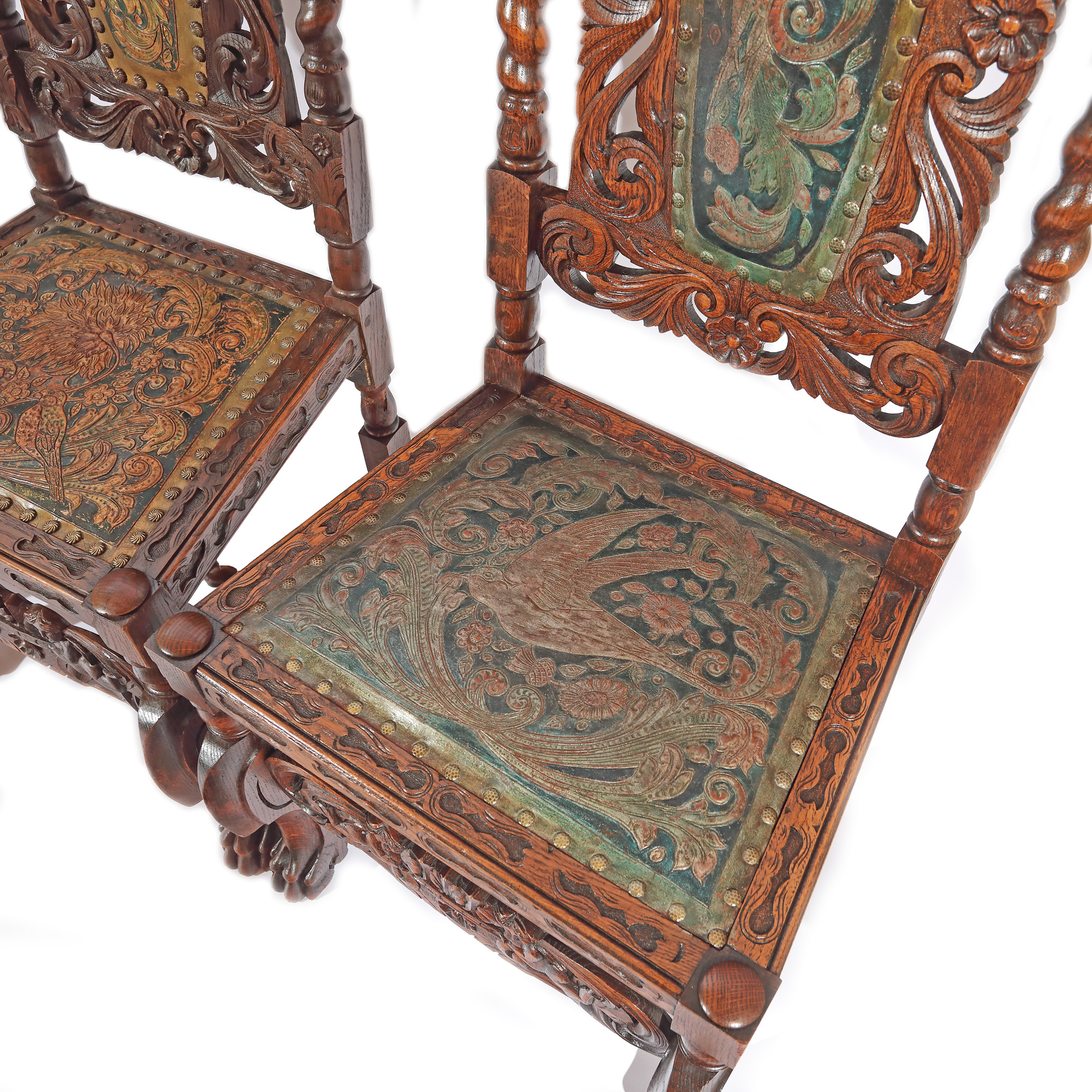 lemn de nuc; piele embosată, pictată